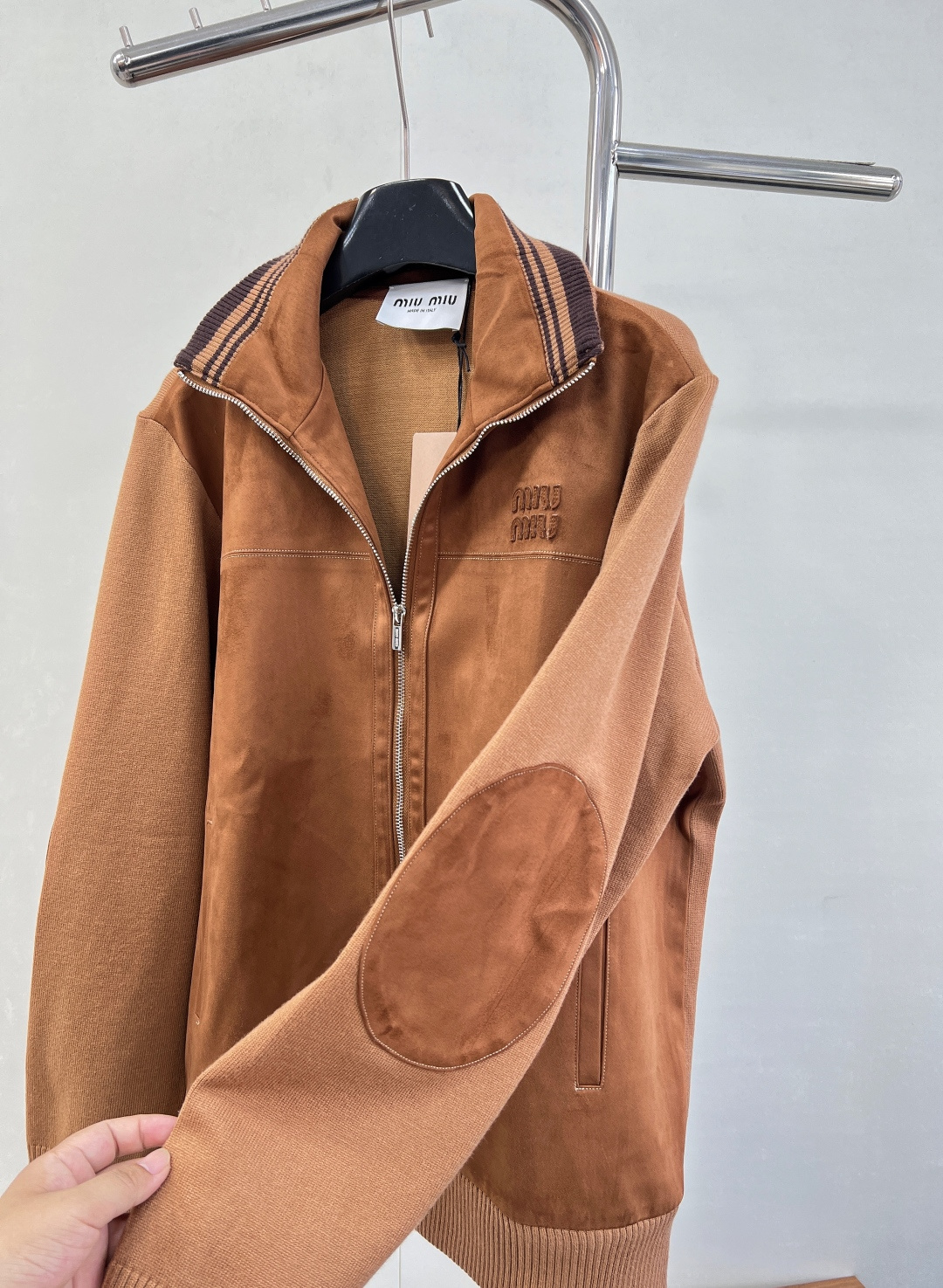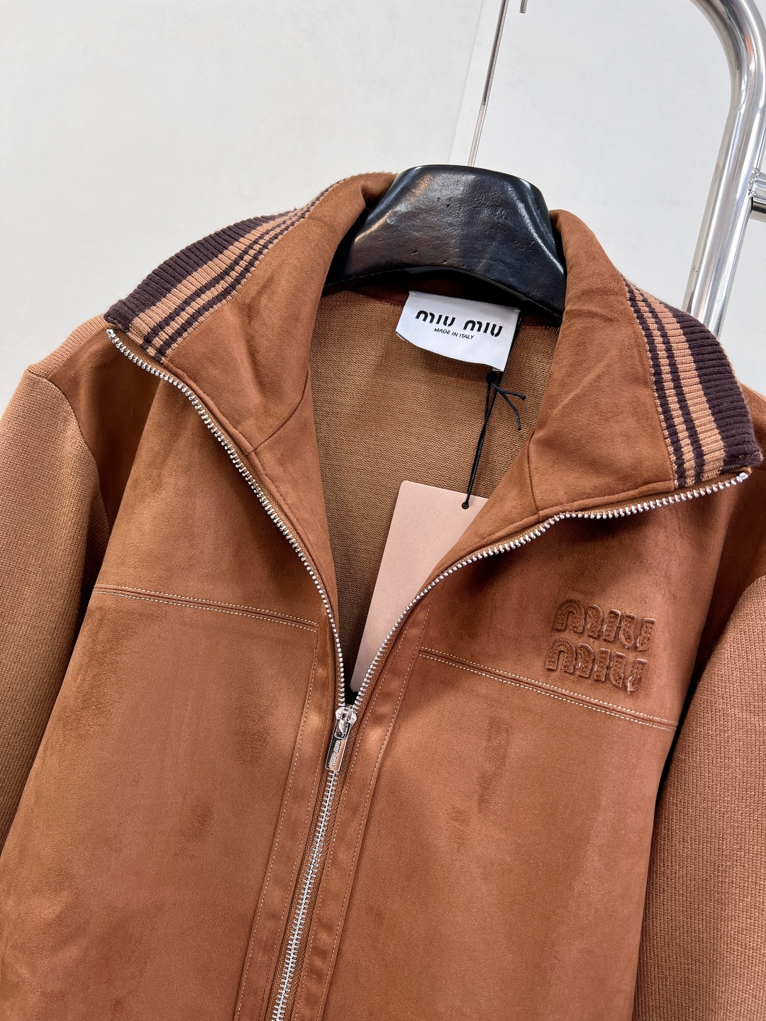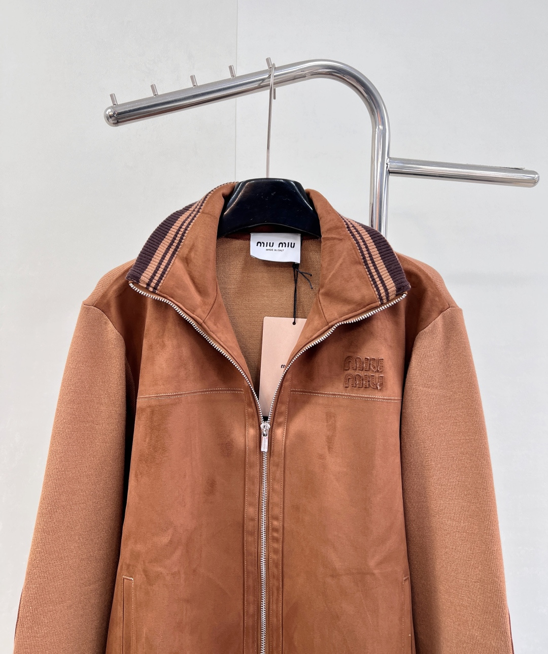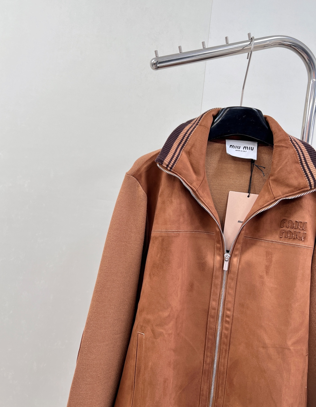 Details: Autumn suede zipper jacket with a logo, stand collar, and multiple designs, unisex