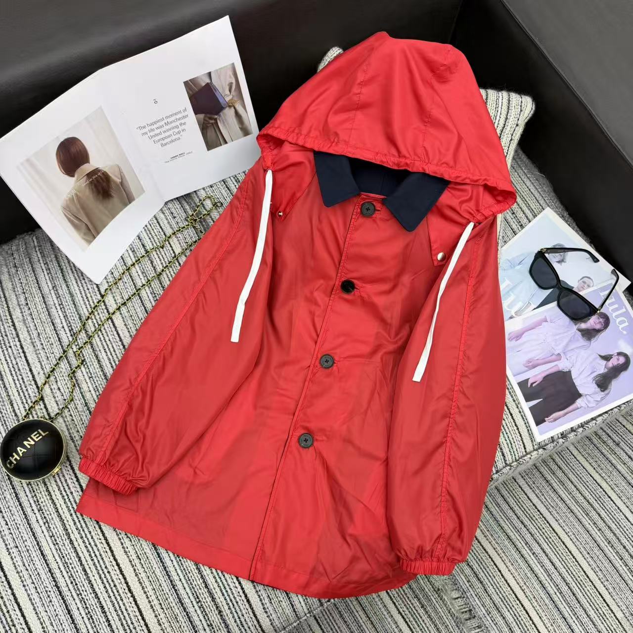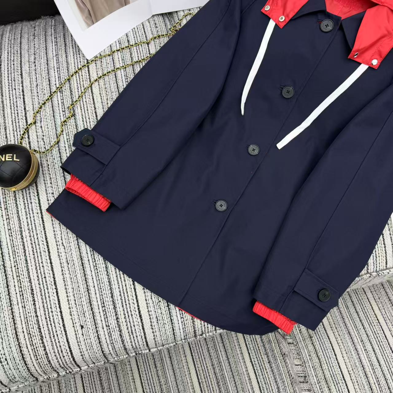 Details: Double-sided reversible hooded windbreaker, two styles, unisex. High-end custom, fine workmanship