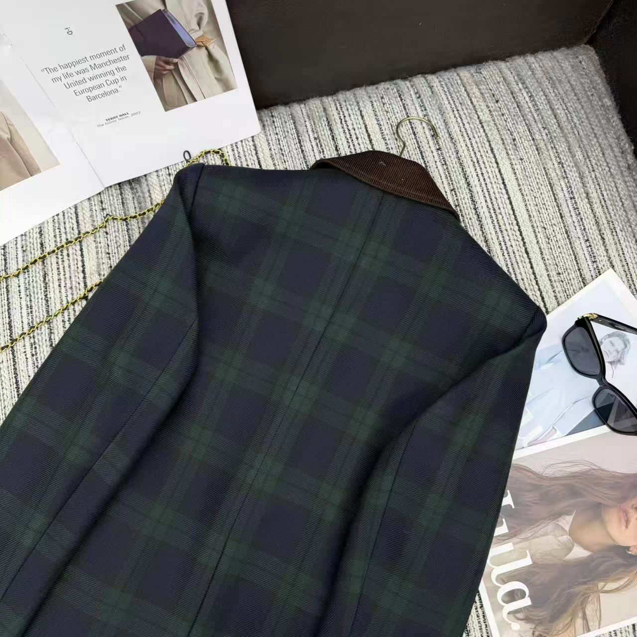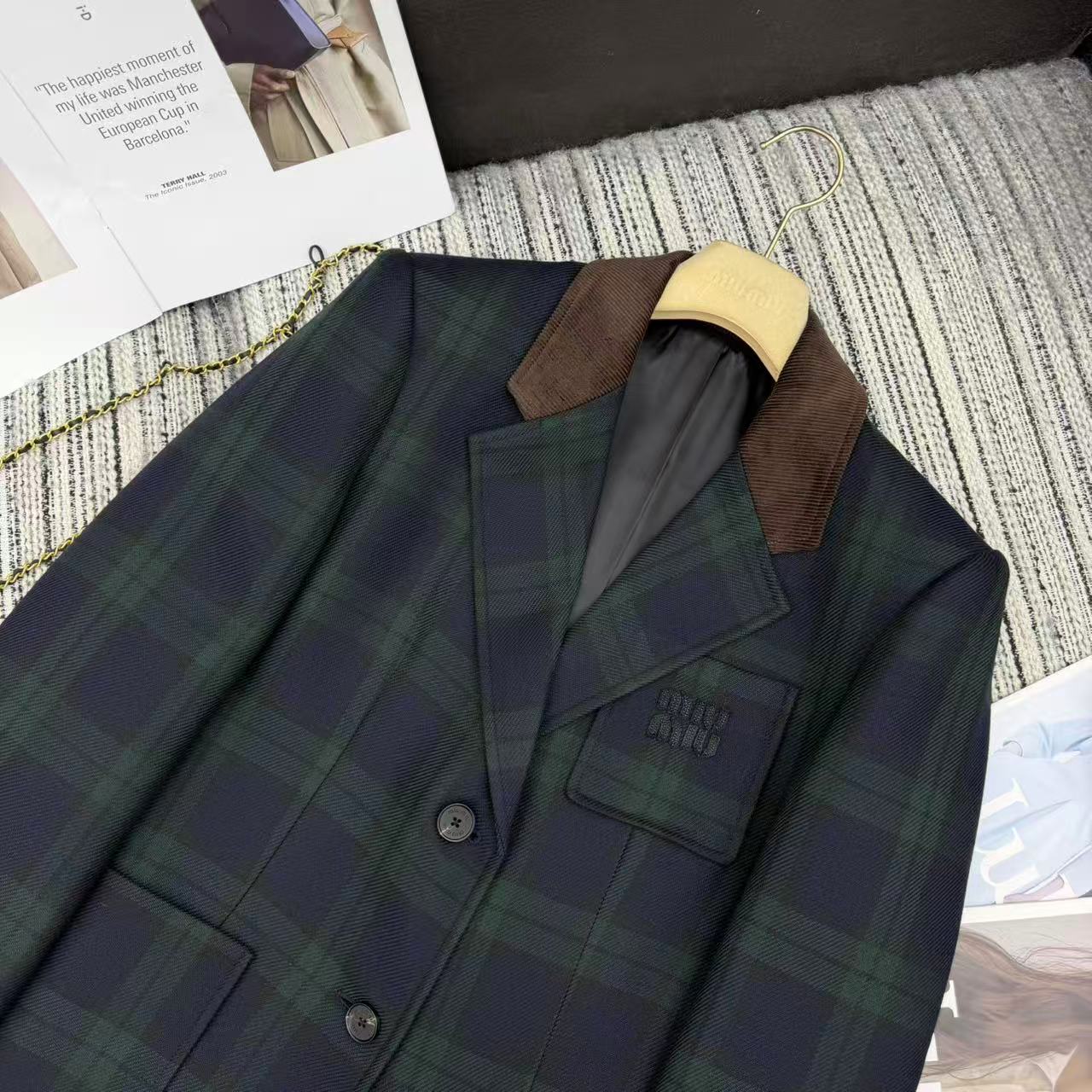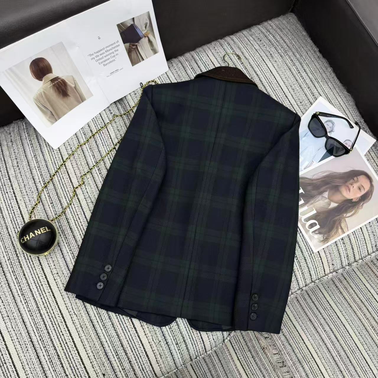 Details: New contrast corduroy plaid blazer with letter patchwork for early fall/winter, available in S/M/L sizes, high-end customization, fine workmanship