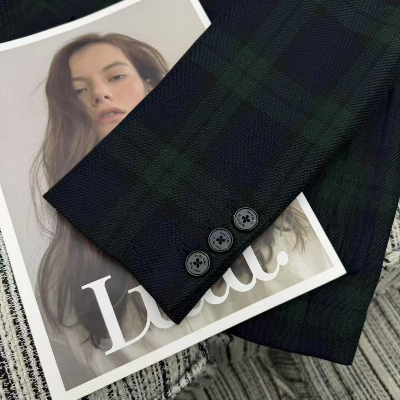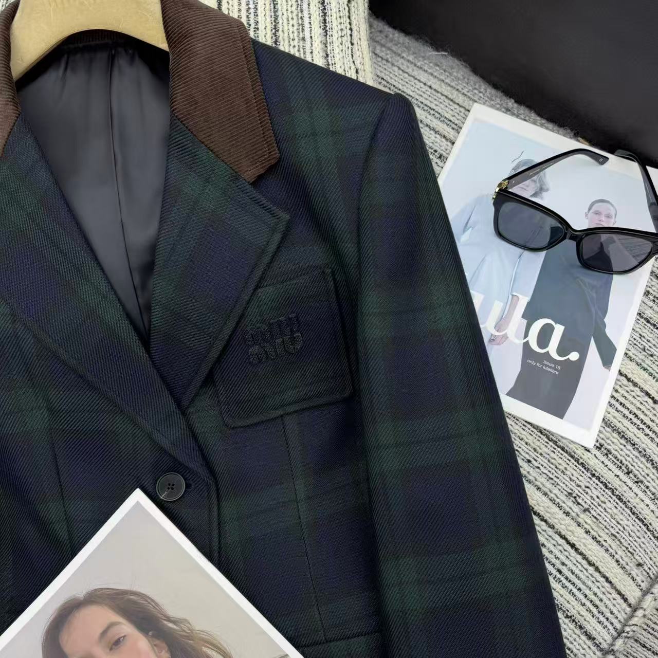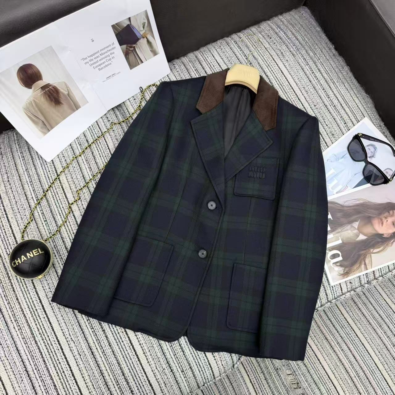 Details: New contrast corduroy plaid blazer with letter patchwork for early fall/winter, available in S/M/L sizes, high-end customization, fine workmanship