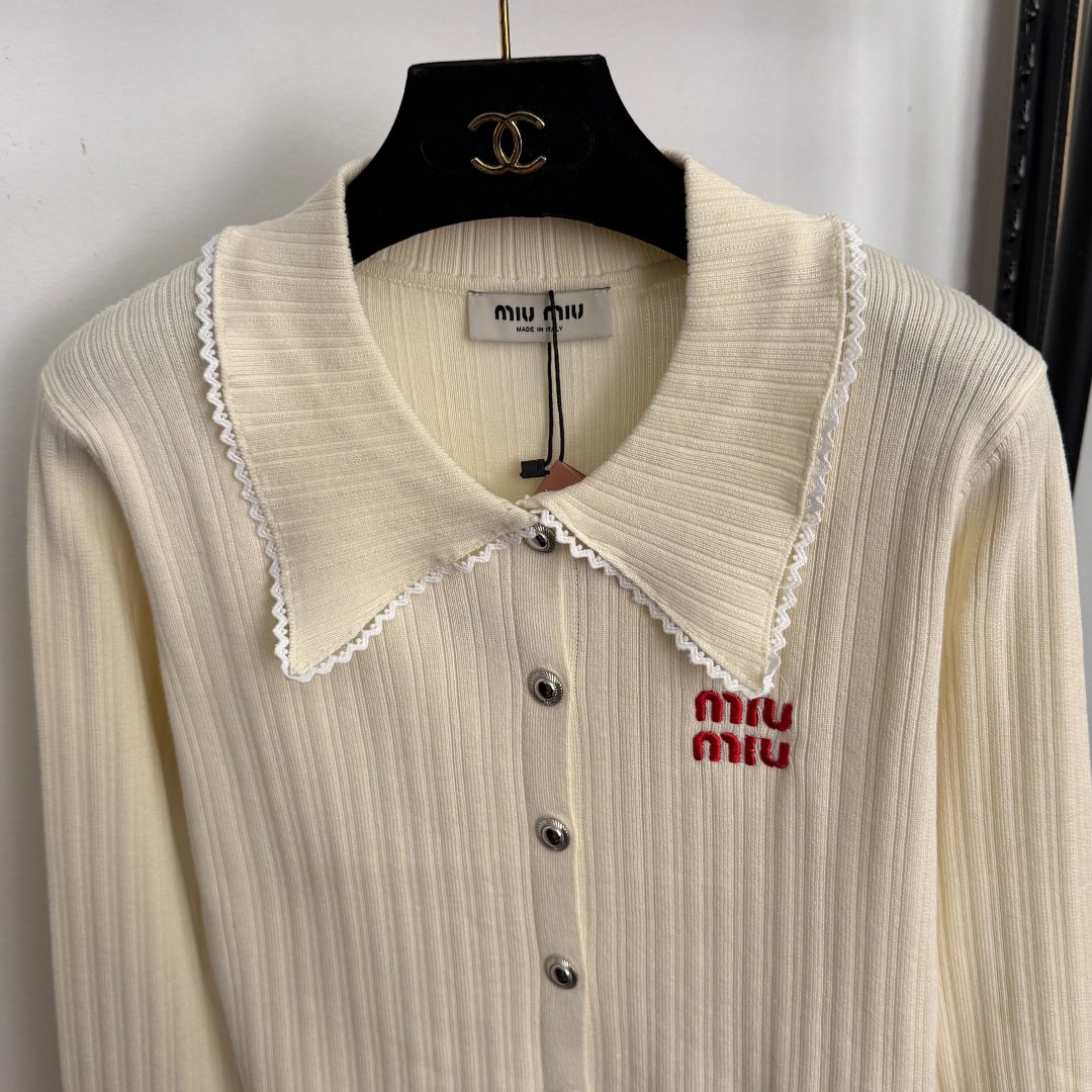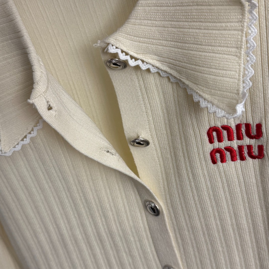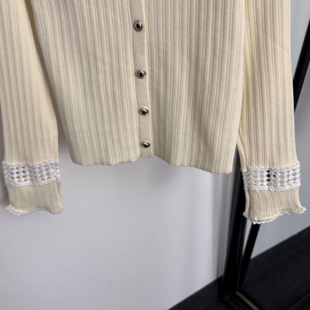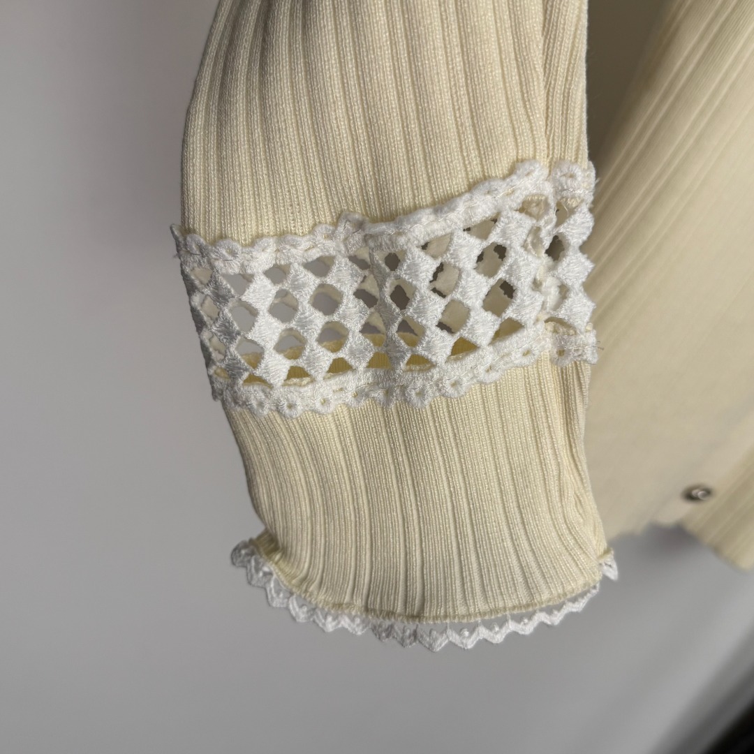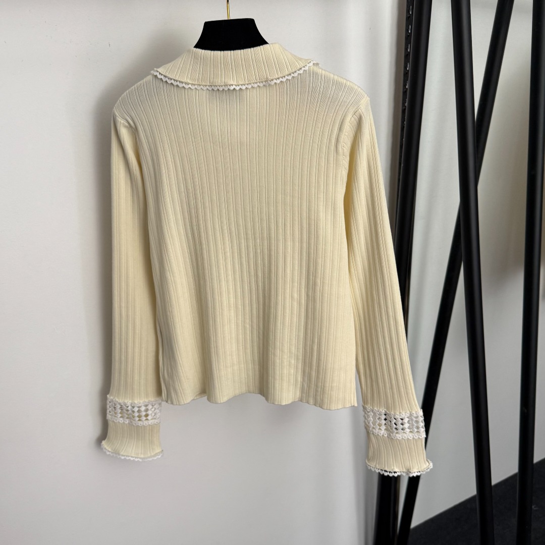 Details: New lace - trimmed open - front knitted top with logo embroidery, in apricot and black, Advanced customization, Fine workmanship