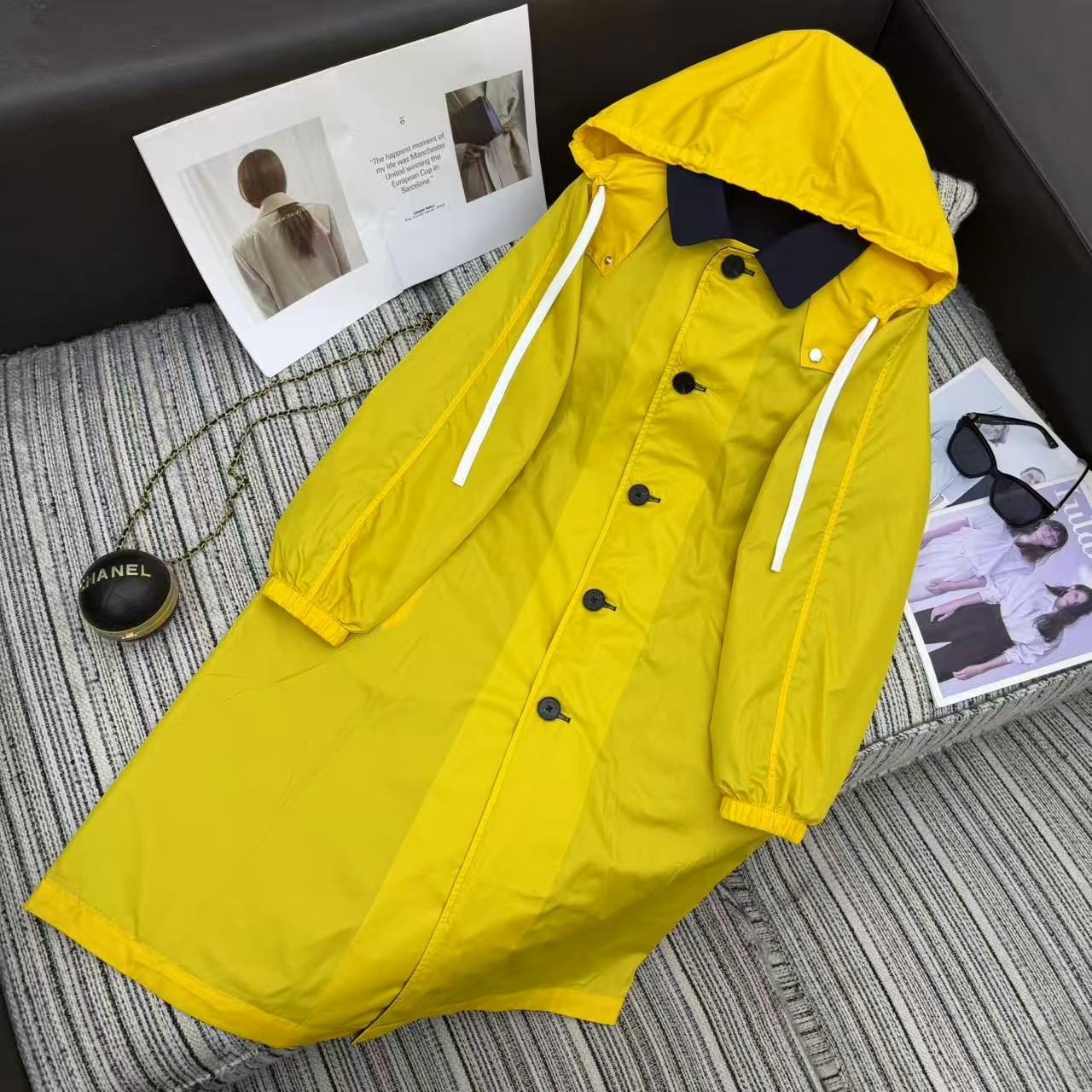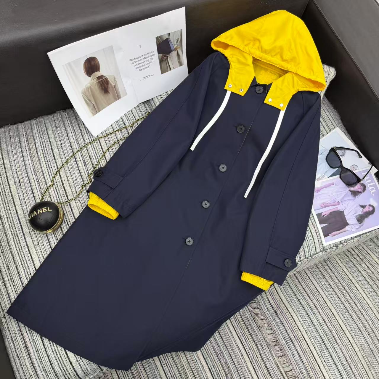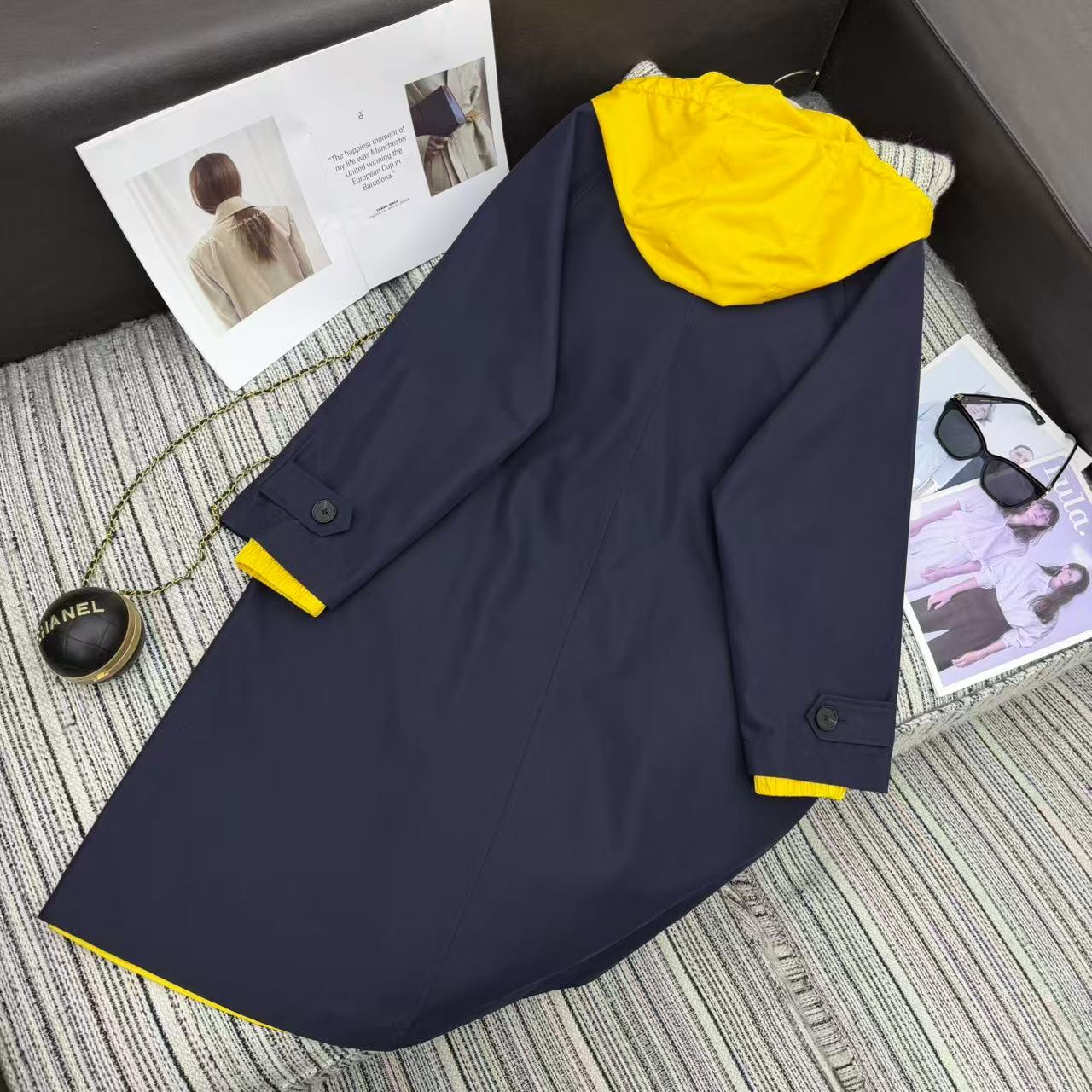 Details: Double-sided long windbreaker, unisex, with color collision, loose fit. High-end custom, fine workmanship