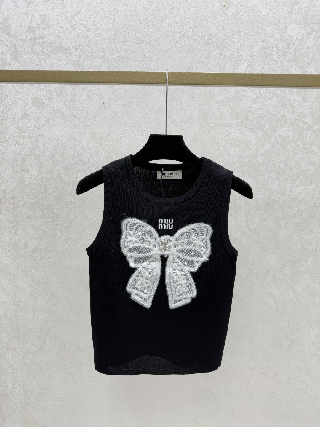Details: Early spring new knitted vest with bowknot and nail beads, available in white and black, sizes ranging from 36 to 40.