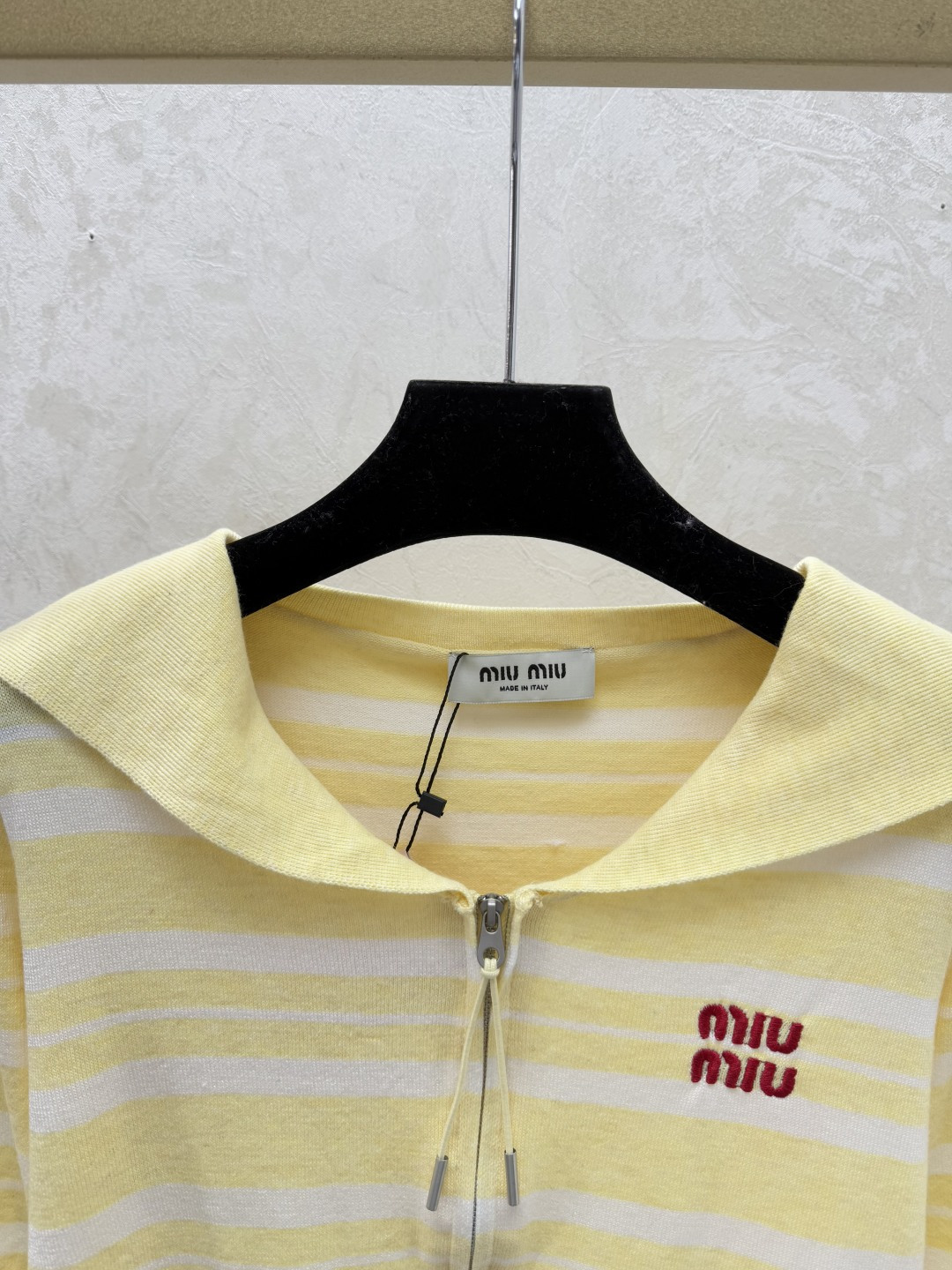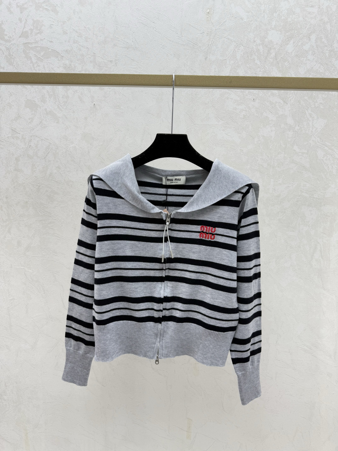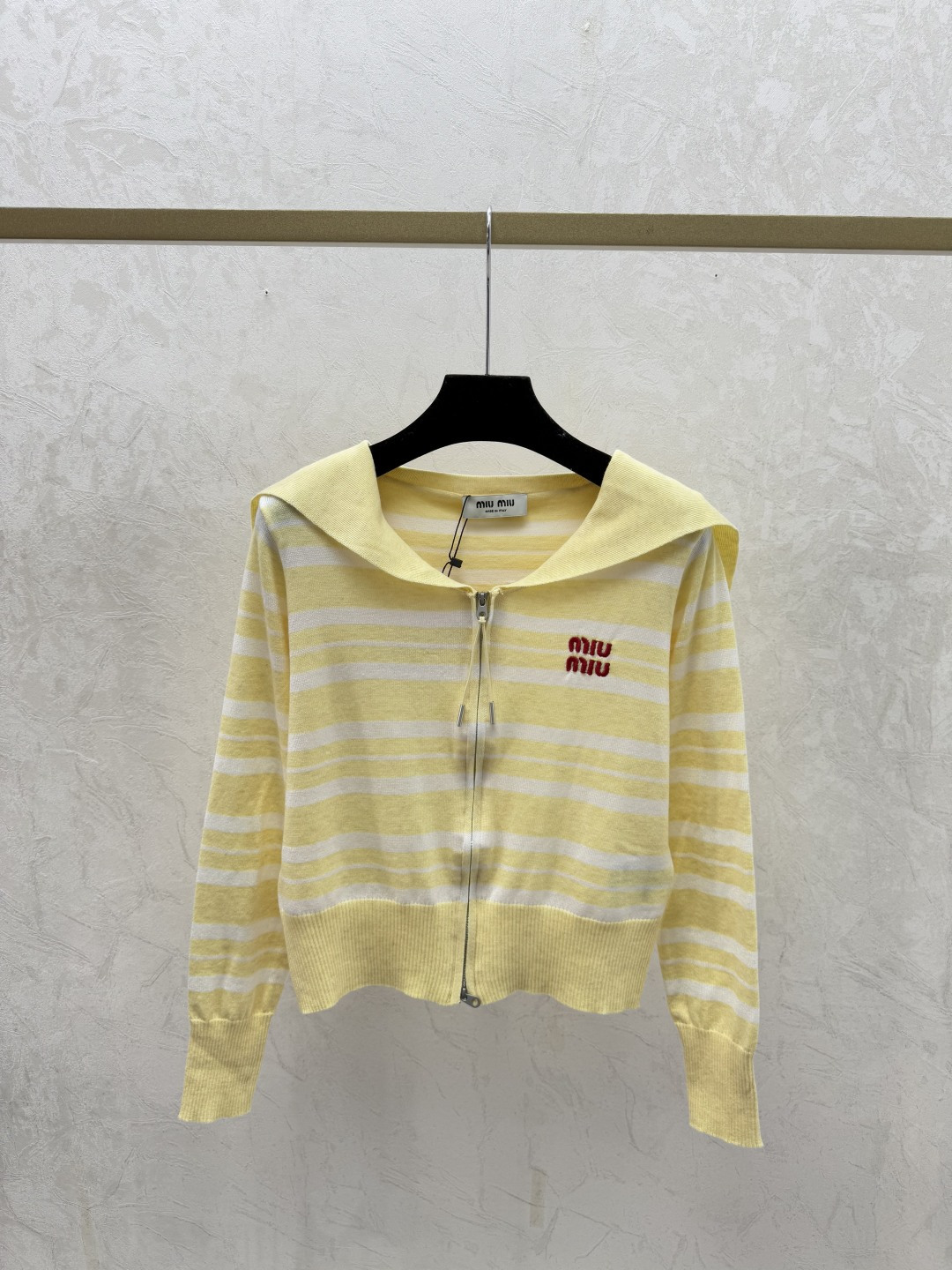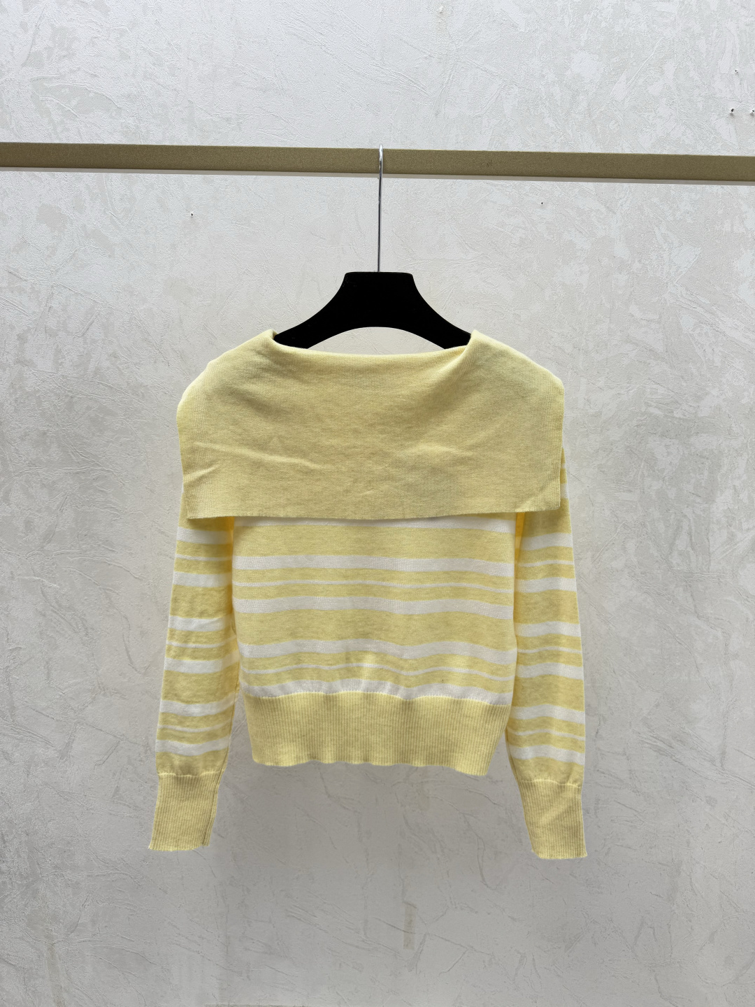 Details: Early autumn striped naval collar knitted long-sleeved cardigan with color-blocking, available in yellow, blue, and grey.