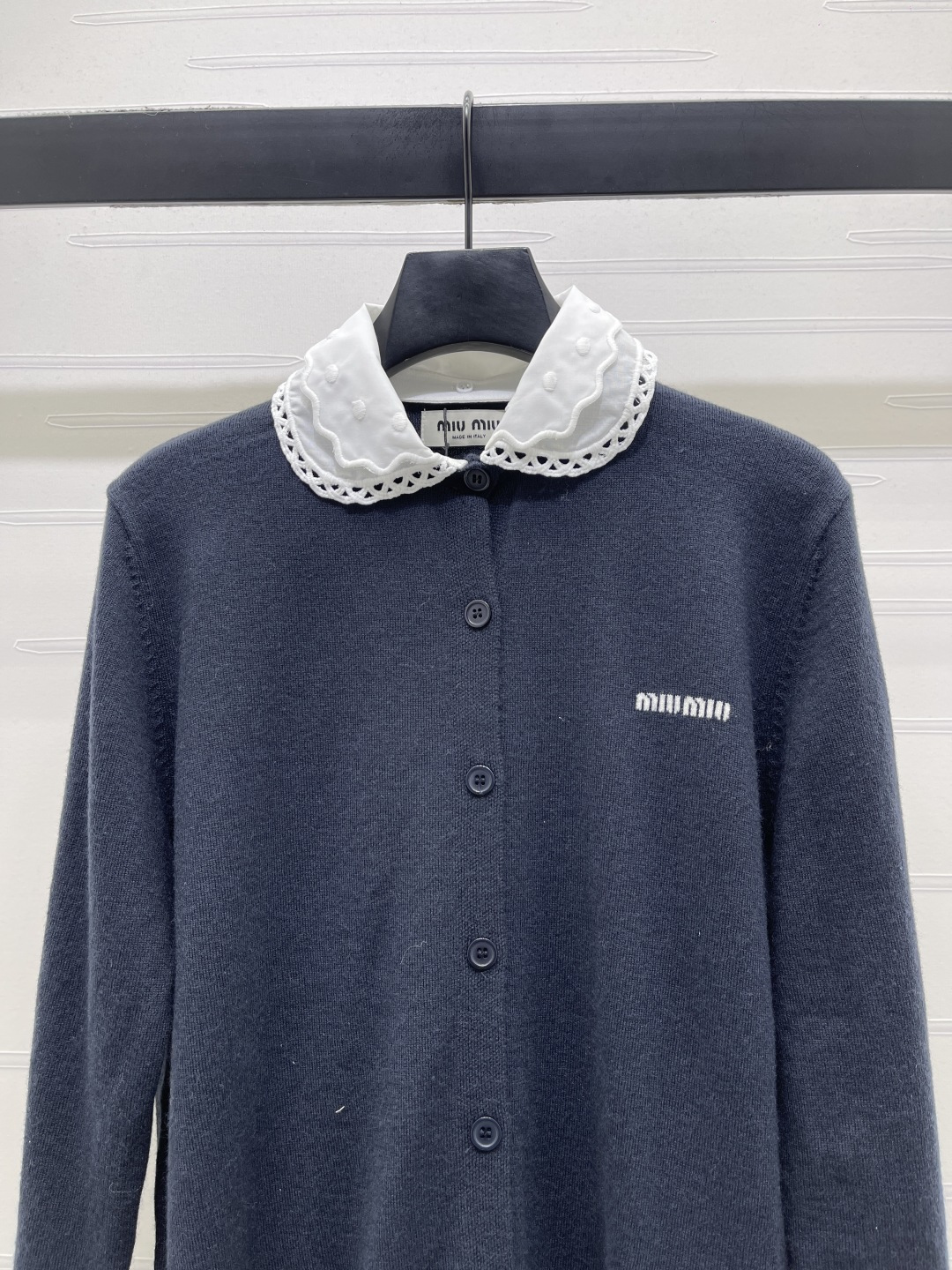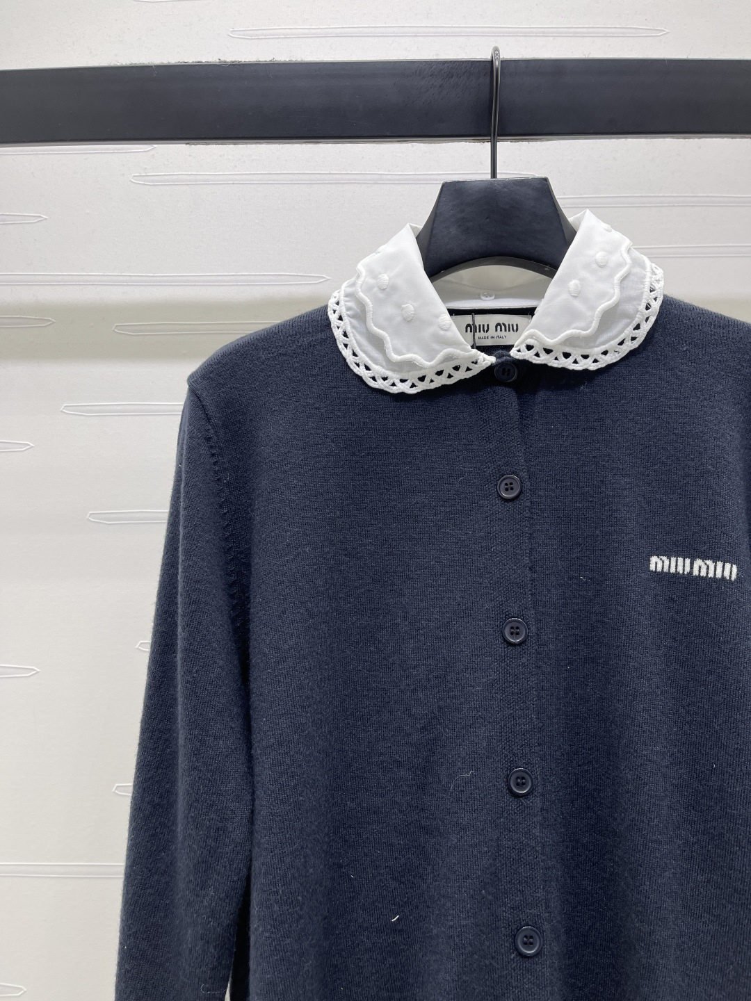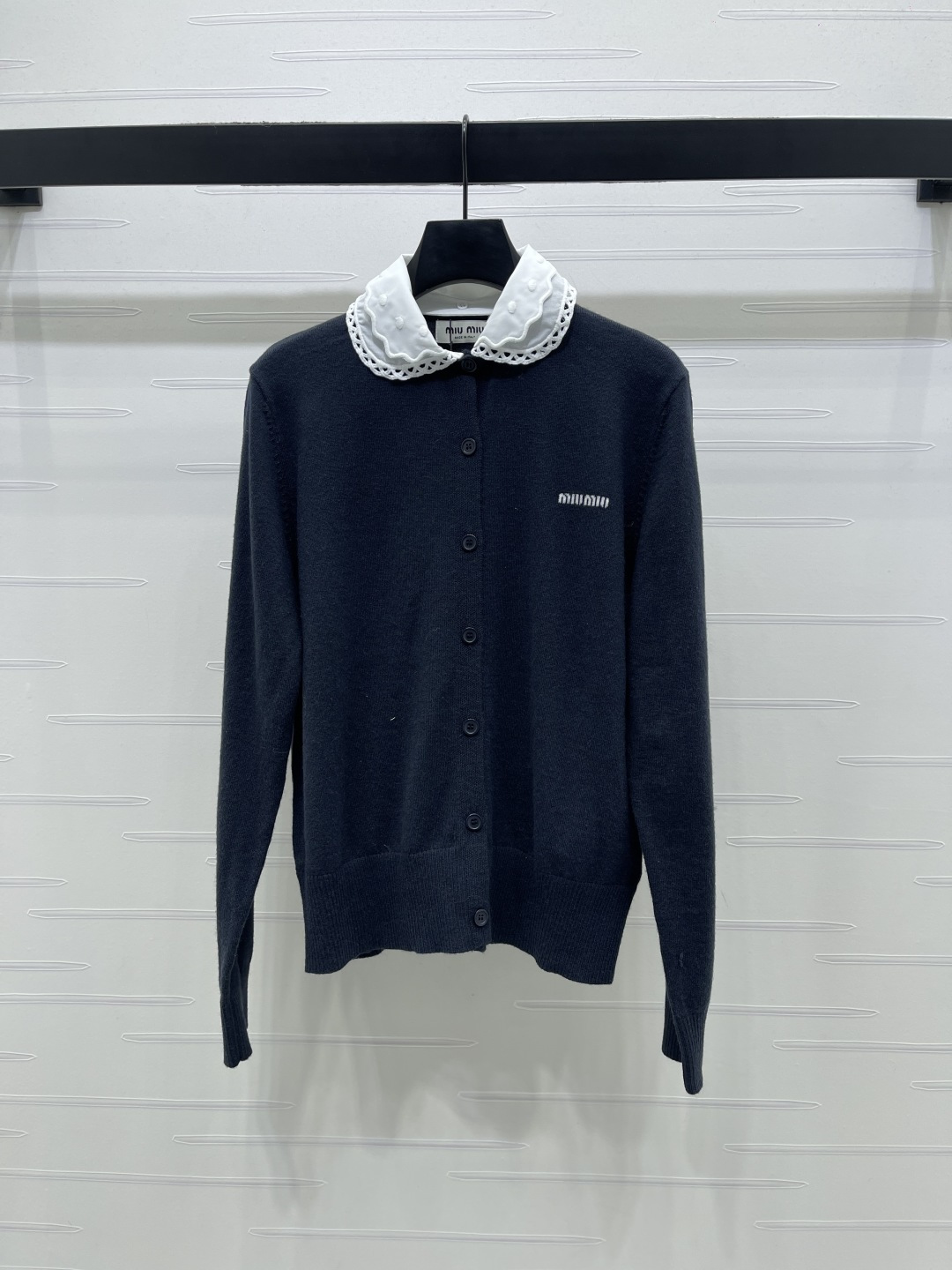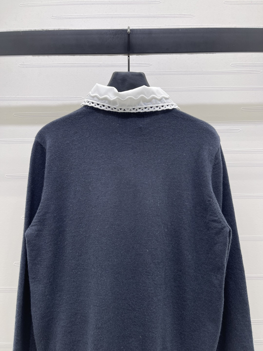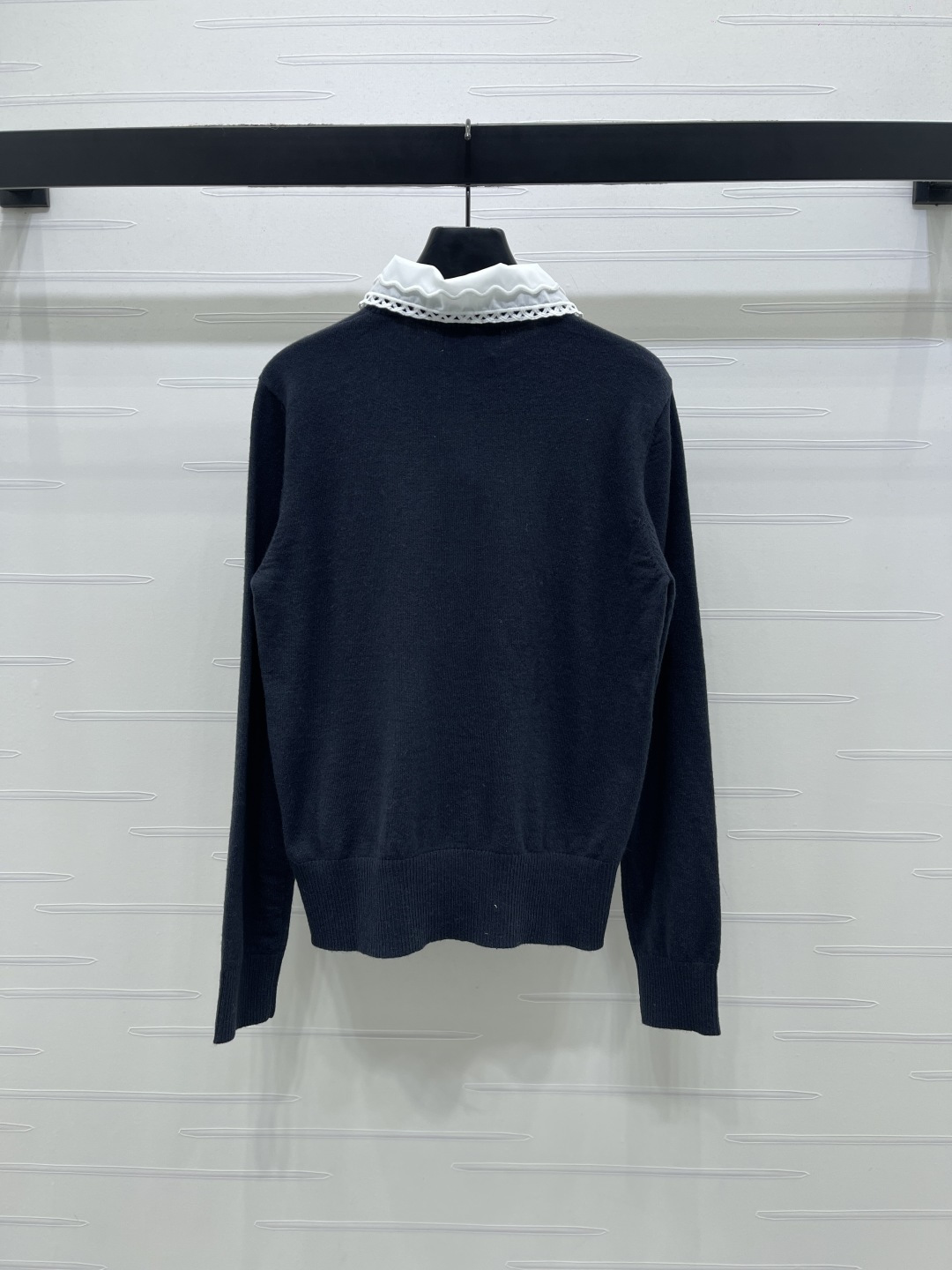 Details: Spring knitted cardigan with detachable doll collar, logo, and one color. High-end custom, fine workmanship