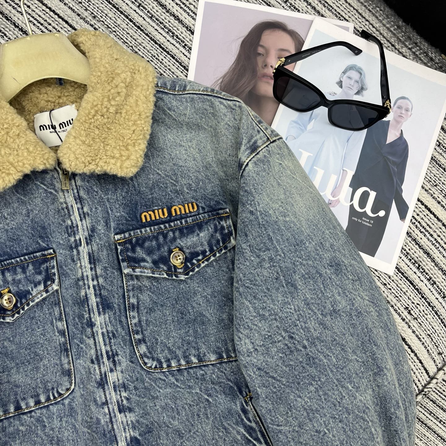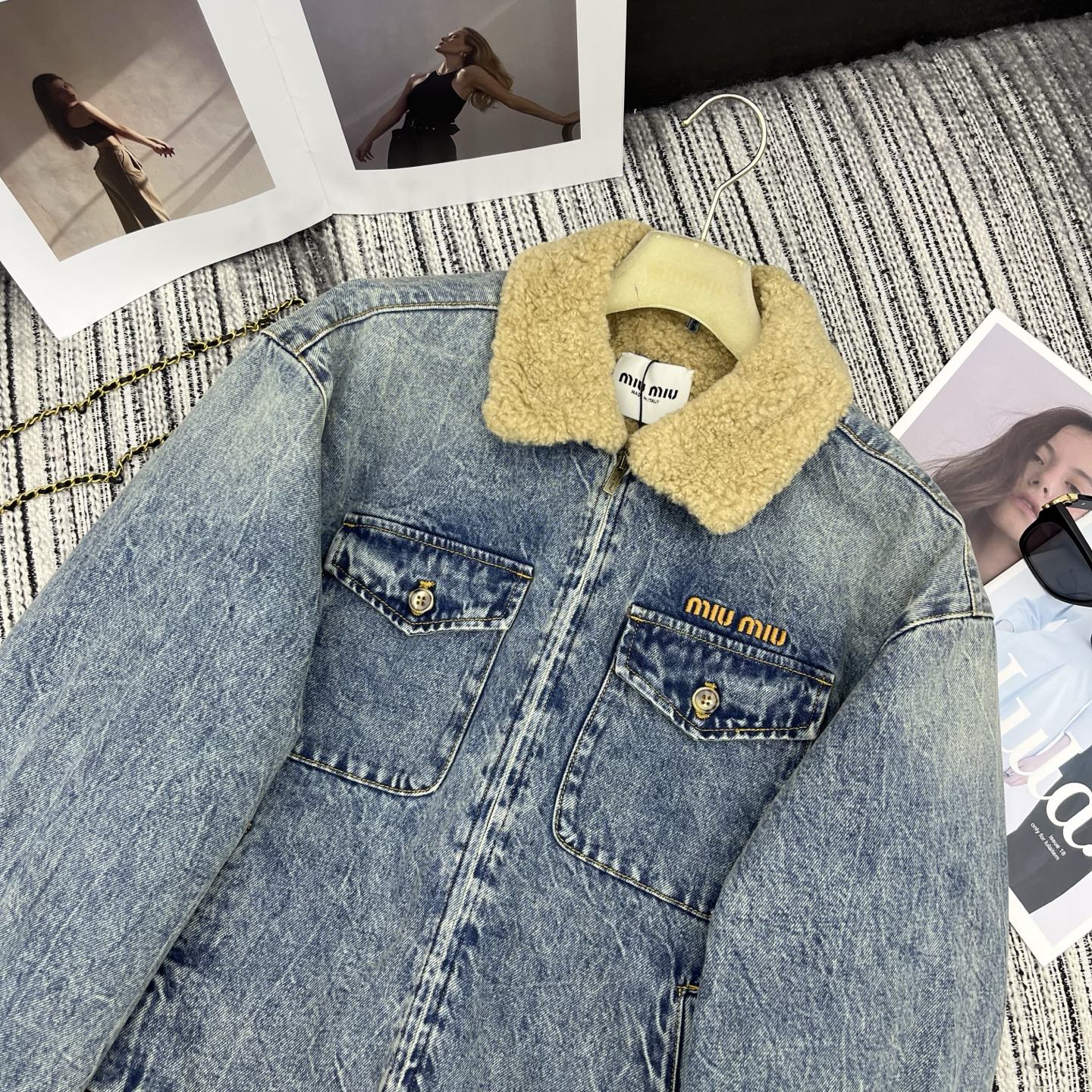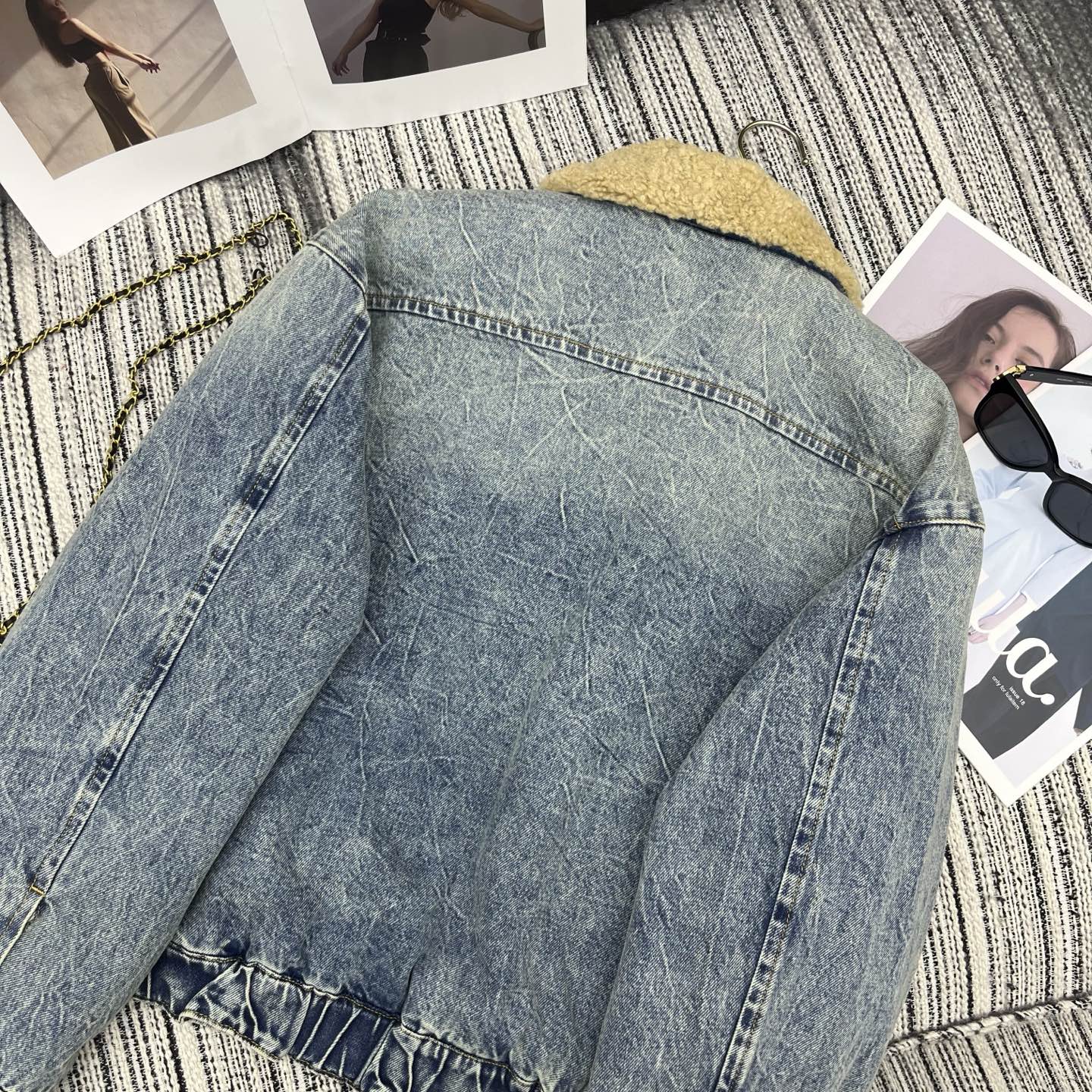 Details: Early spring lamb wool thickened denim jacket, combining vintage charm with warmth, versatile for various outfits, available in SML sizes.
