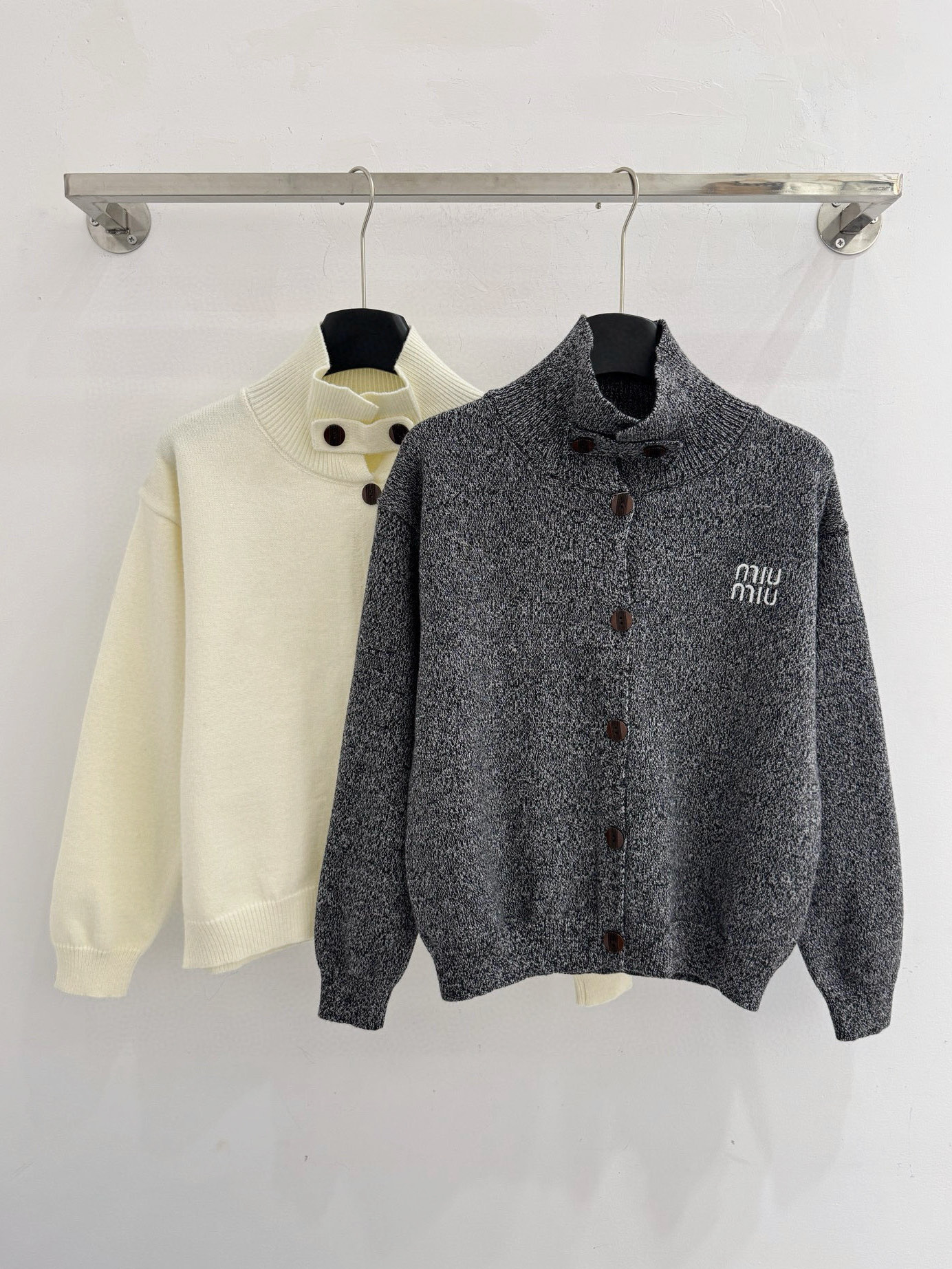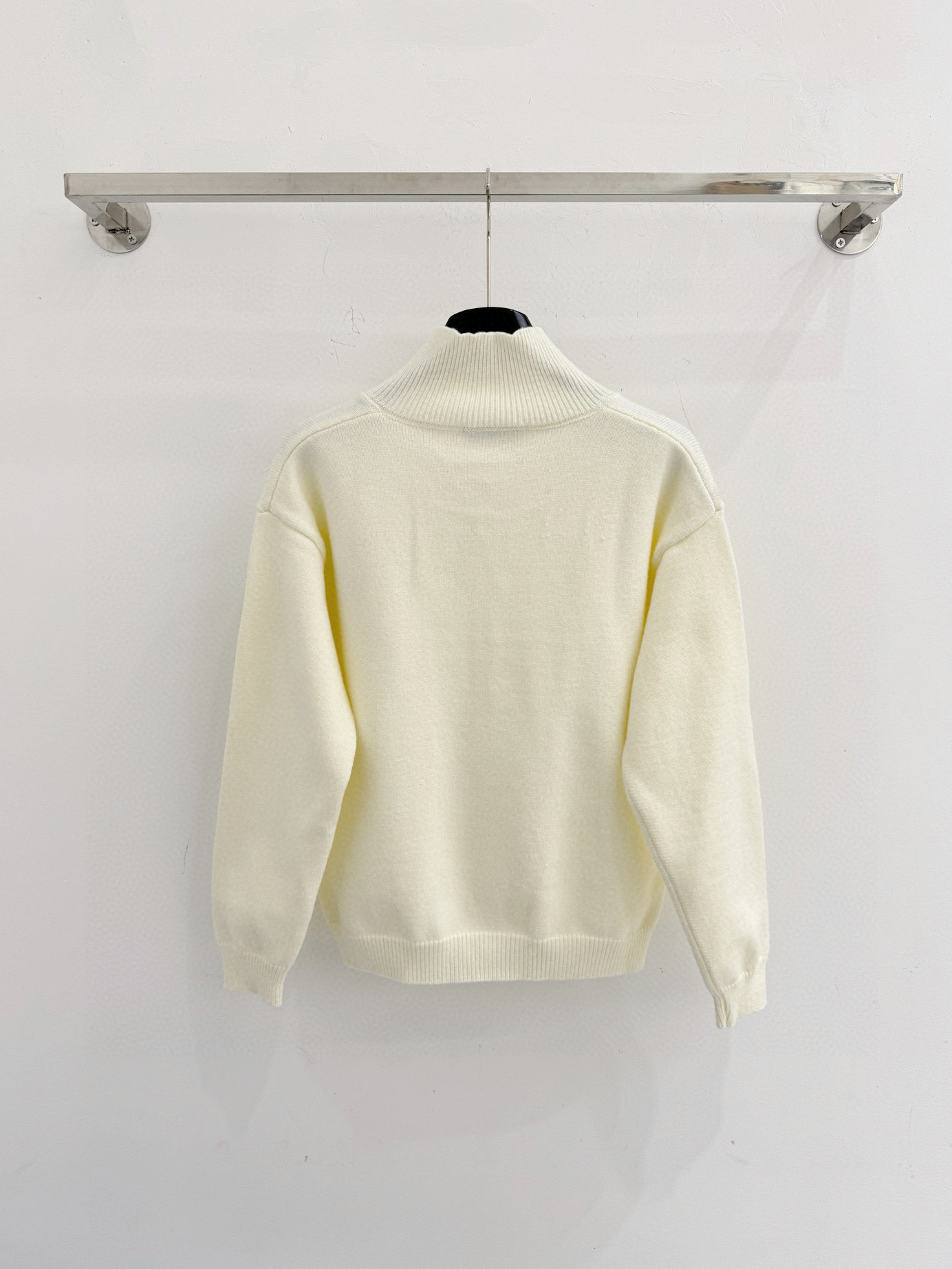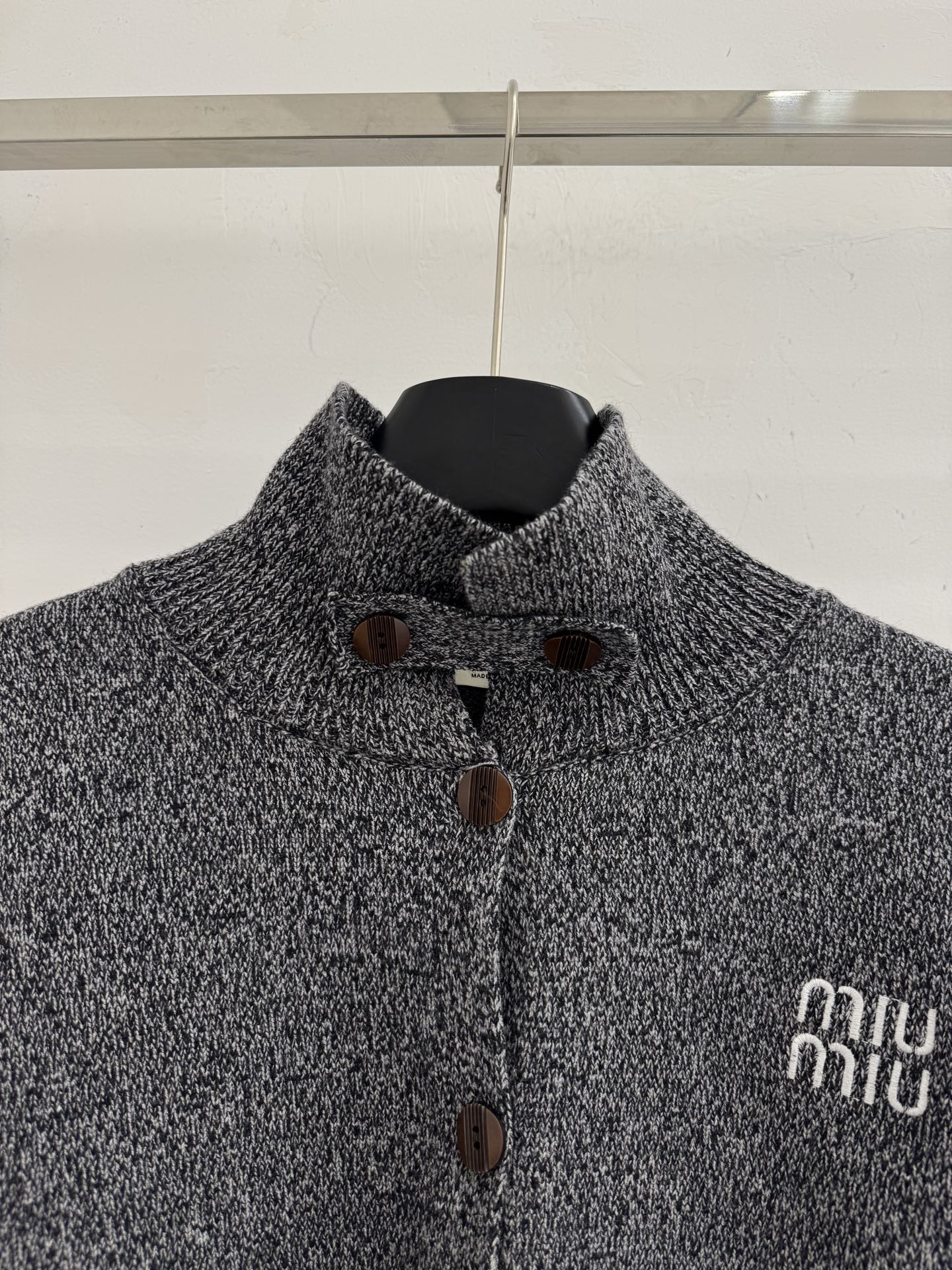 Details: Autumn-winter semi-high neck with double-button closure, embroidered lettering, wooden buttons, understated elegance.