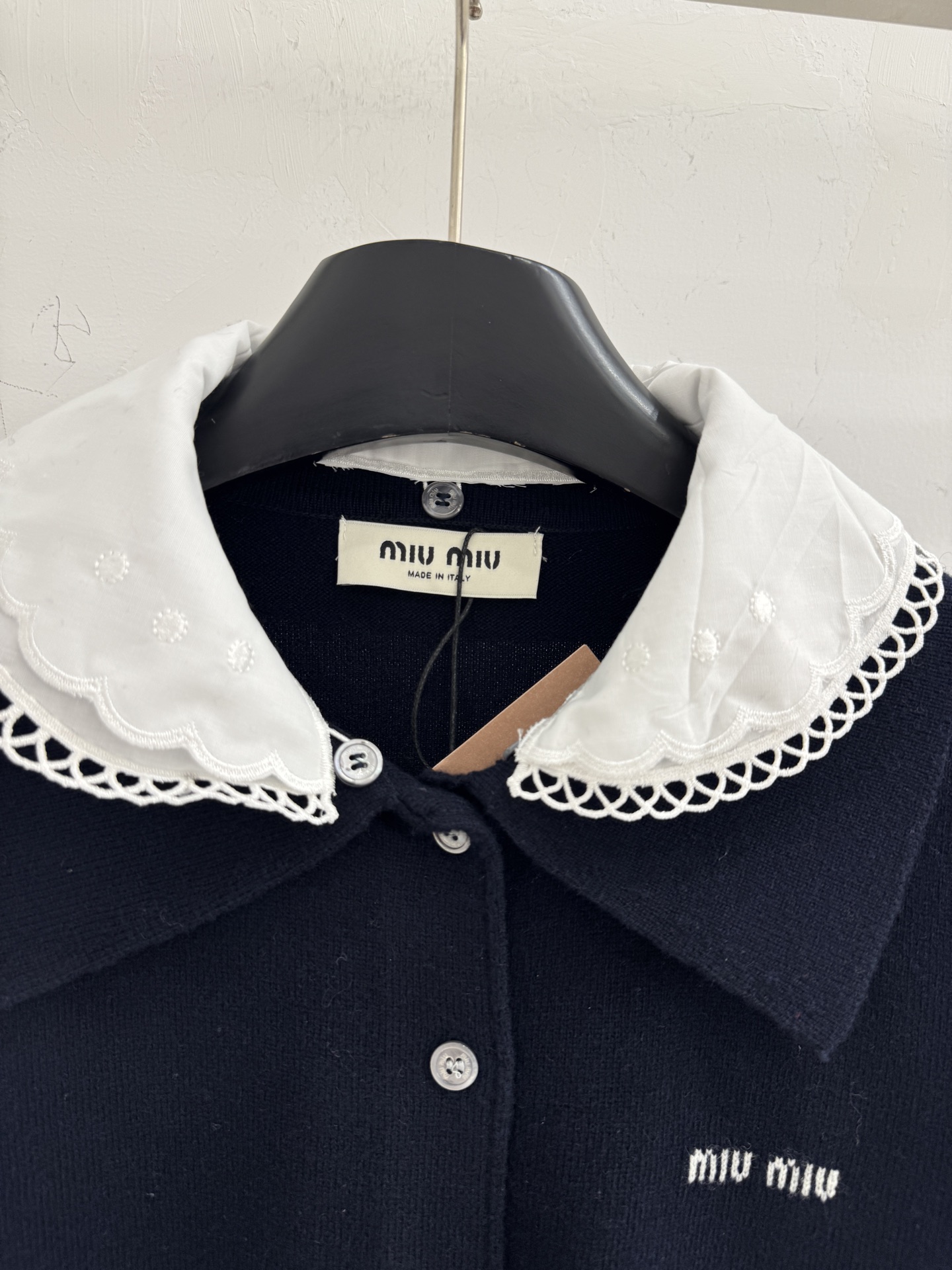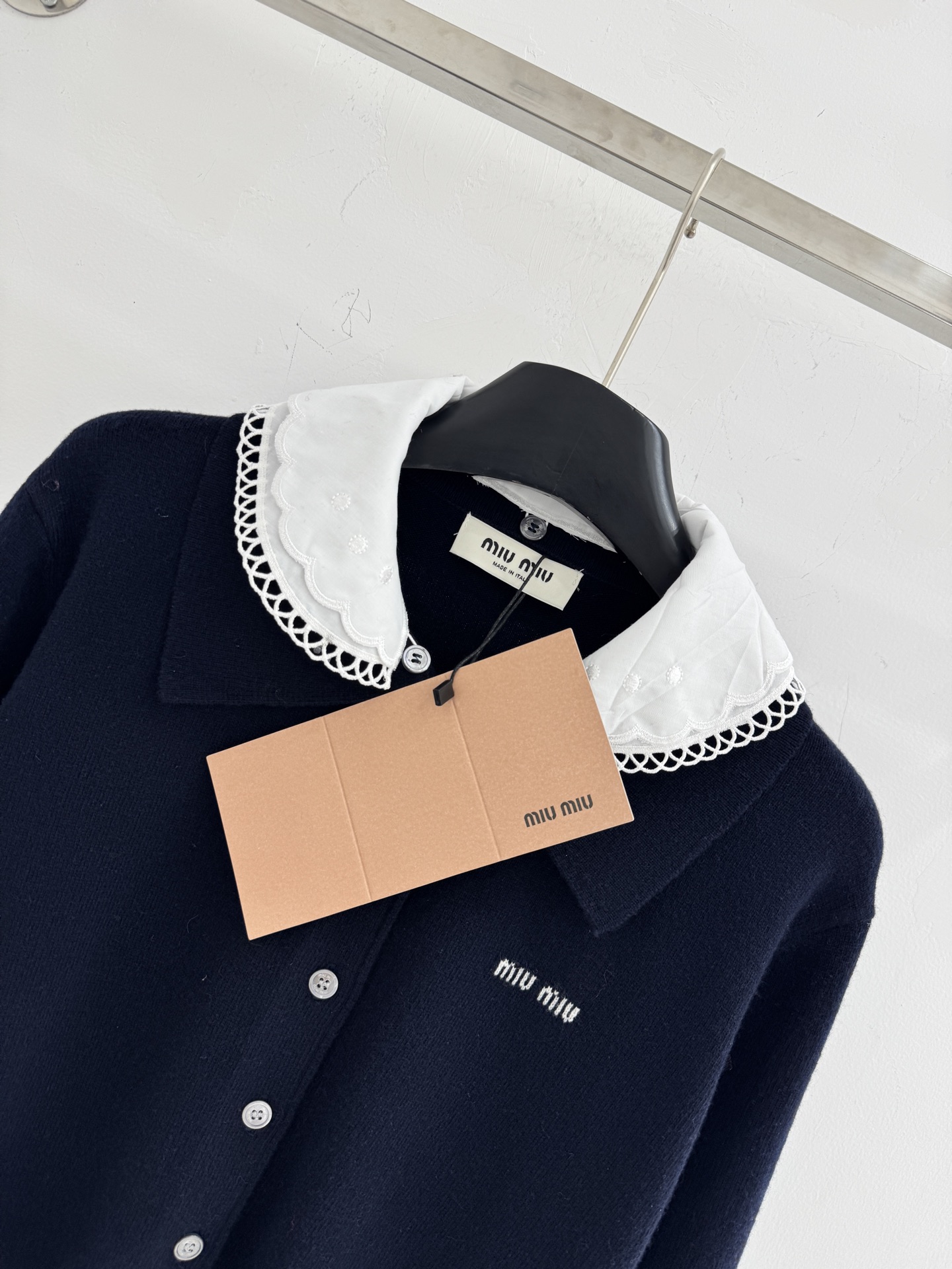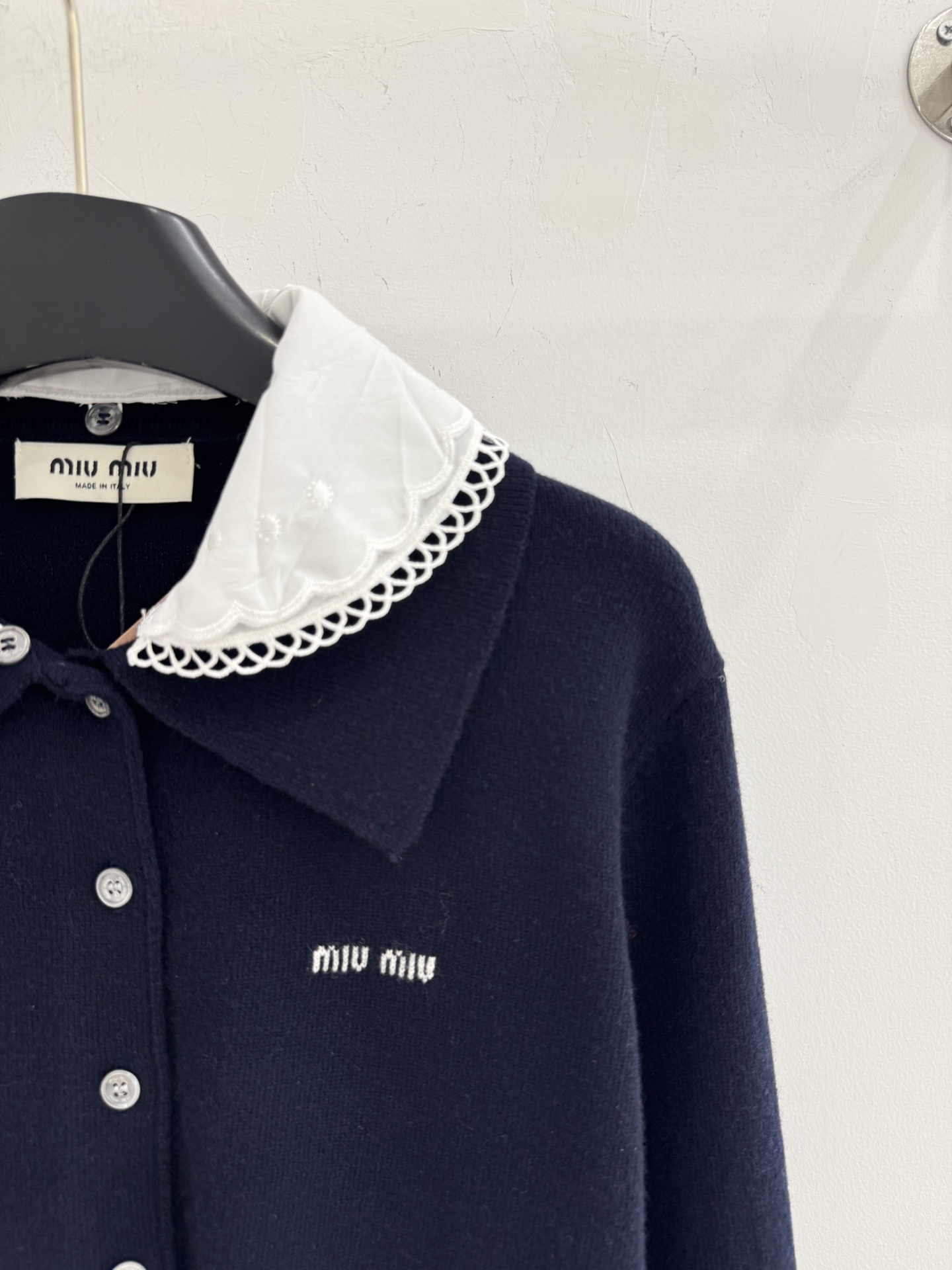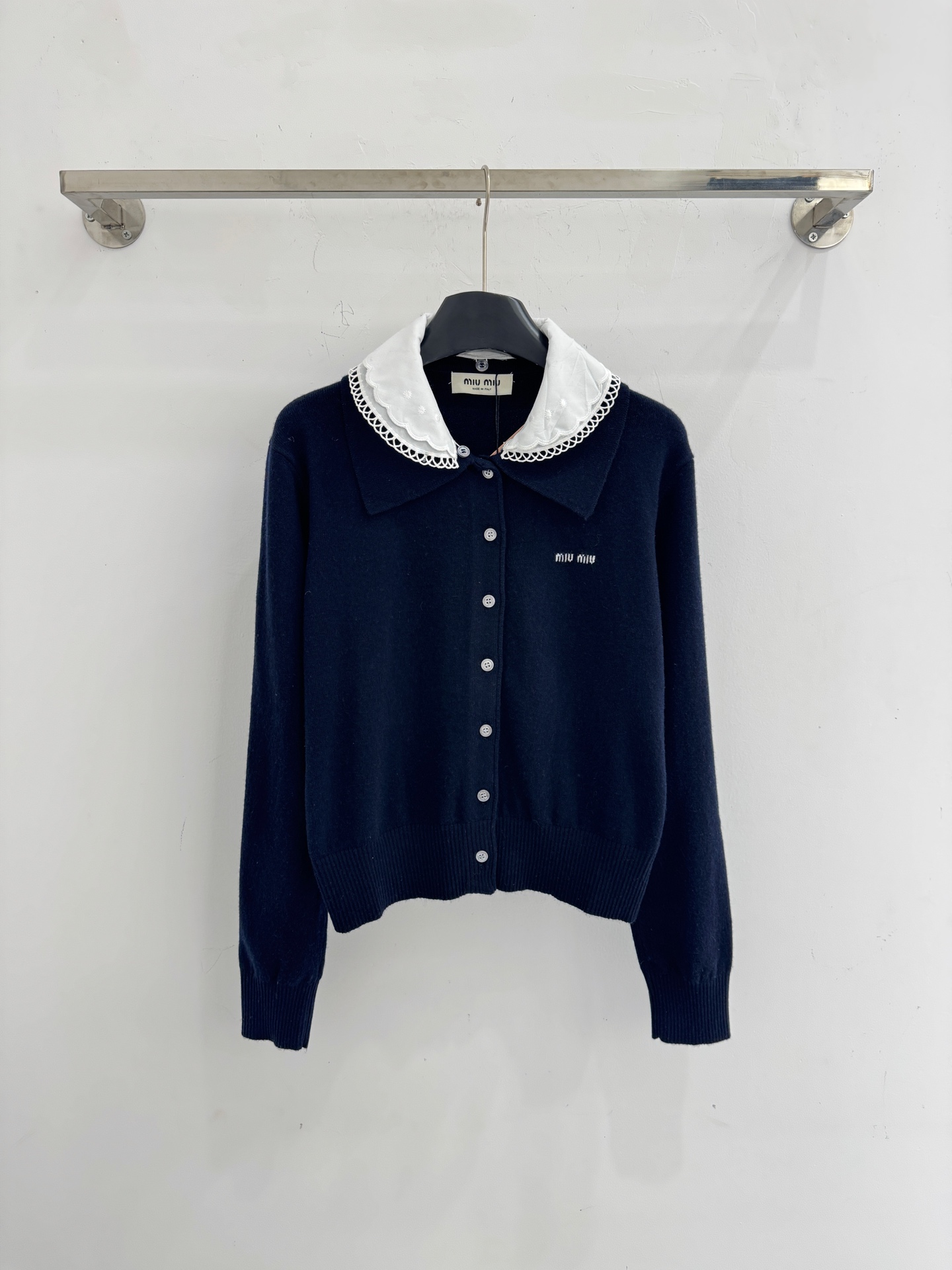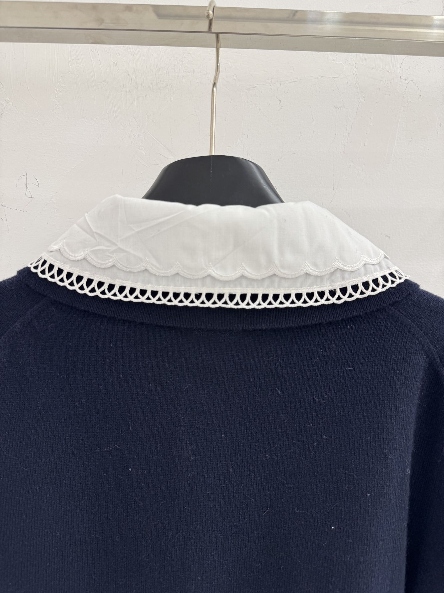 Details: Spring & Summer Detachable Doll Collar Cardigan, Soft Knit, Sweet Style, Navy Blue, SML.