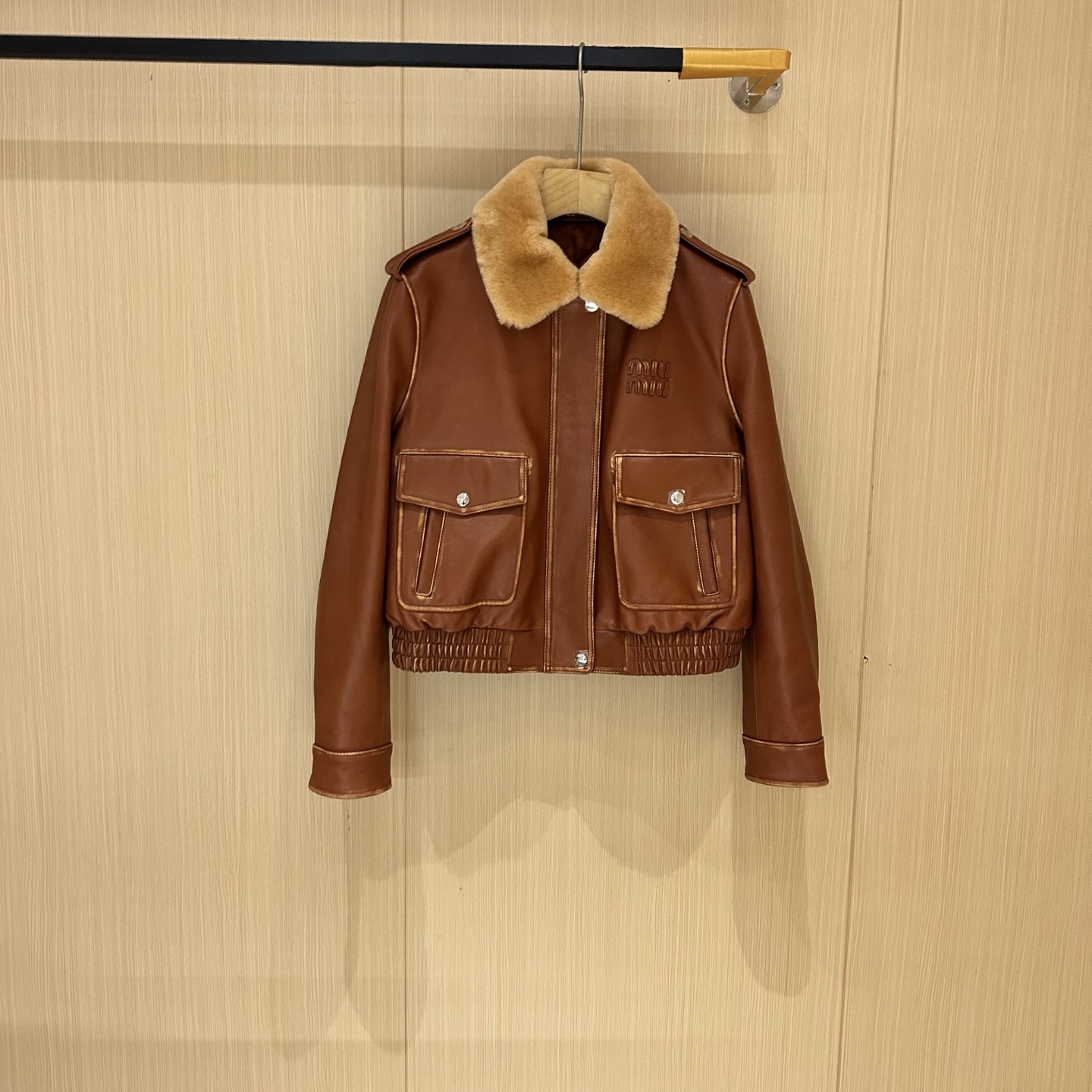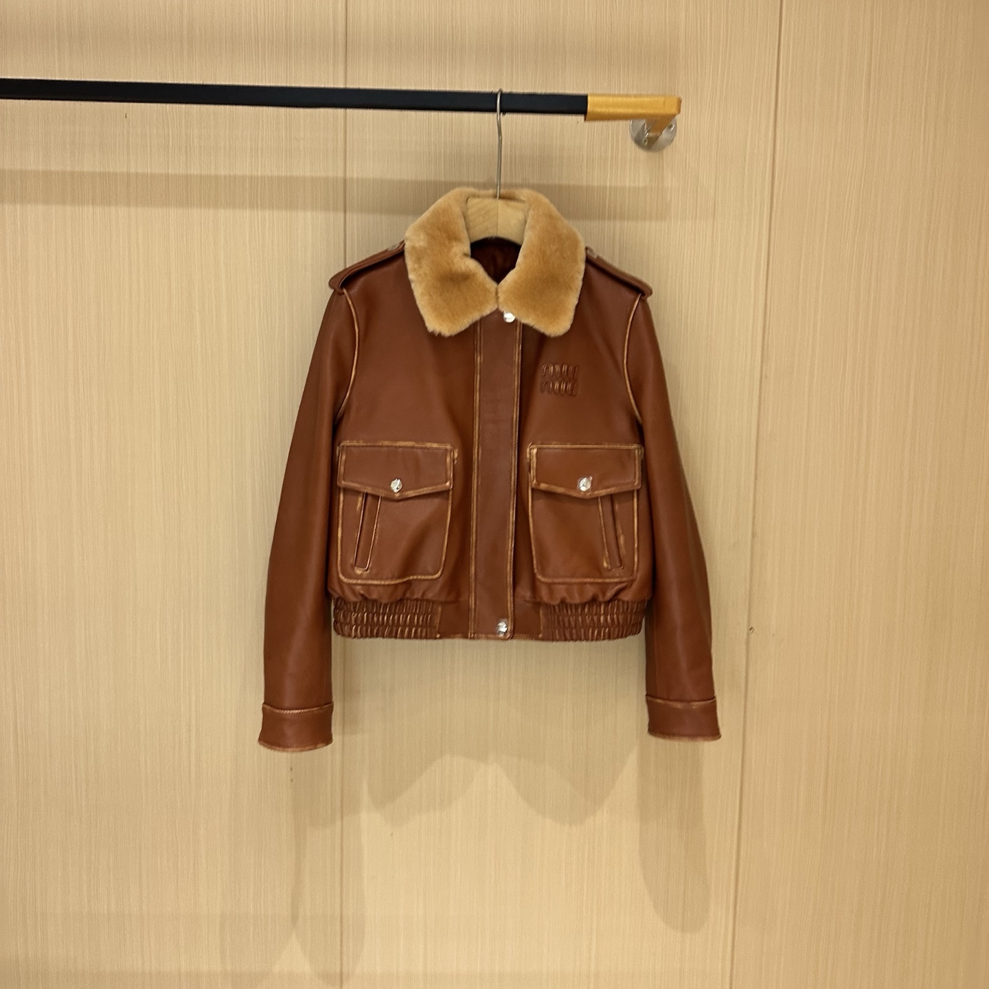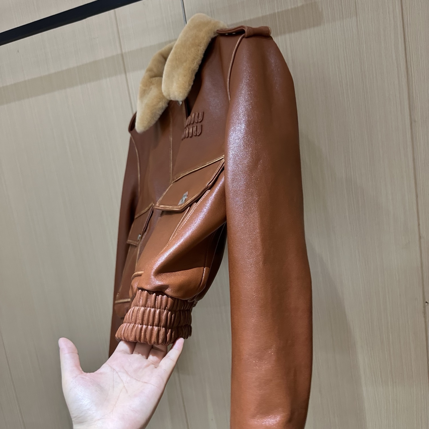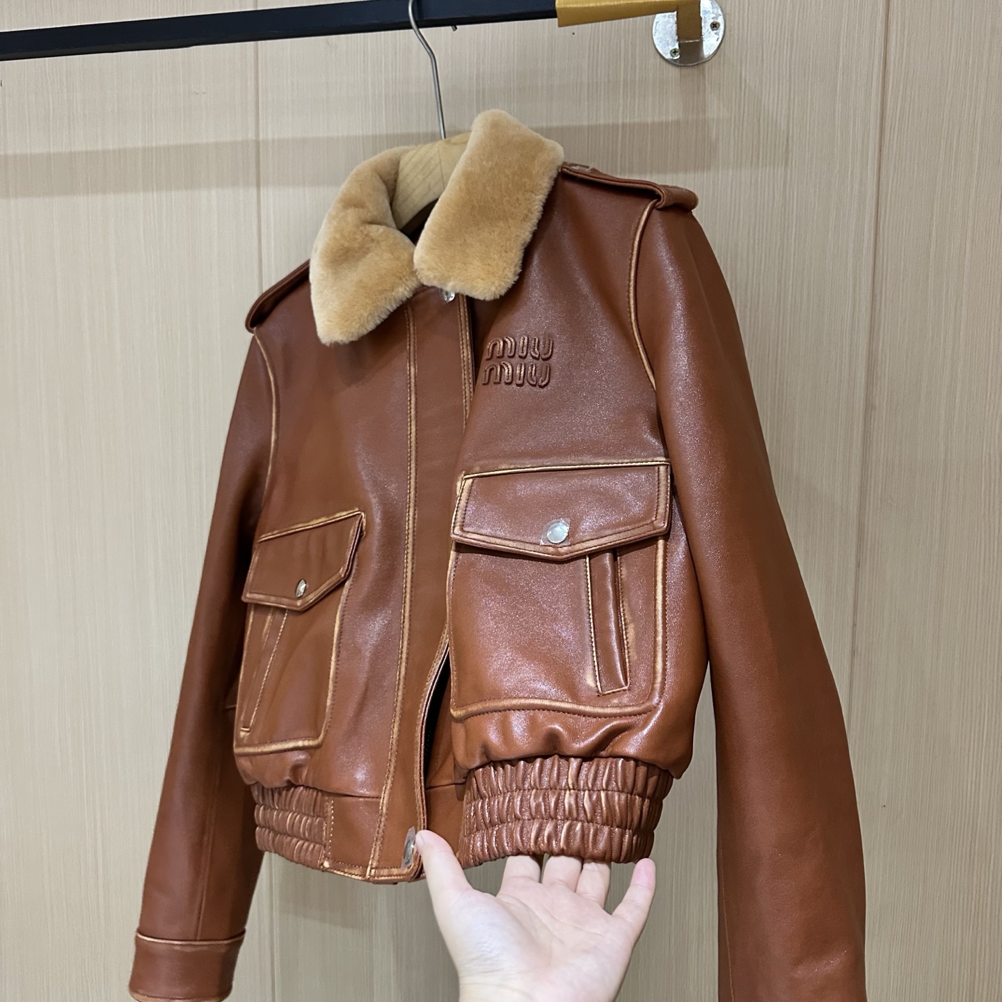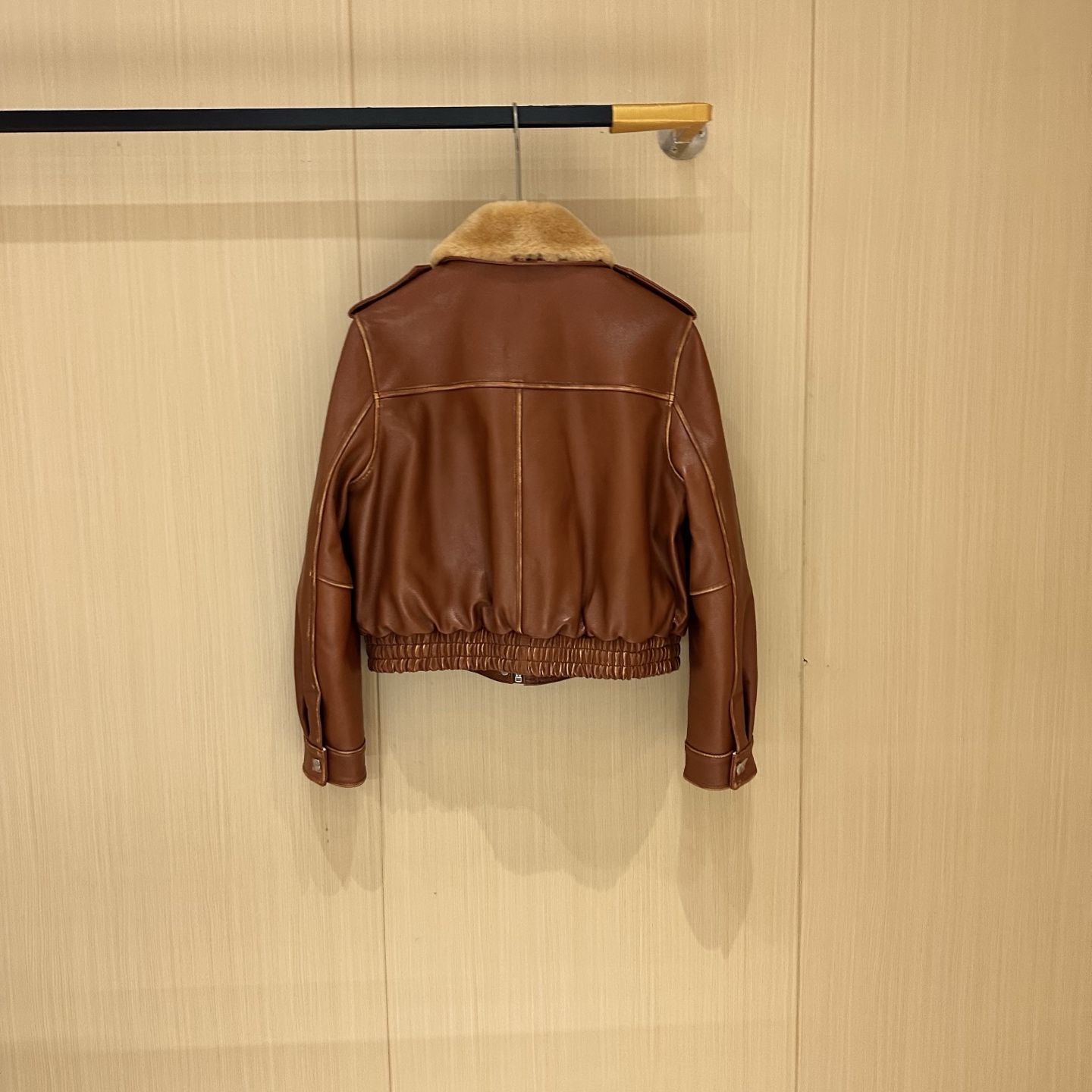 Details: autumn and winter leather jacket made of imported lambskin with a fur collar, featuring a sweet and cool style.