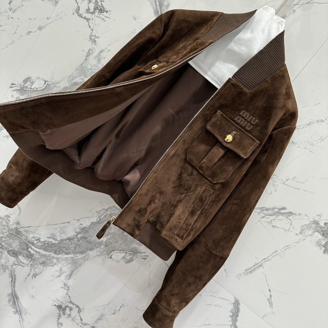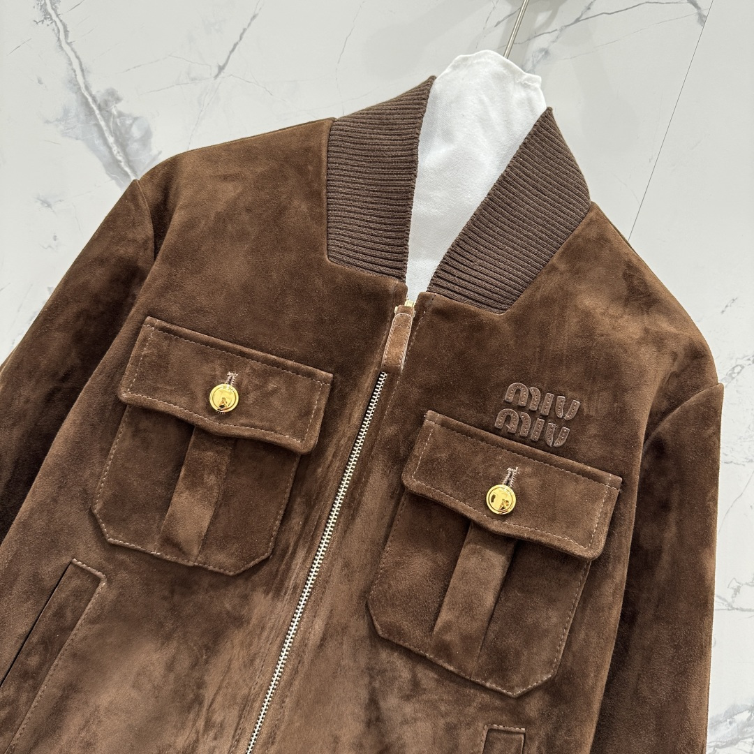 Details: Exclusive new suede jacket with a Miu - style girlish look, available in two colors. High - end customization and fine workmanship