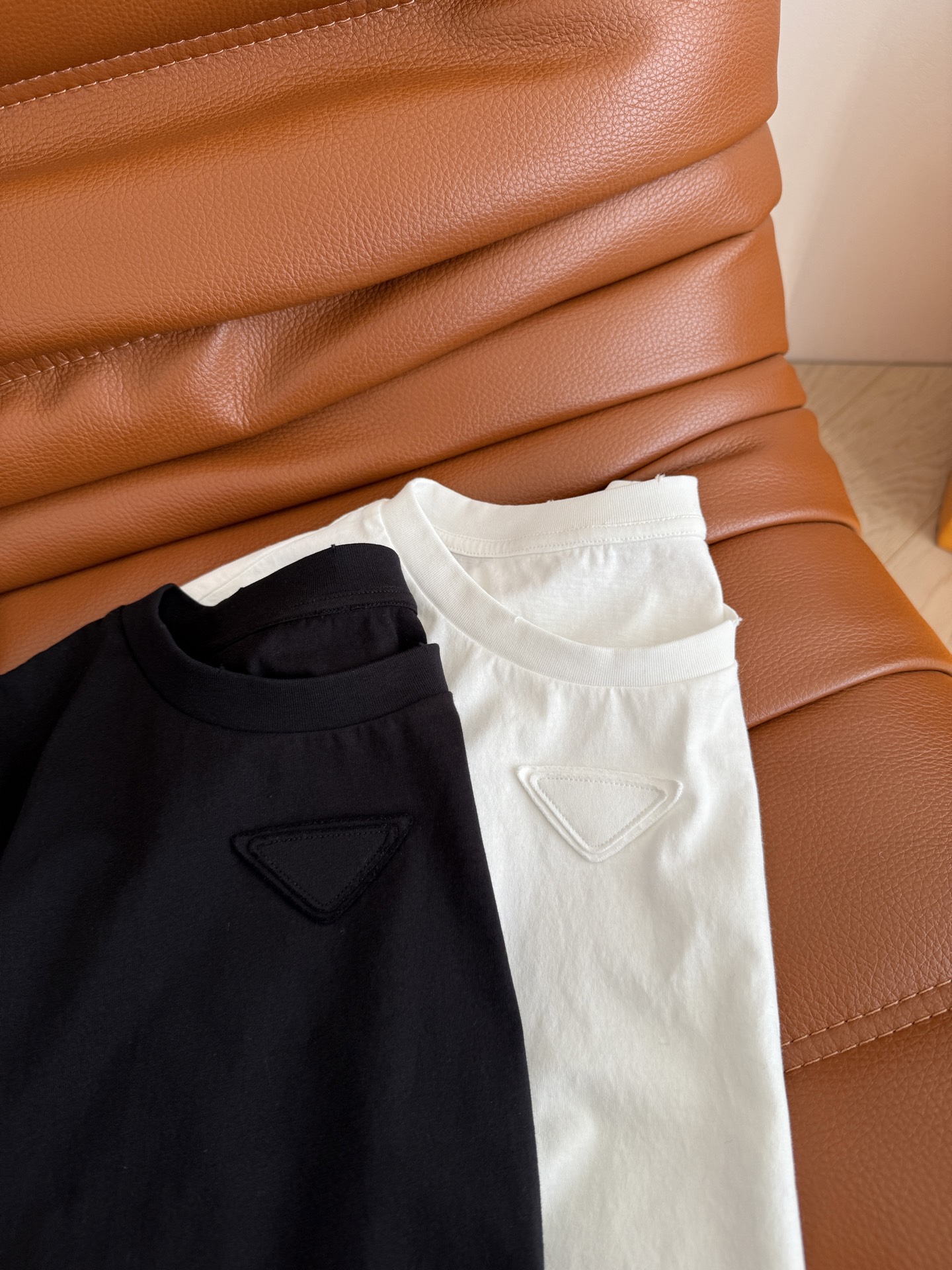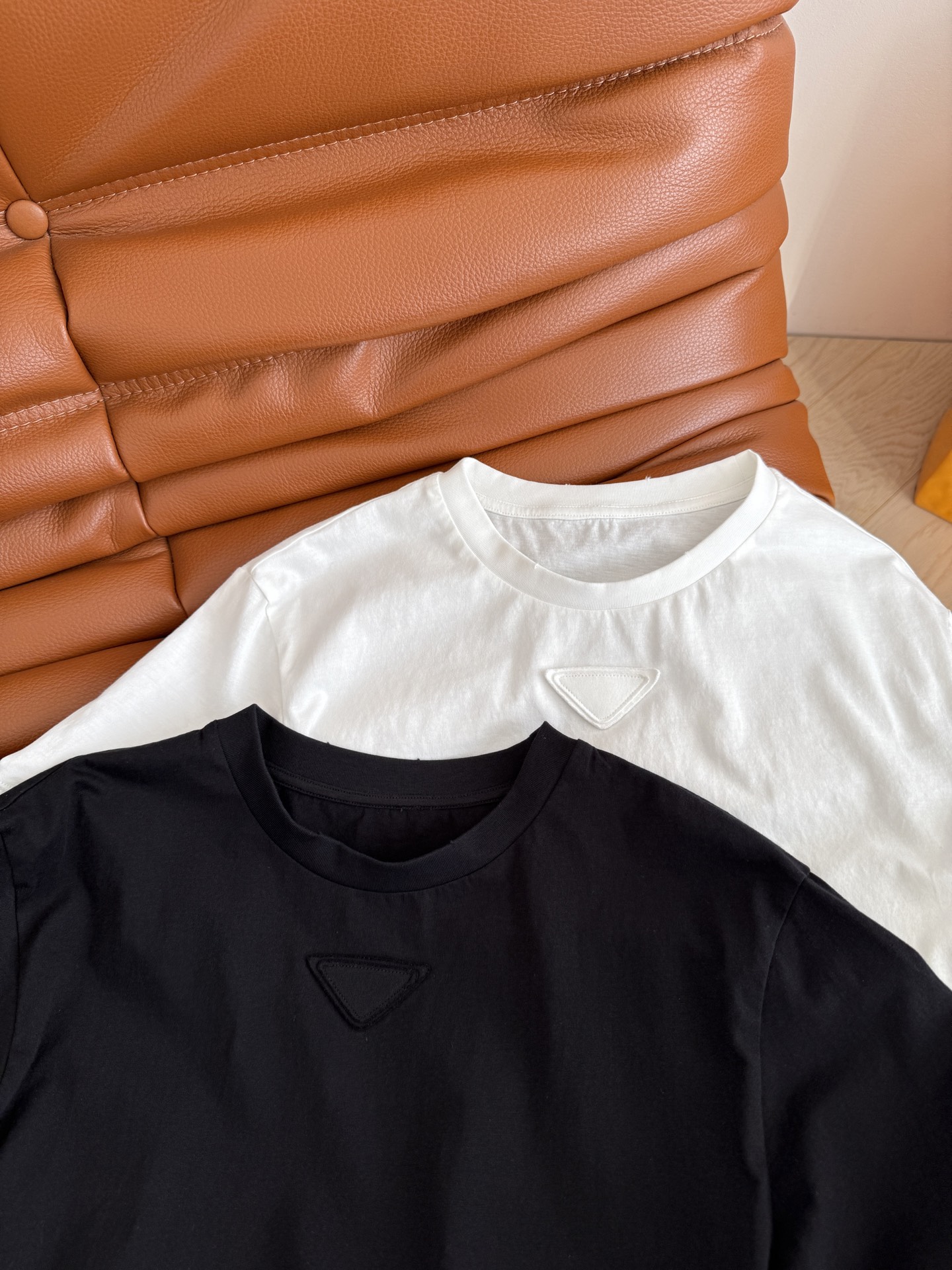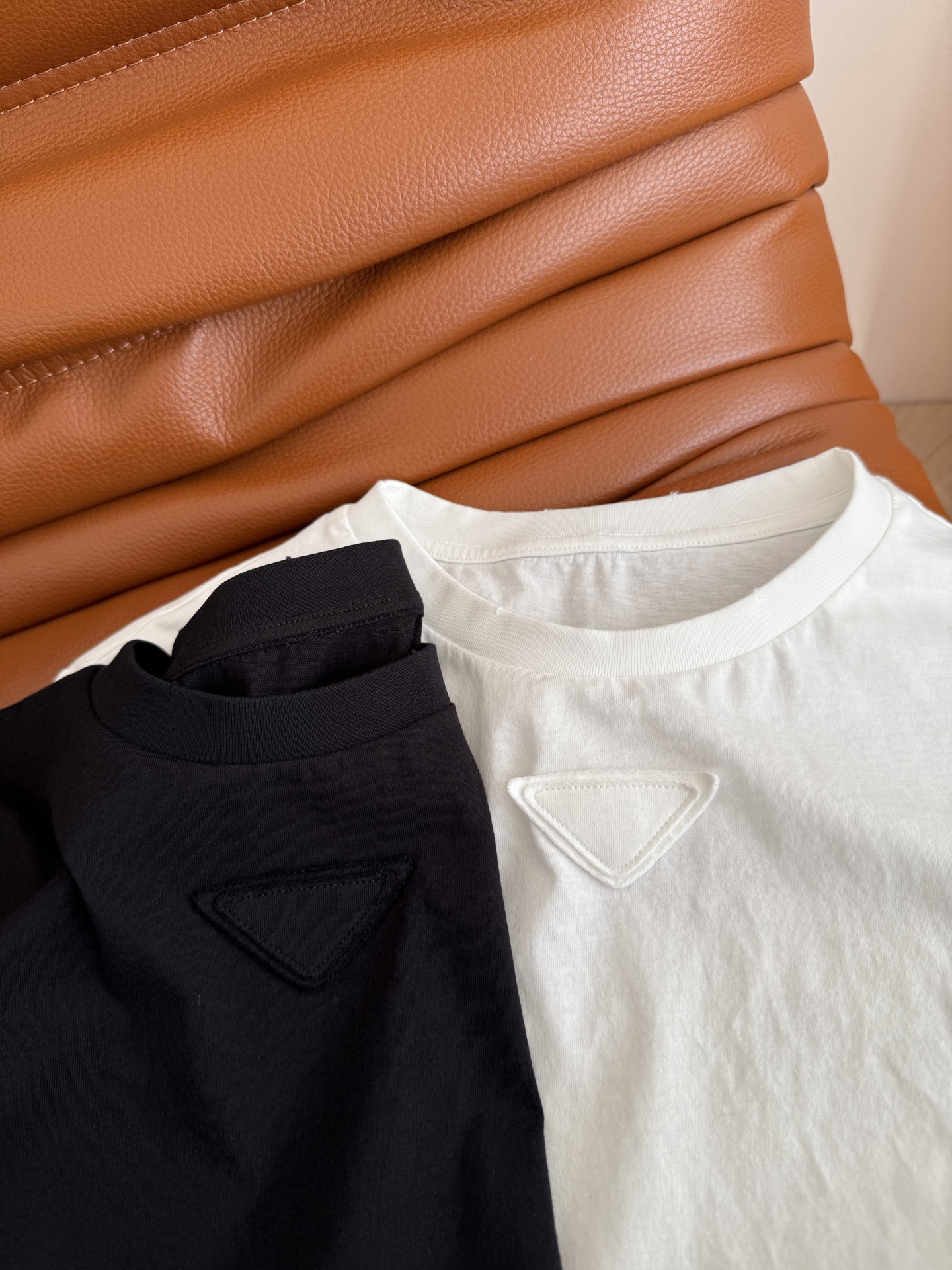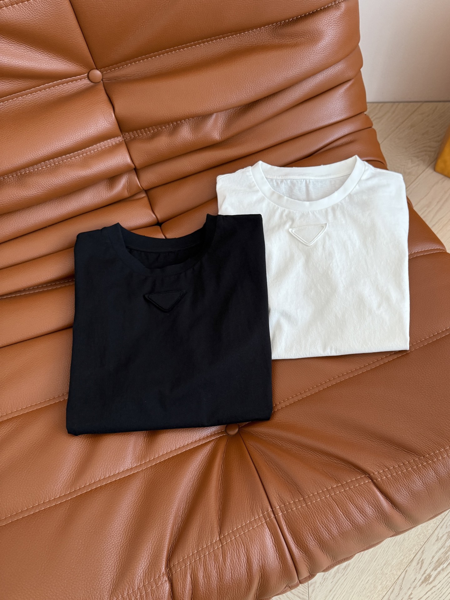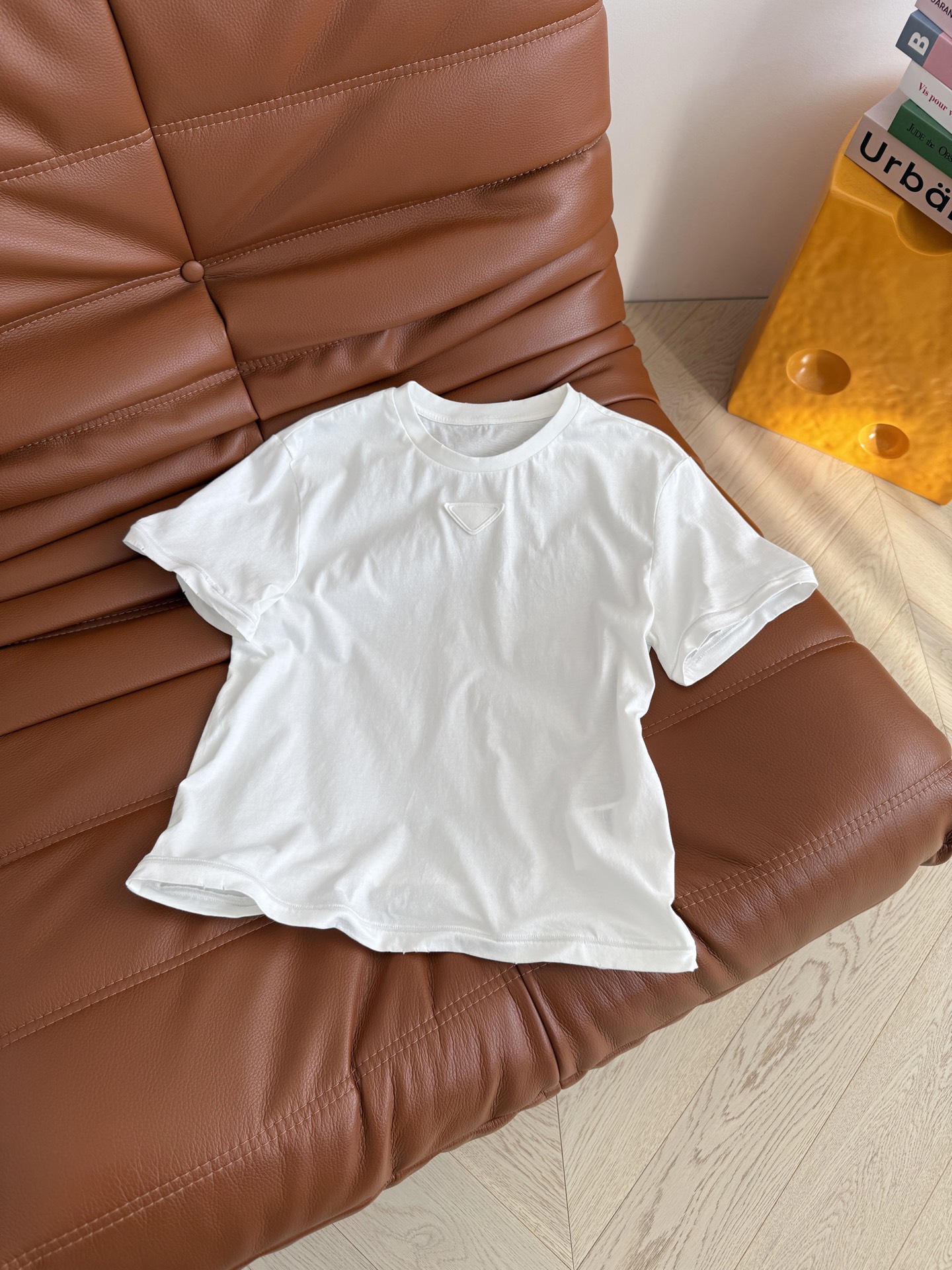 Details: Early Spring New Short-sleeved T-shirt with Triangle Logo, Classic and Versatile, Suitable for All Body Types, Soft and Comfortable, Two Colors Available