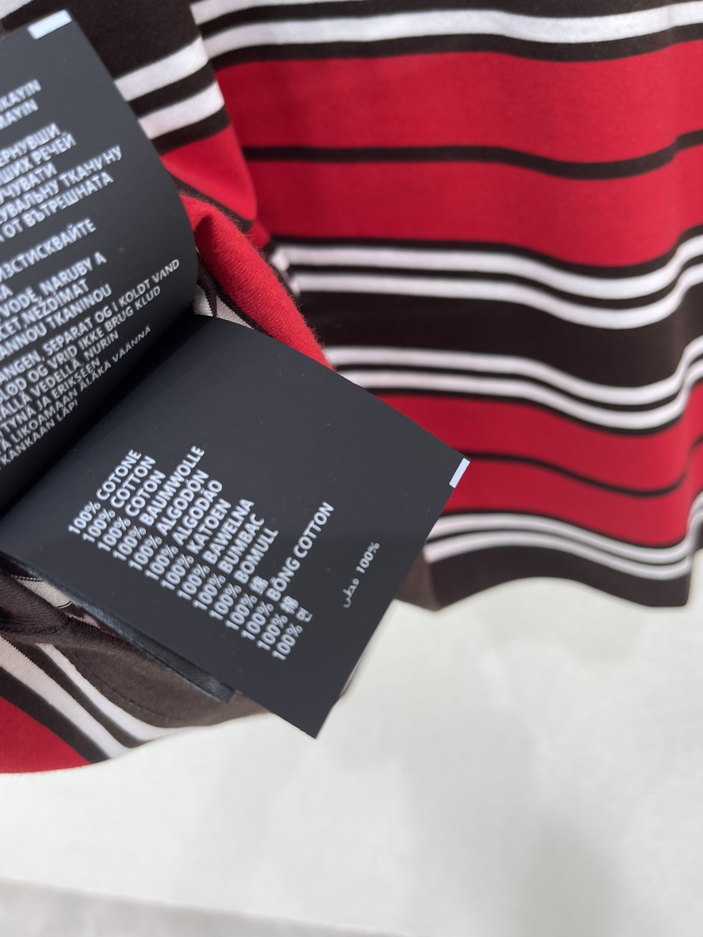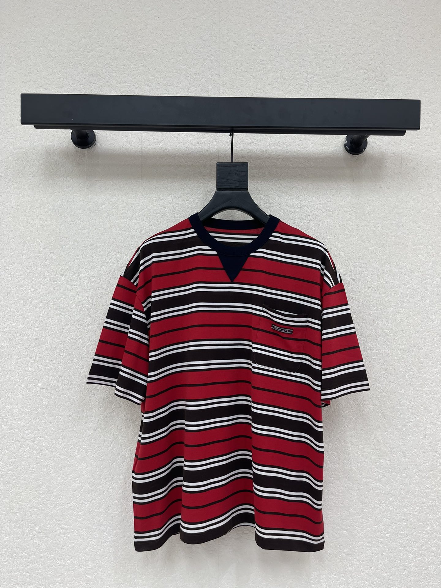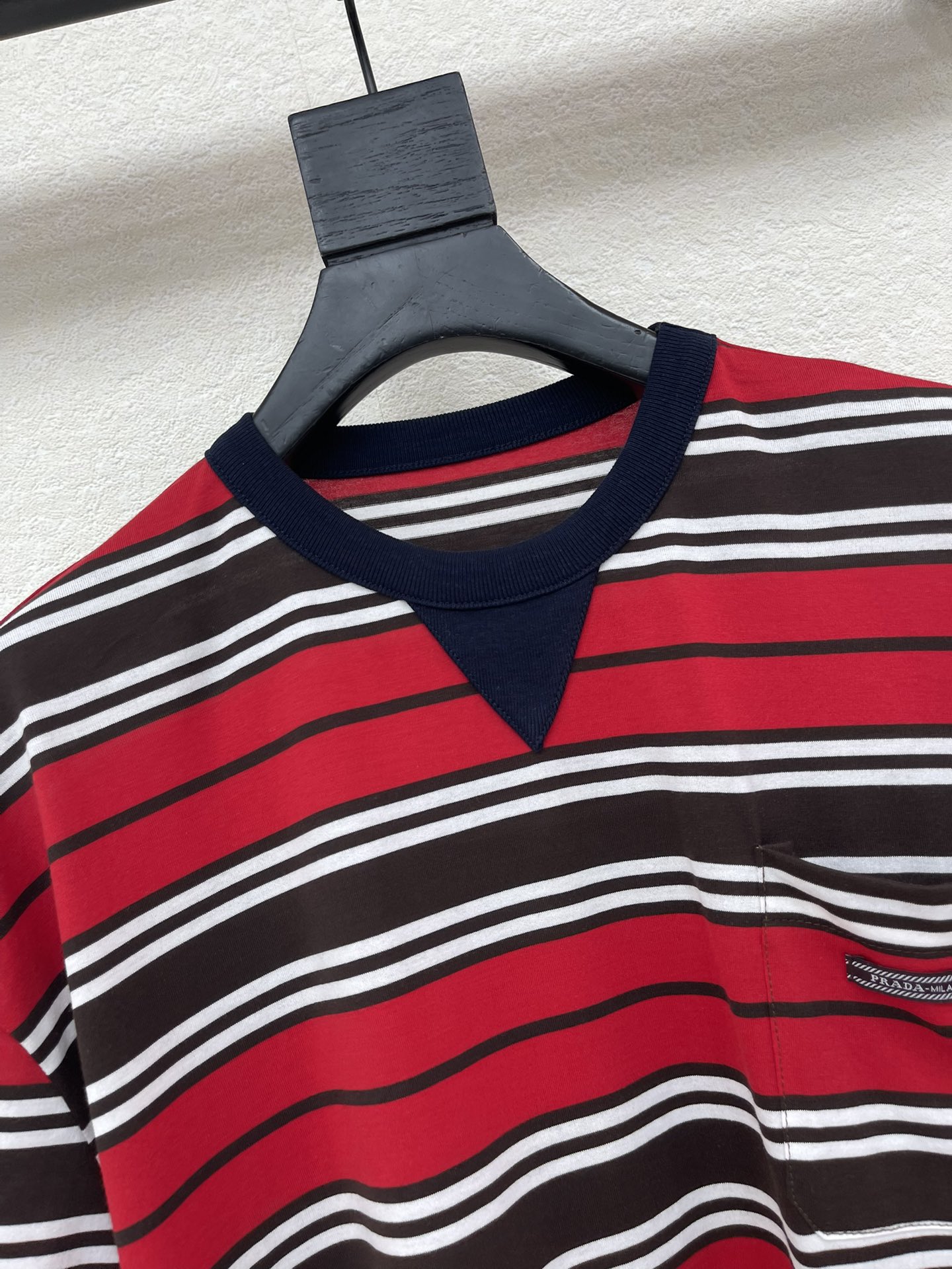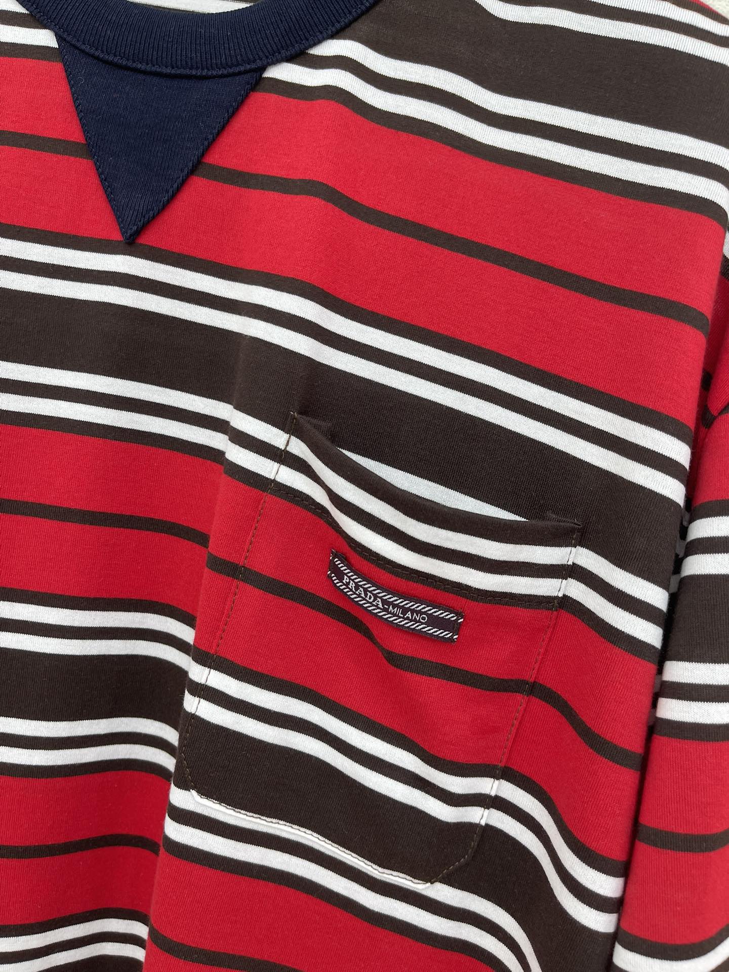 here:home > WOMENS > Prada > Top Prada (W) > Prada Red-Brown-White Striped Round Neck Cotton T-Shirt