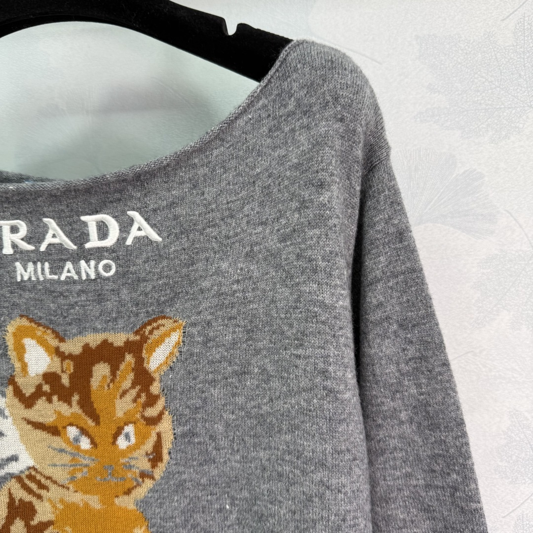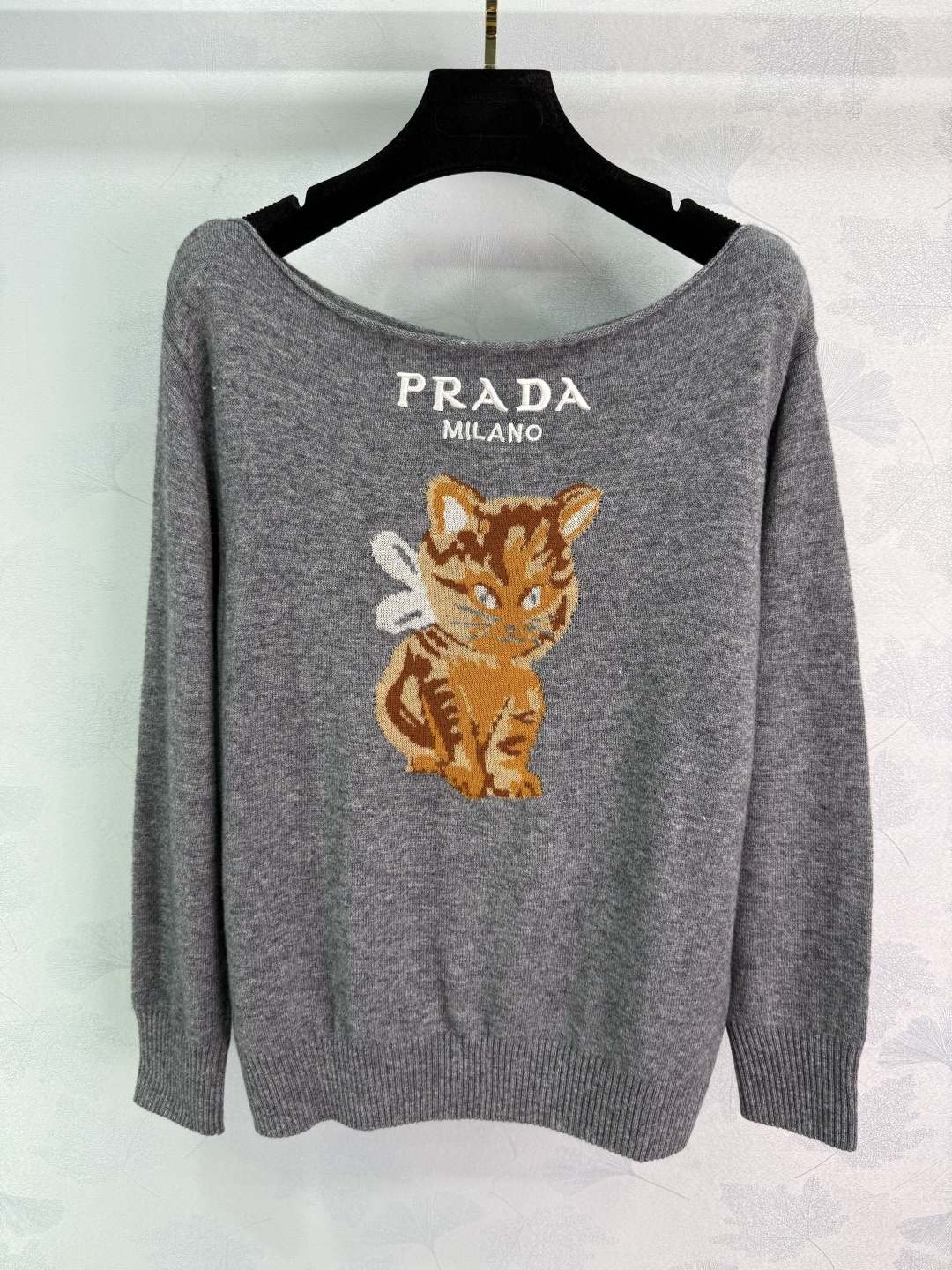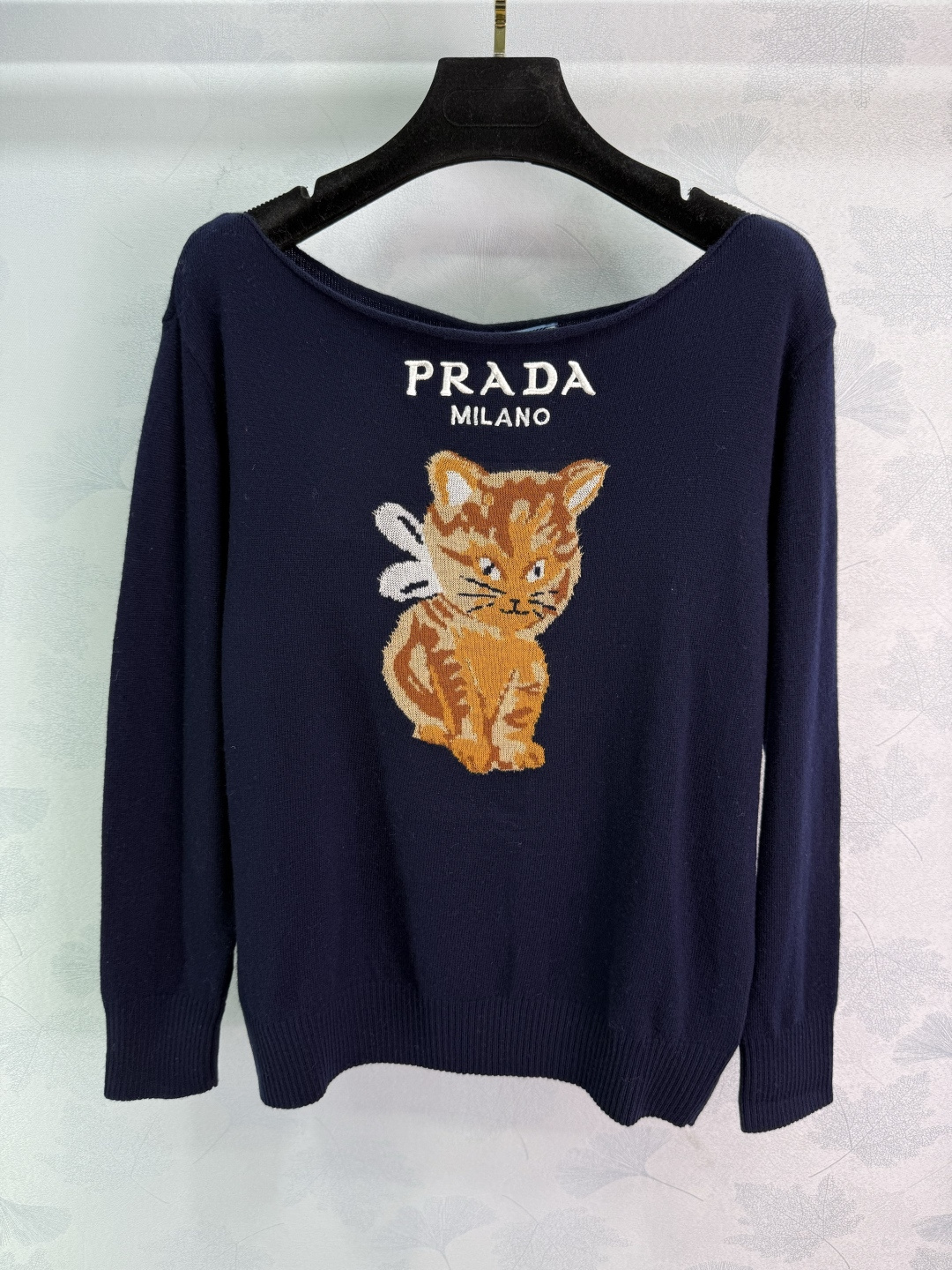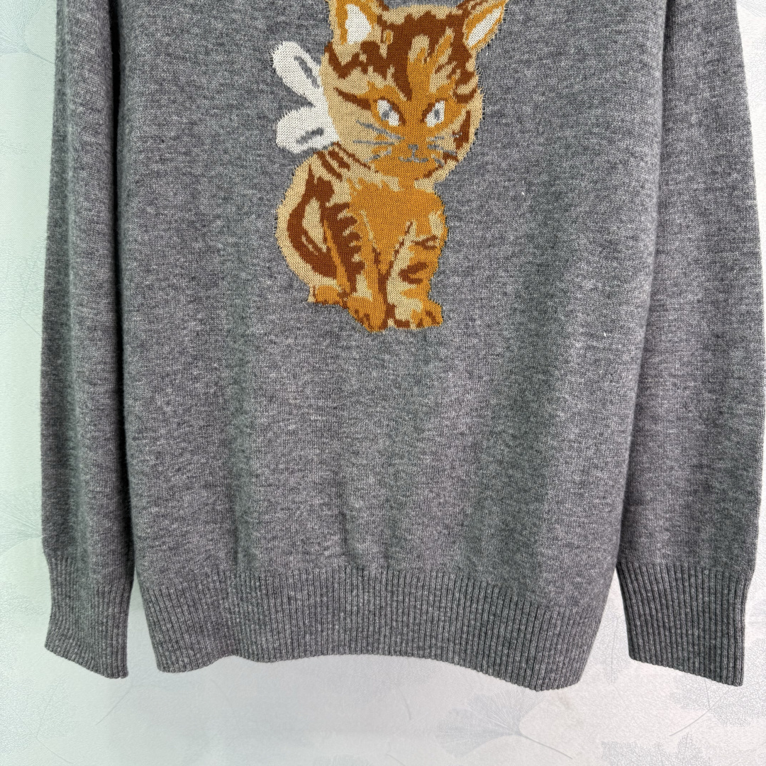 Details: Early autumn cat embroidery sweater featuring a charming cat and wing motif, boat neckline, relaxed fit, crafted from a wool blend, suitable for all age groups.