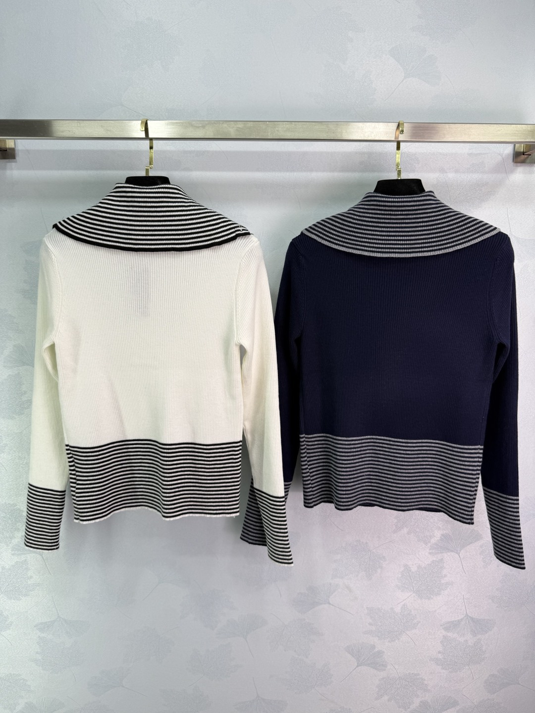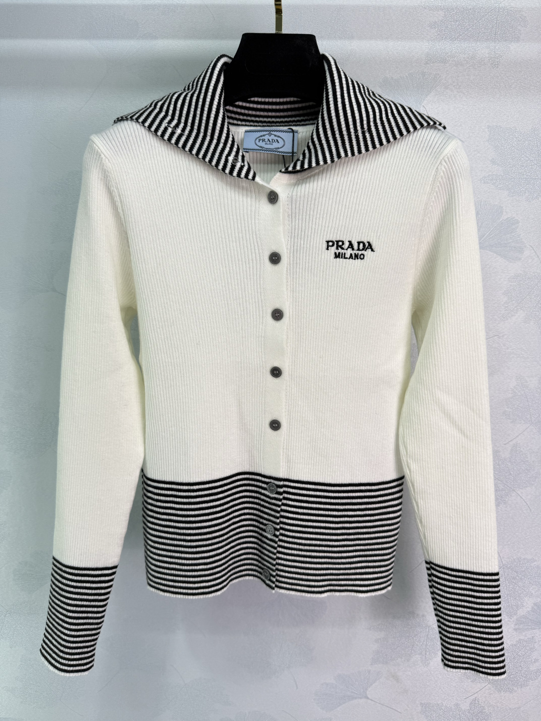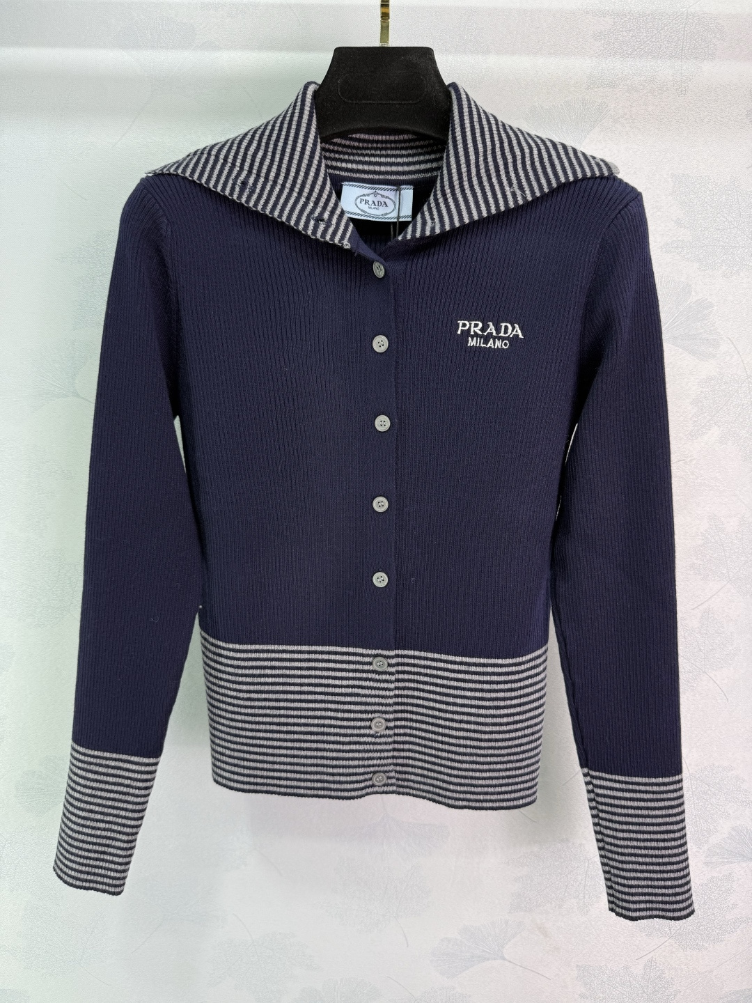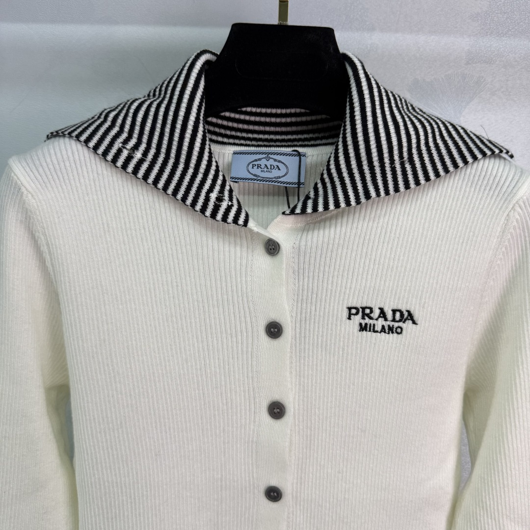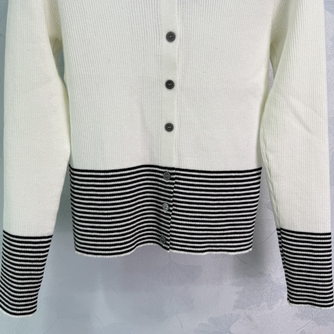 Details: Navy and white striped knit cardigan with letter embroidery, classic and versatile, perfect for spring and autumn.
