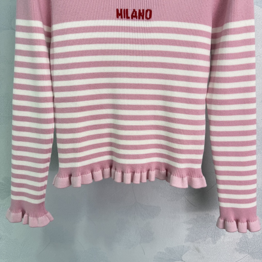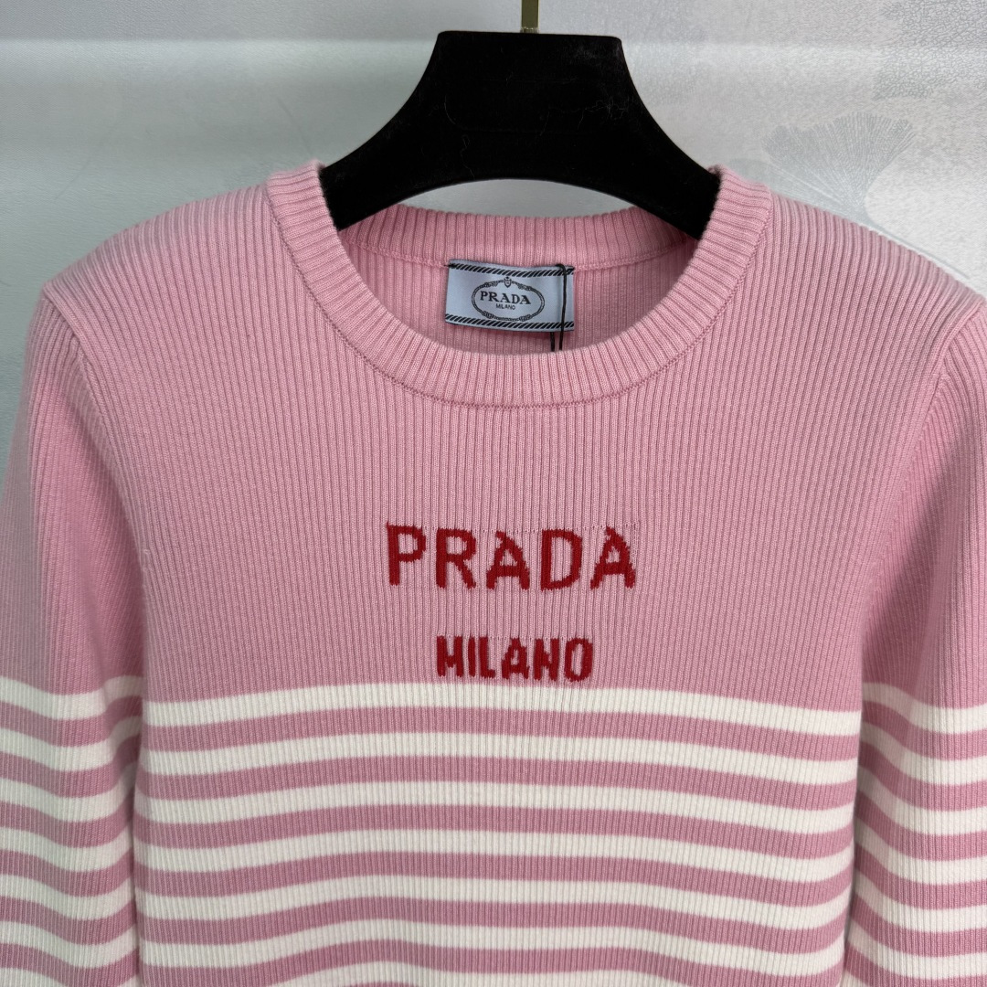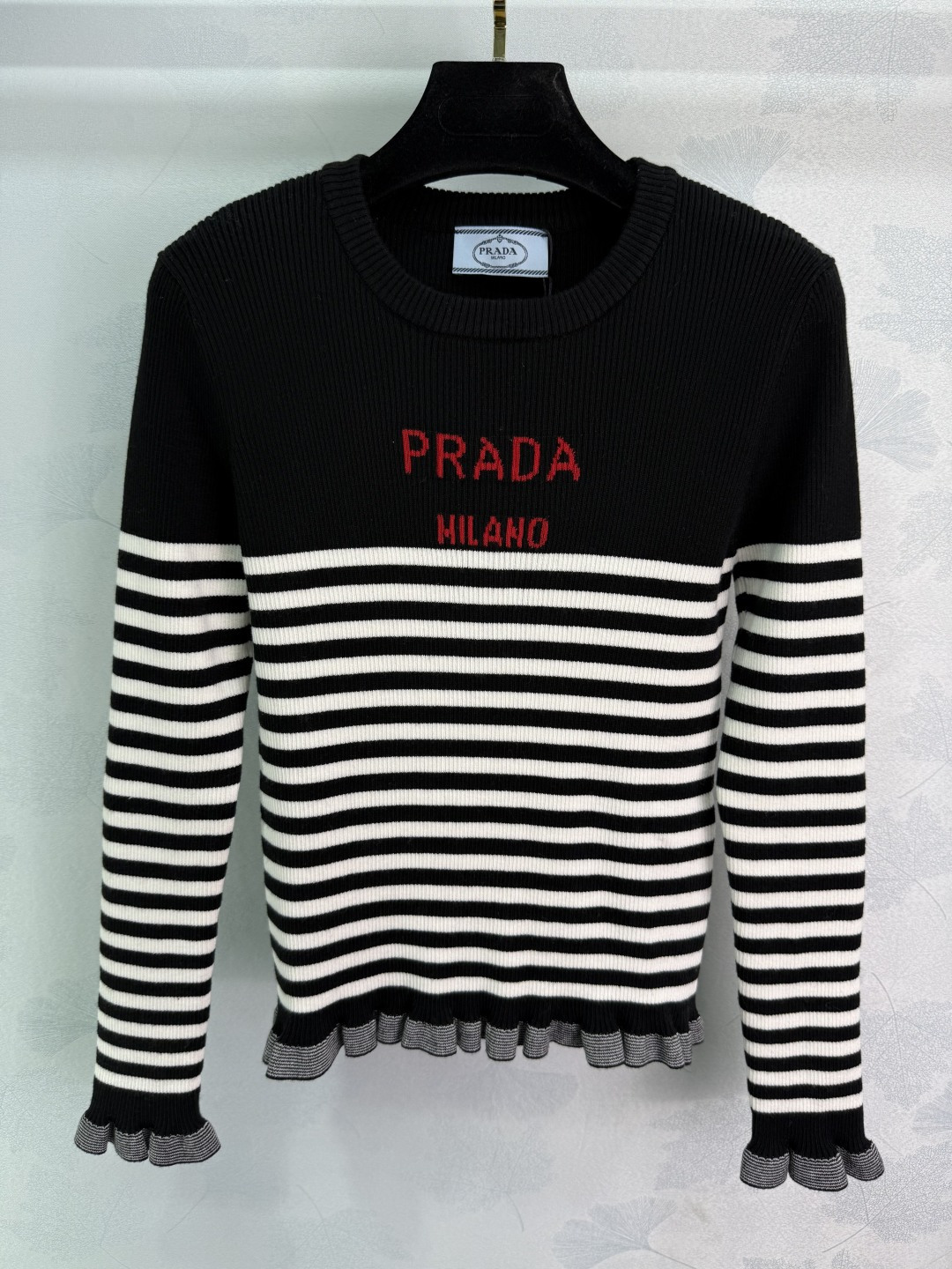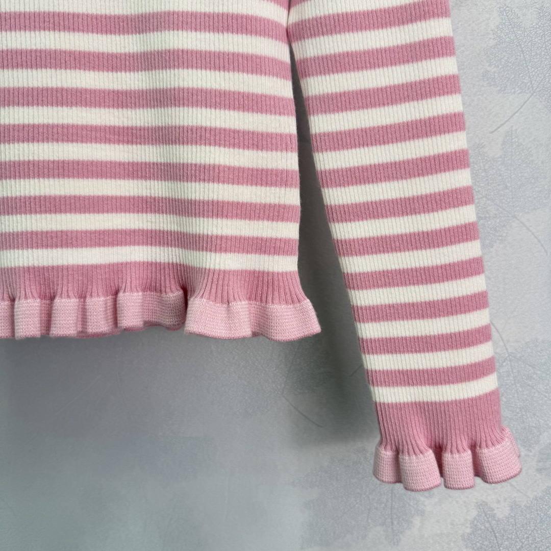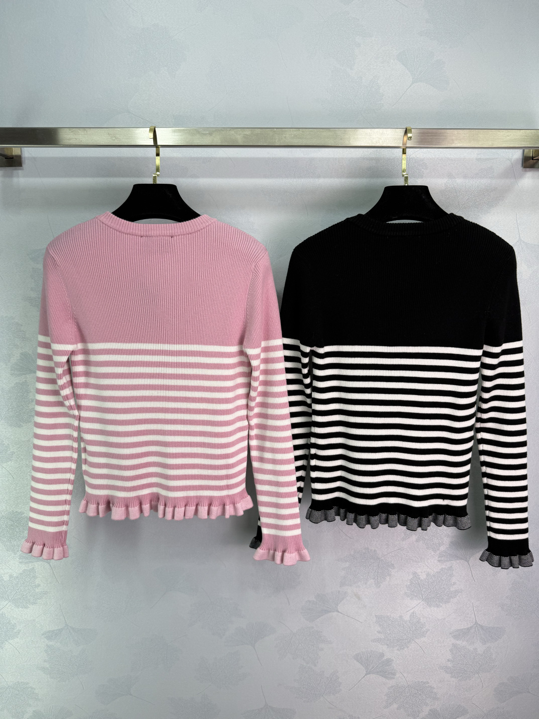 Details: Autumn round-neck striped knitted long-sleeved top, soft wool, with logo, fashionable and comfortable