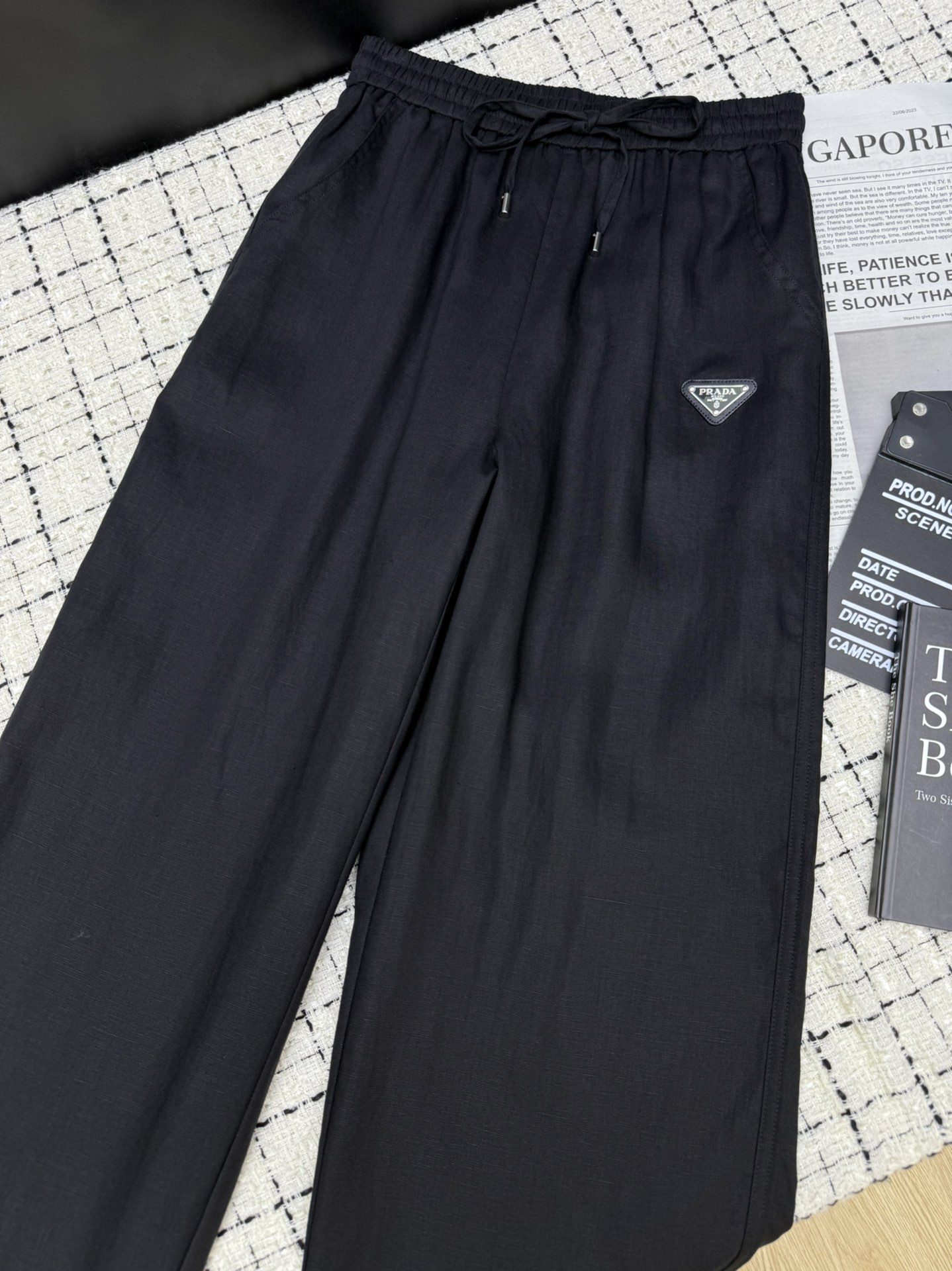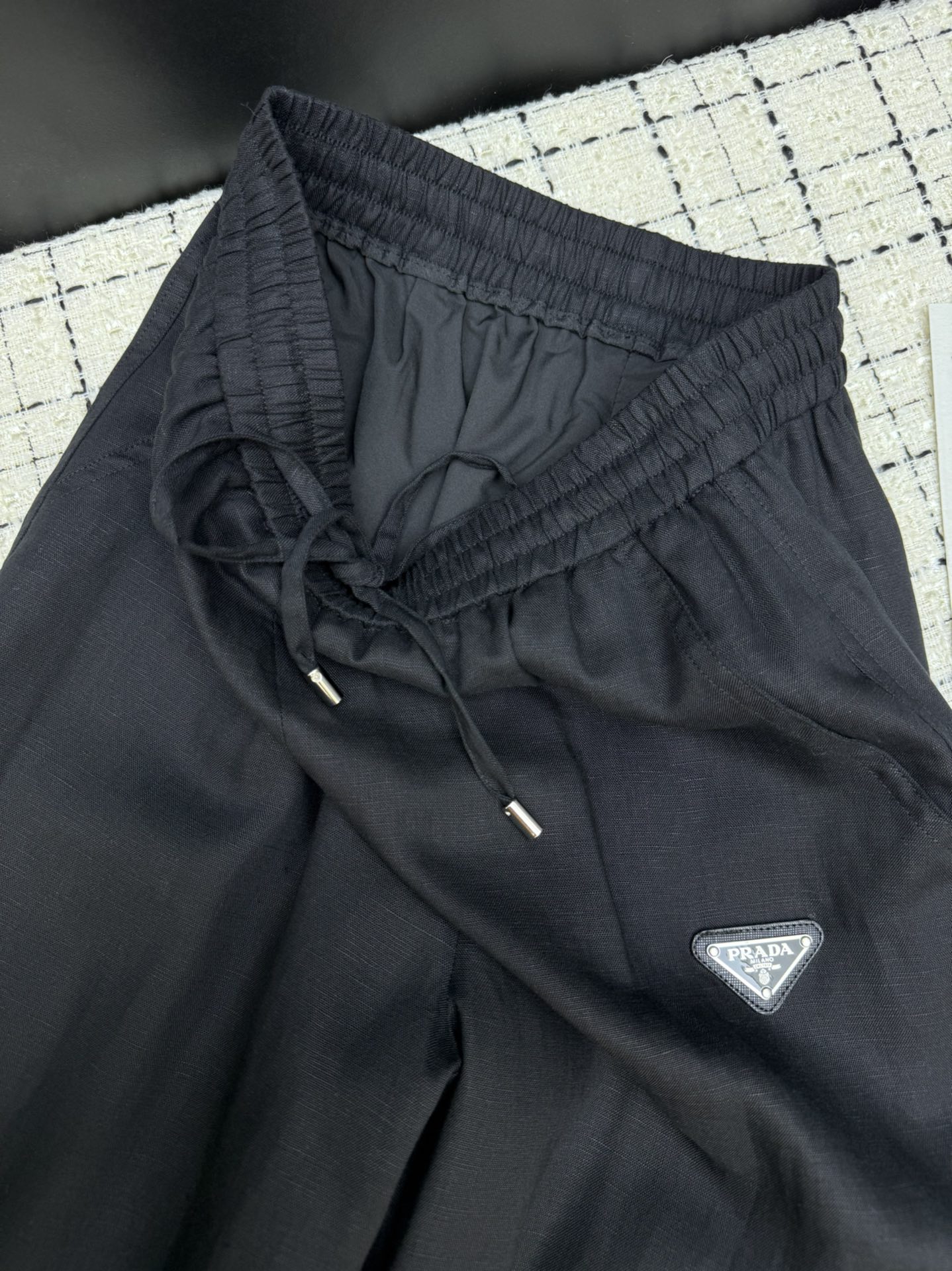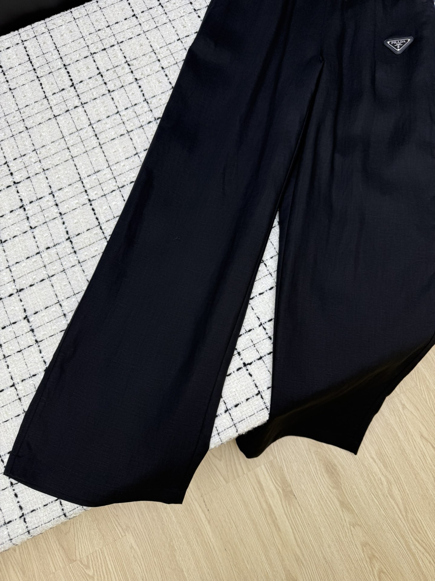 Details: New classic triangle-logo linen straight-leg wide-leg pants, relaxed and high-end, comfortable and textured with imported linen.