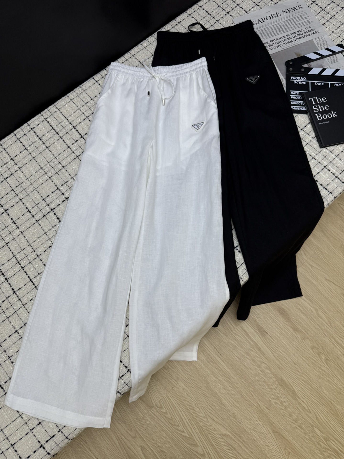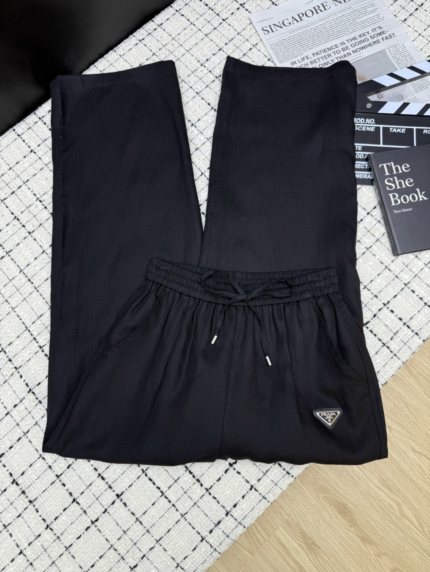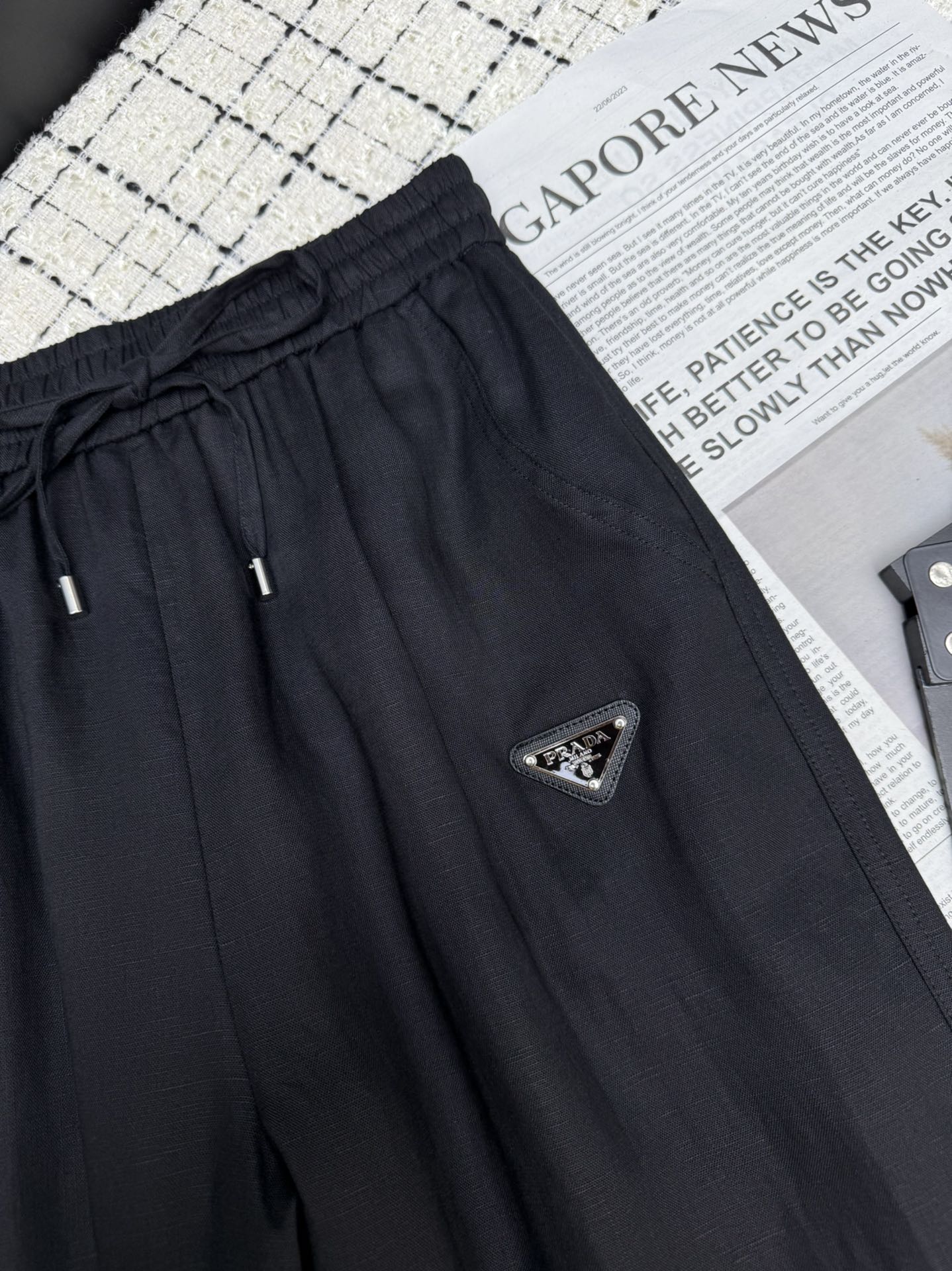 Details: New classic triangle-logo linen straight-leg wide-leg pants, relaxed and high-end, comfortable and textured with imported linen.