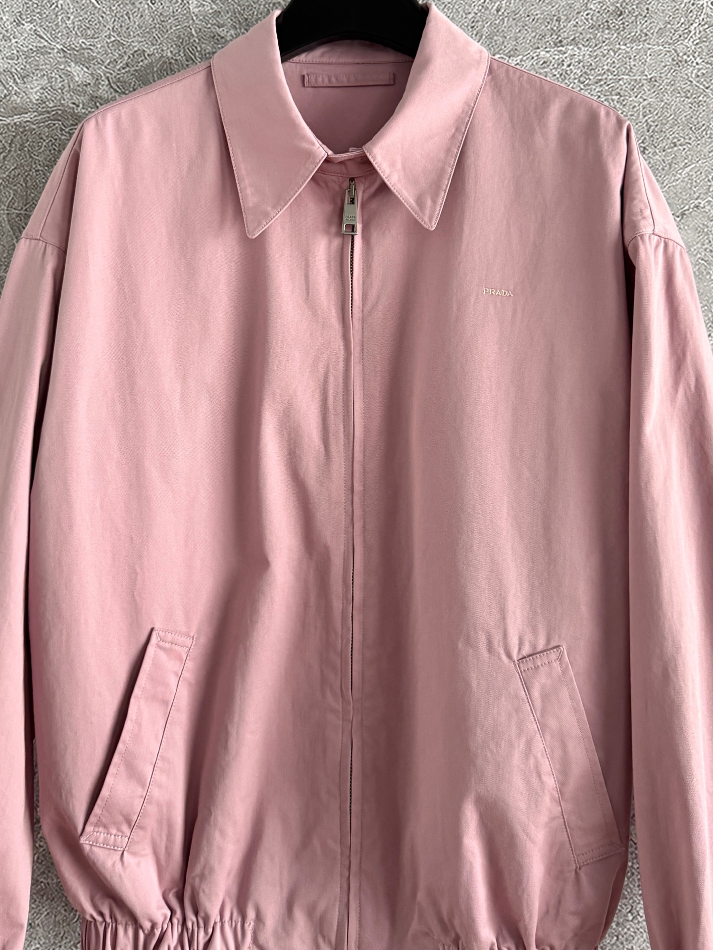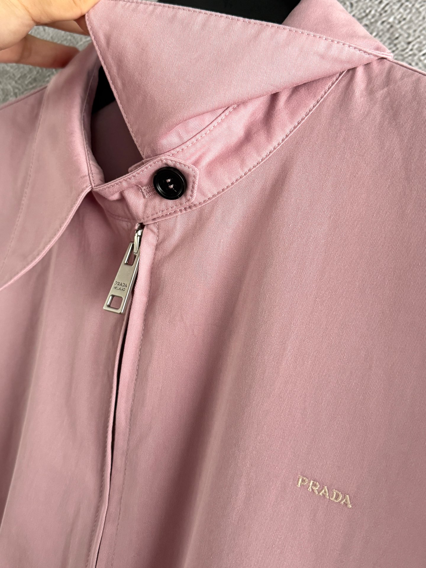 Details: Pink twill cotton jacket, classic lapel, suitable for both men and women