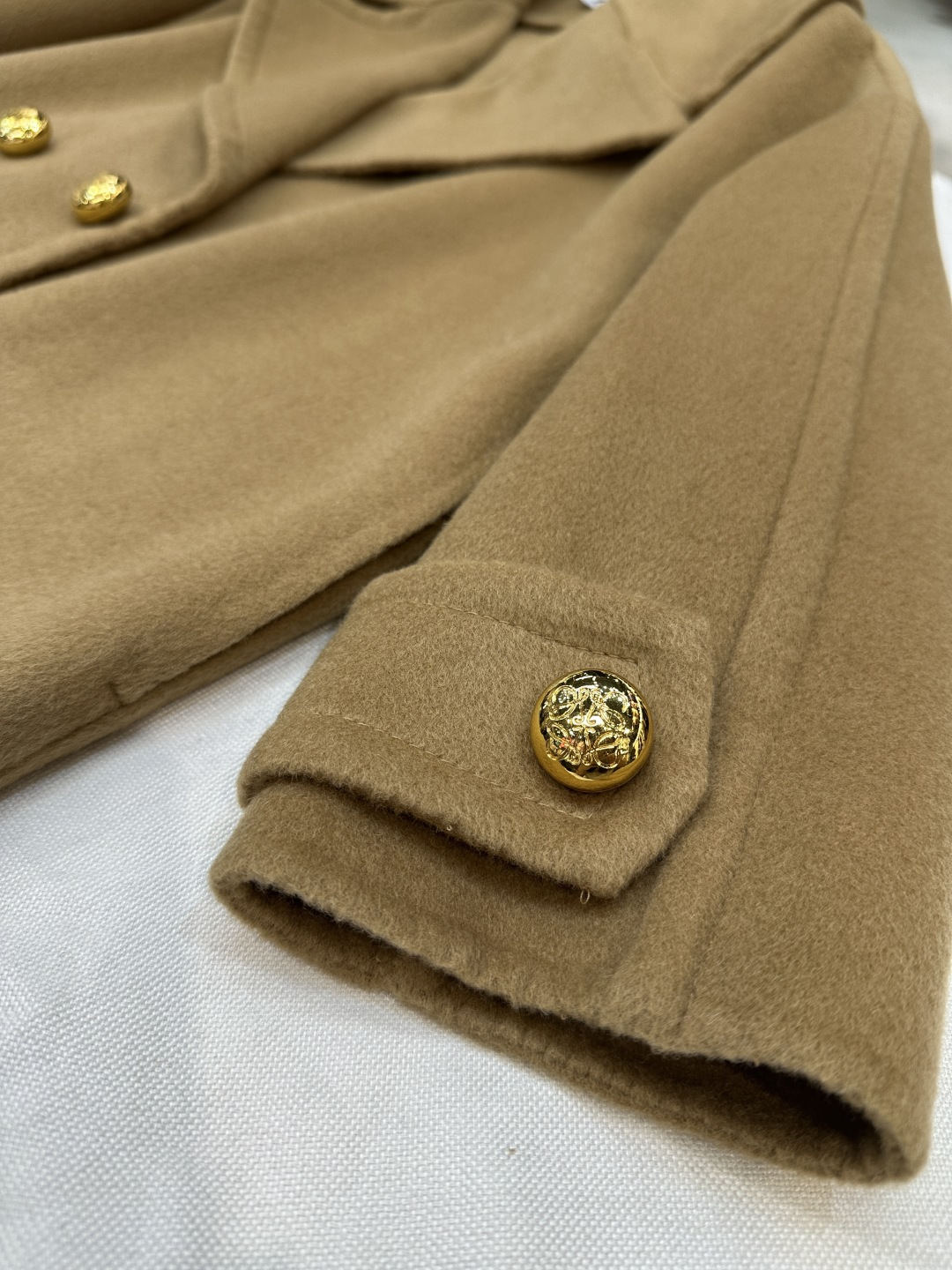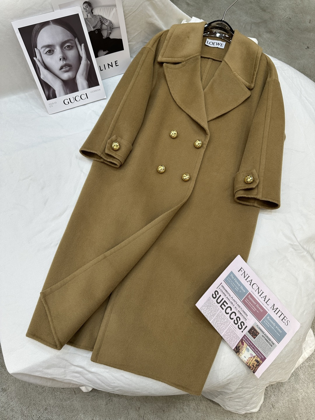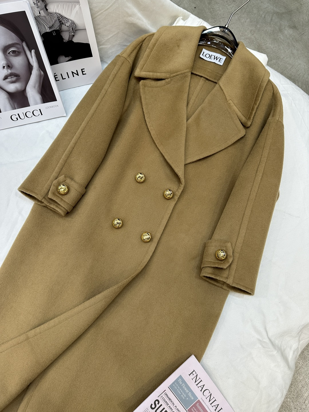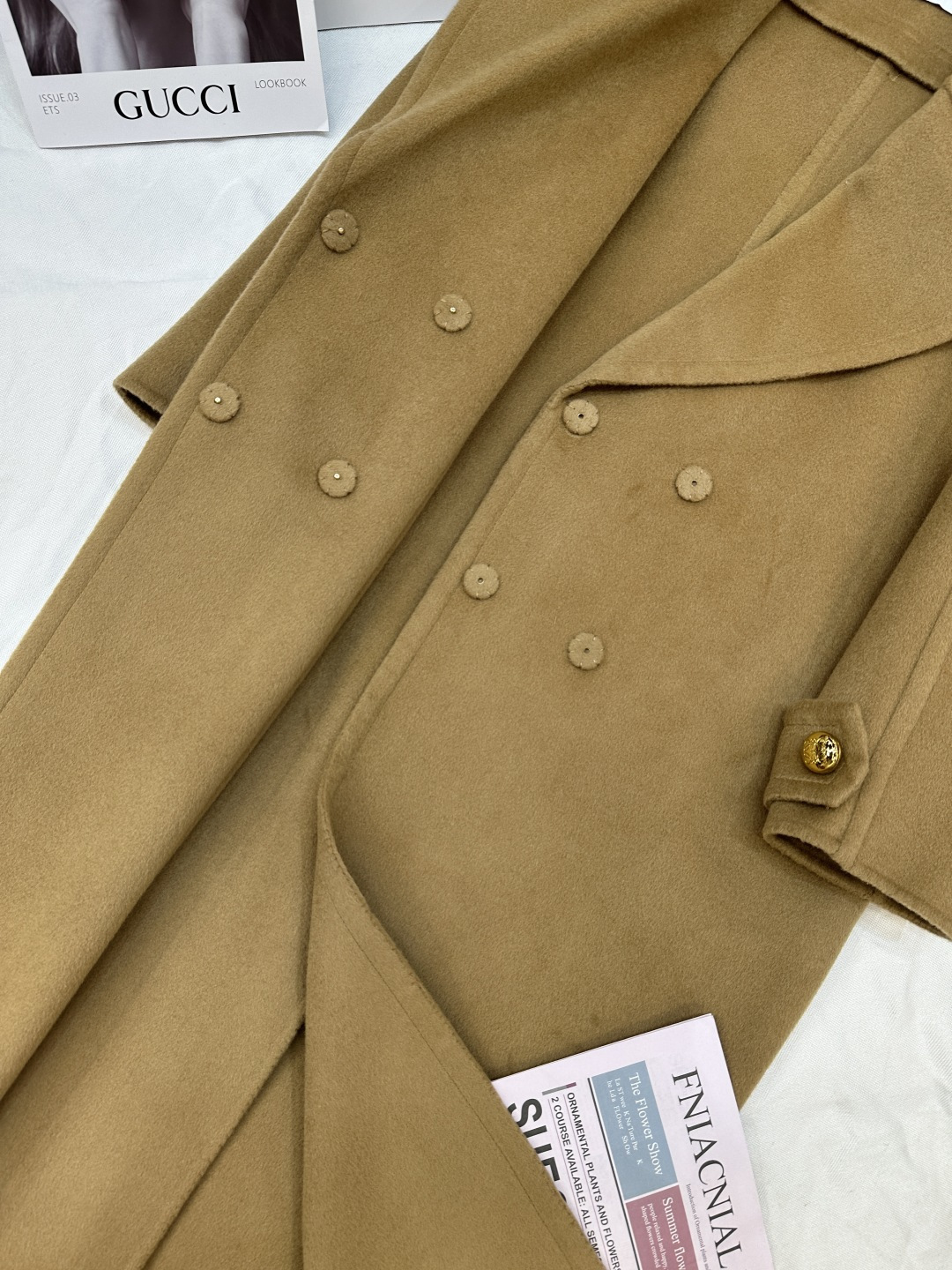 Details: Mid - length double - sided cashmere overcoat with gold buttons, stylish and sophisticated, high - end customization, fine workmanship