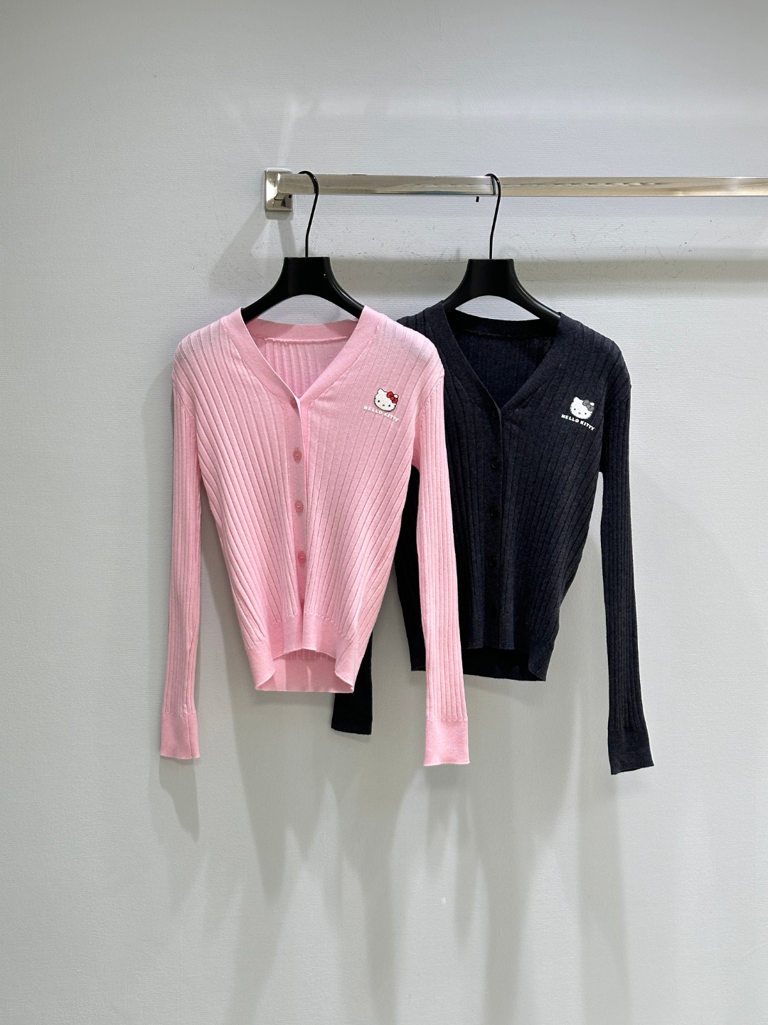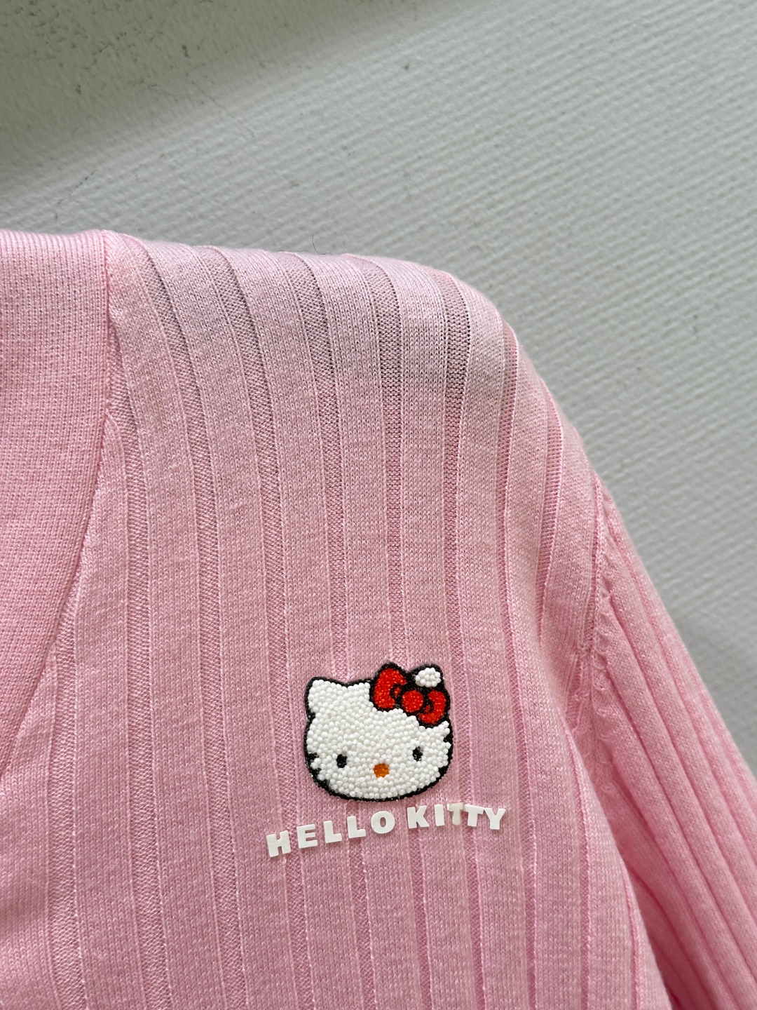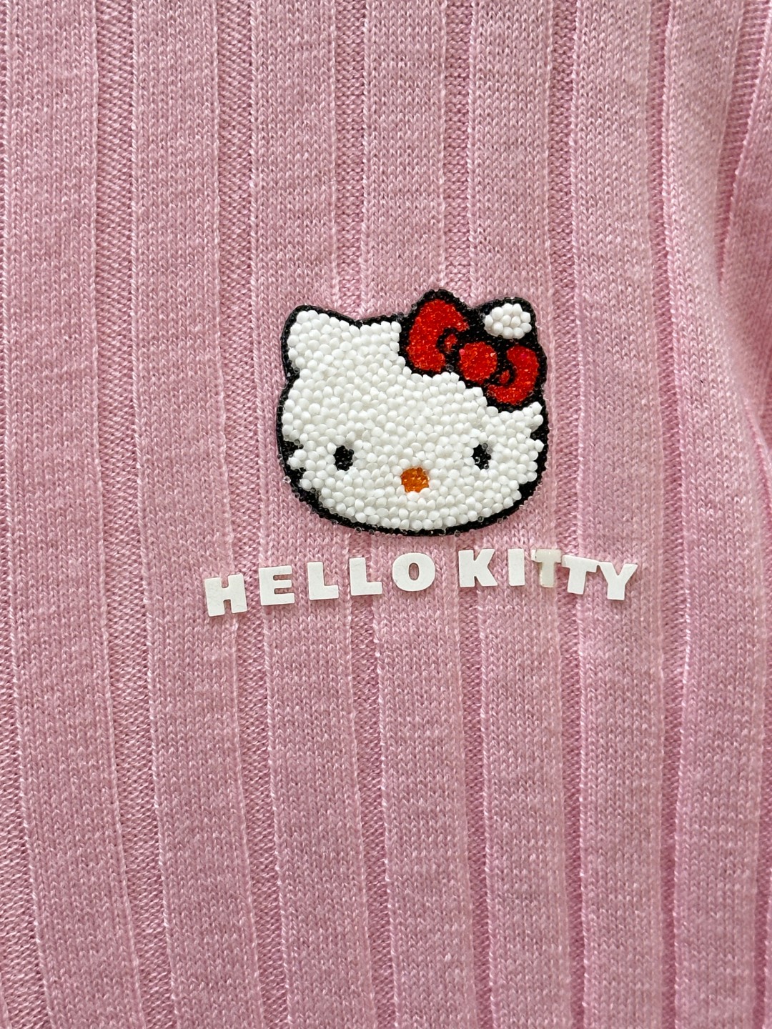 Details: Early autumn Knitted top with rhinestone Hello Kitty, V-neck, and padded shoulders. Soft and comfortable.