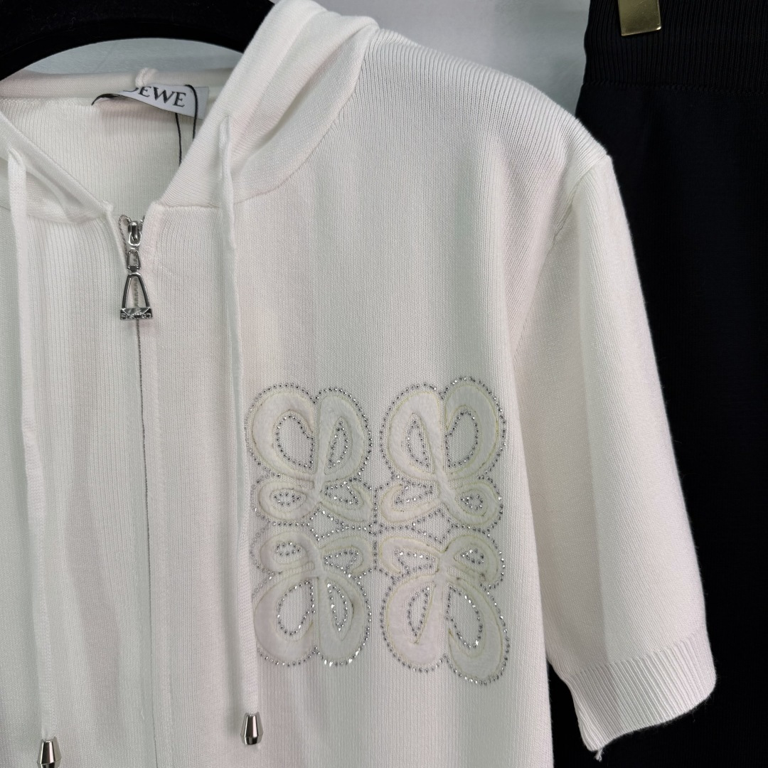 Details: Early Spring New Set: 3D Embossed Knit Tracksuit with Short - sleeved Zip - up Hoodie and Drawstring Wide - leg Pants, Stylish and Practical.