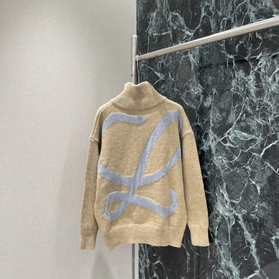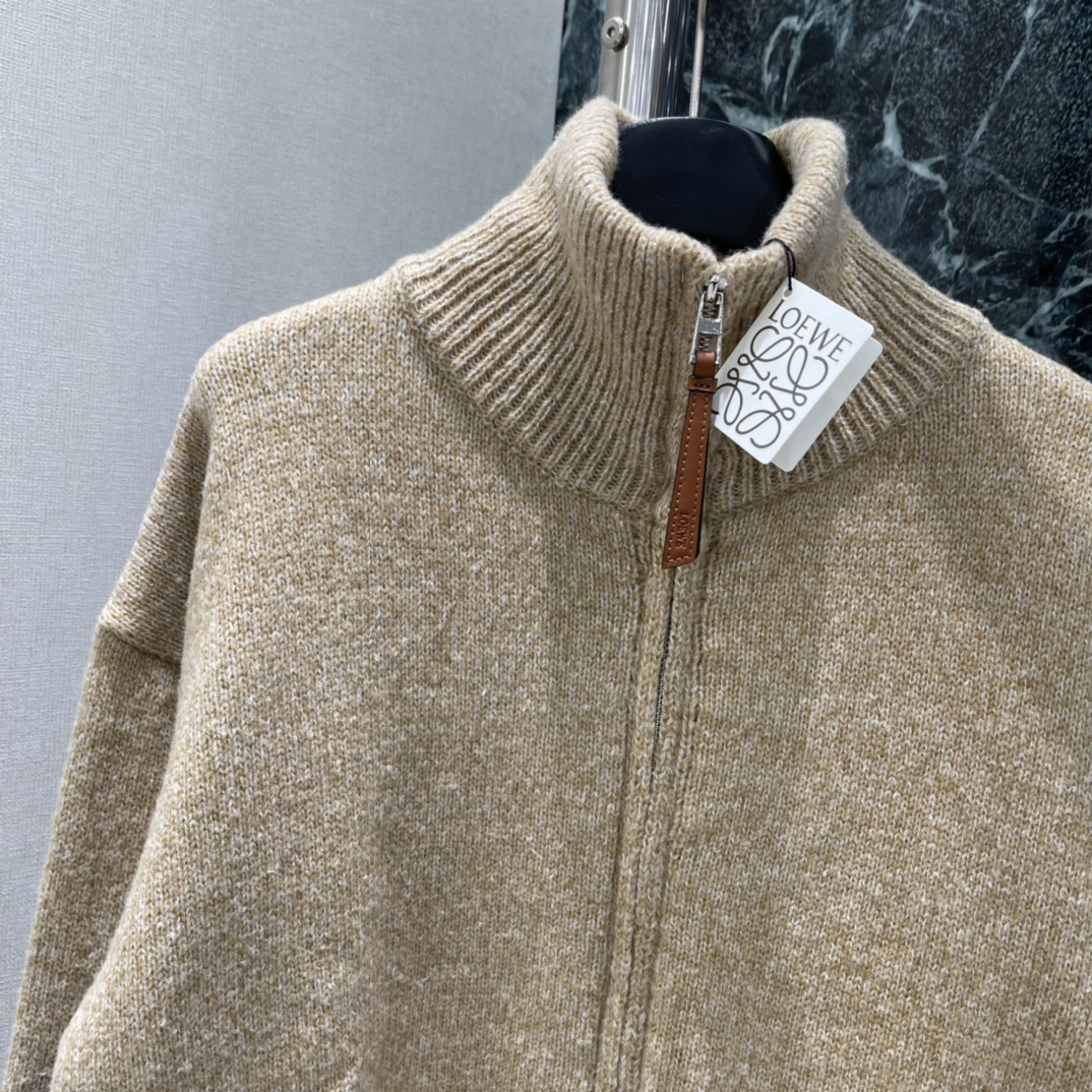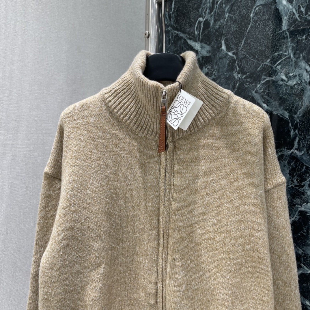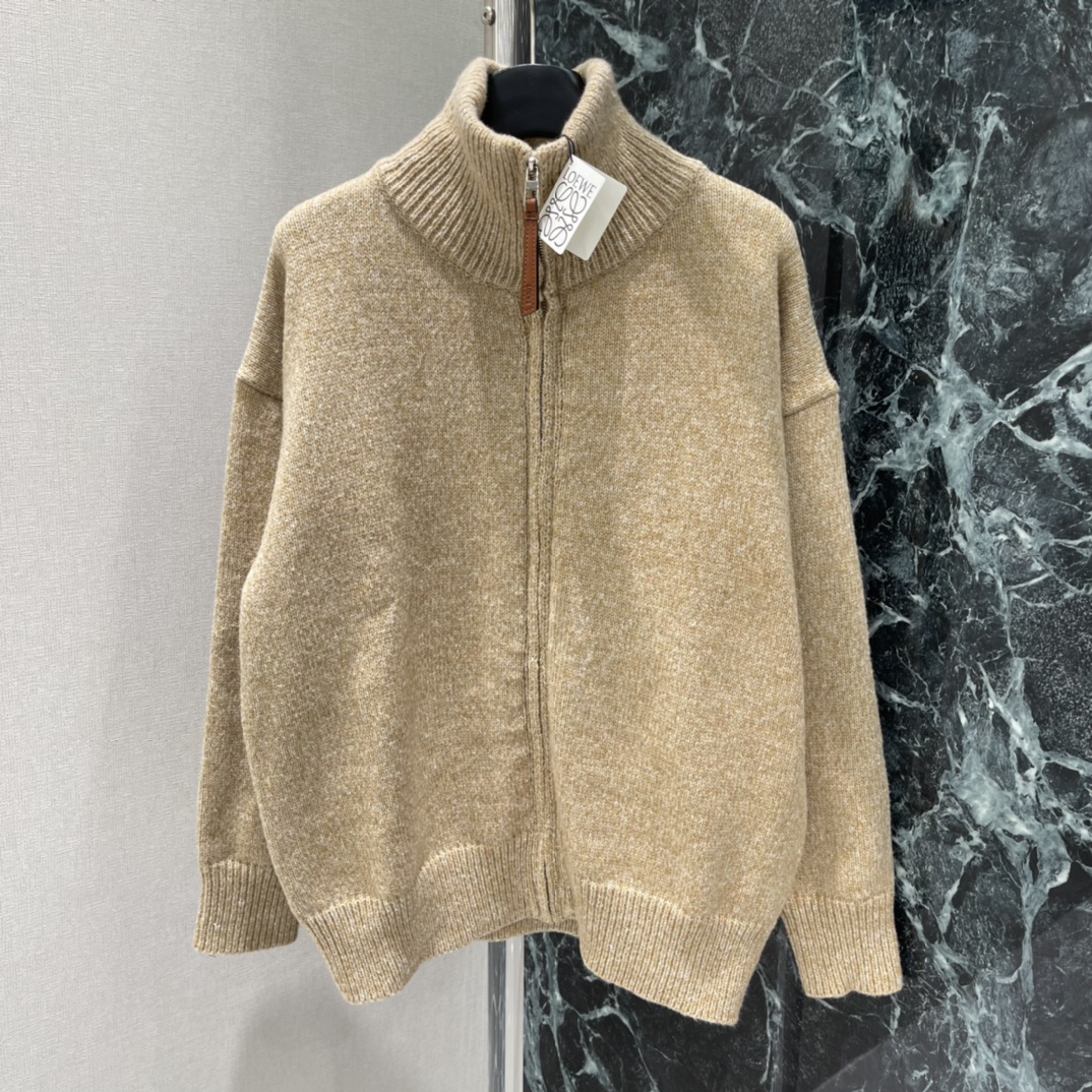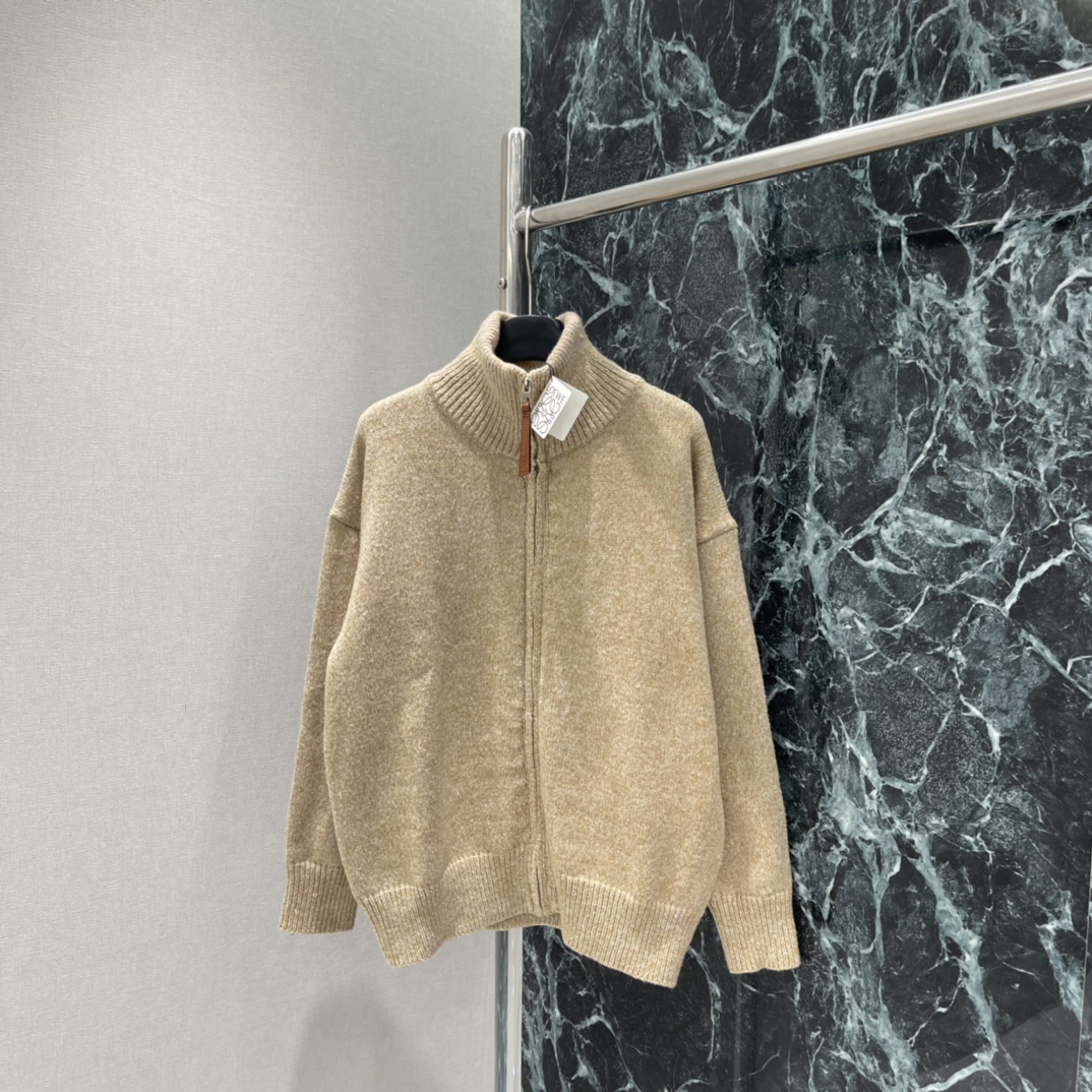 Details: Spring knitted zip-up cardigan in light brown with blue L on back, creates casual vibe. High - end customization, fine workmanship