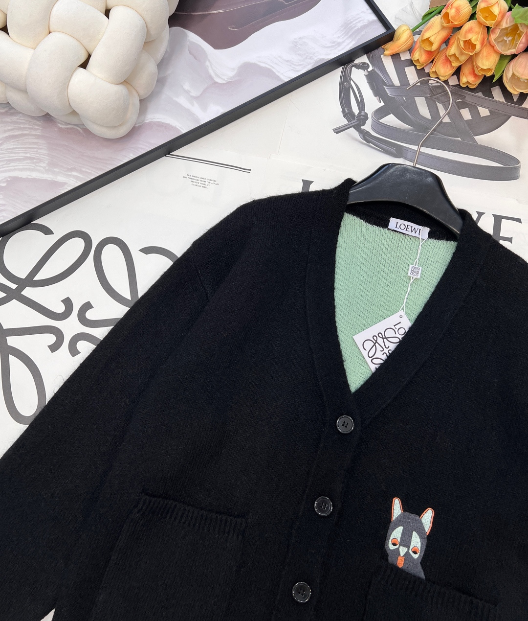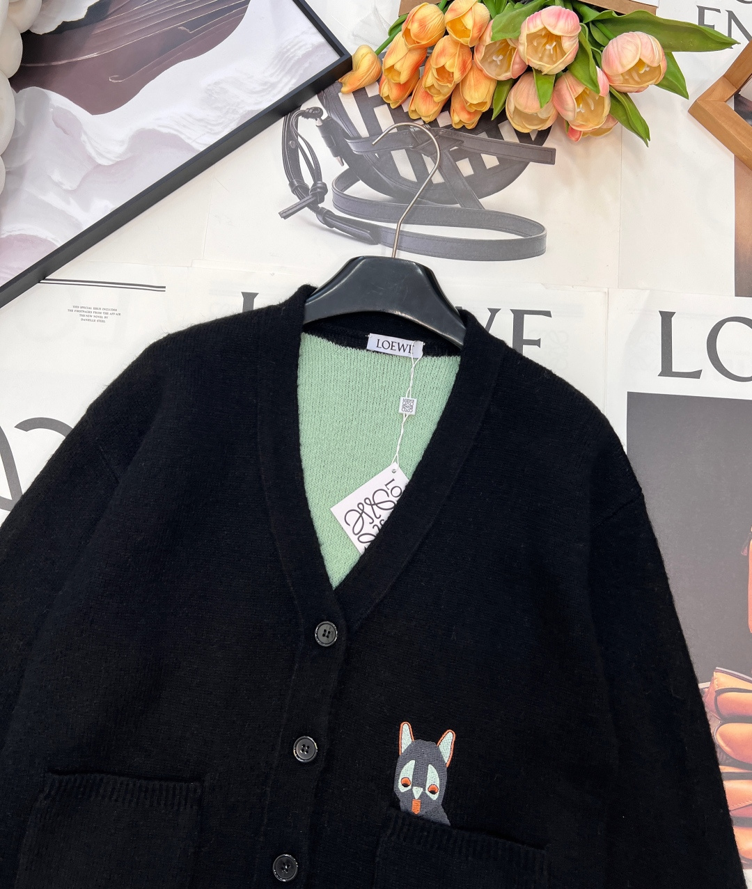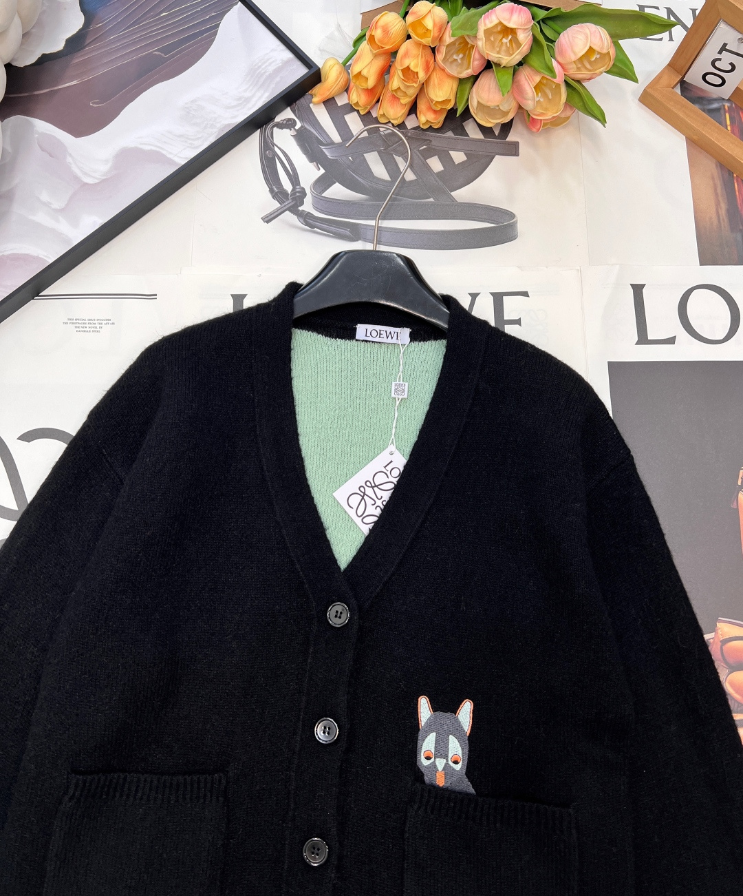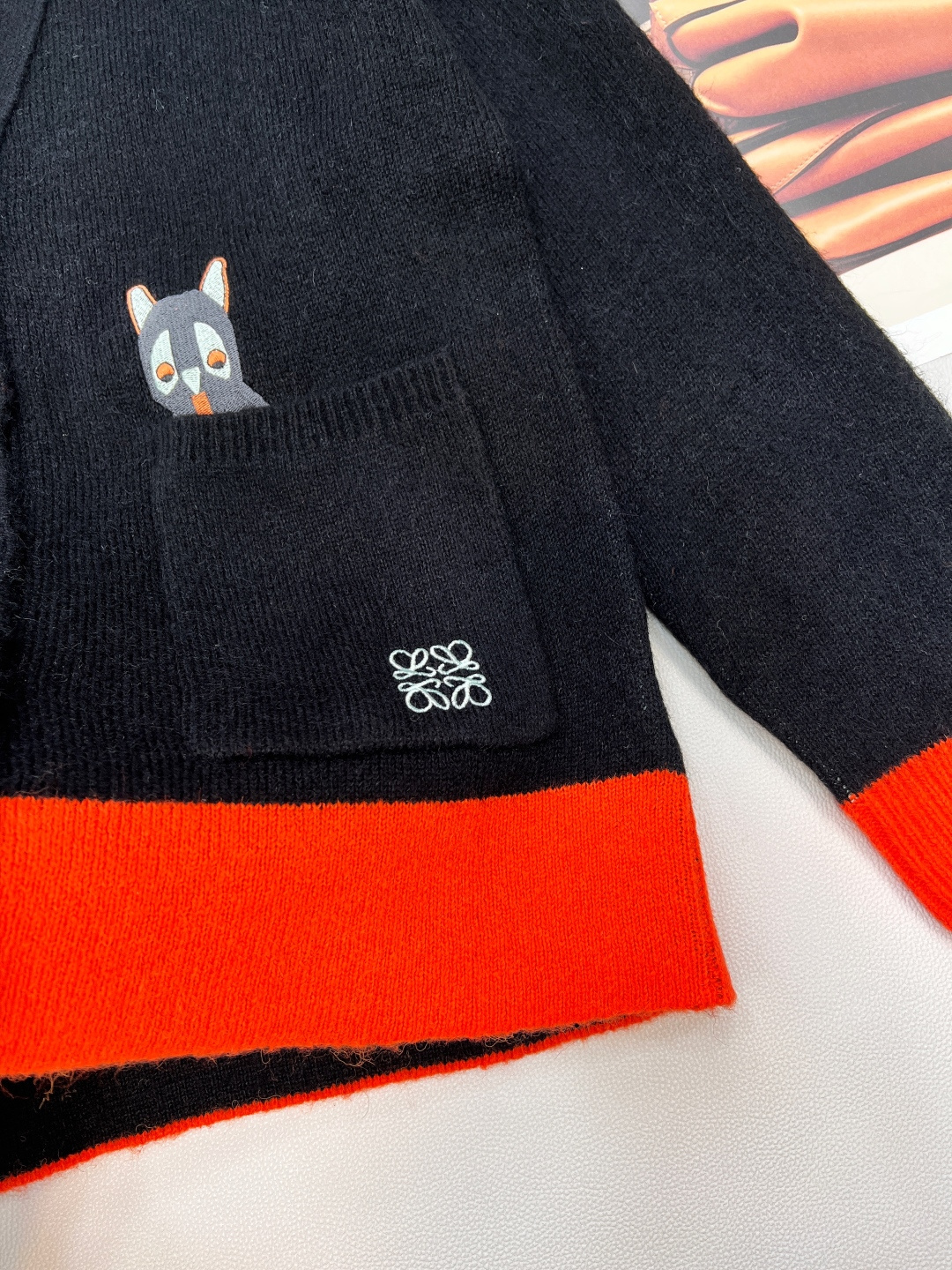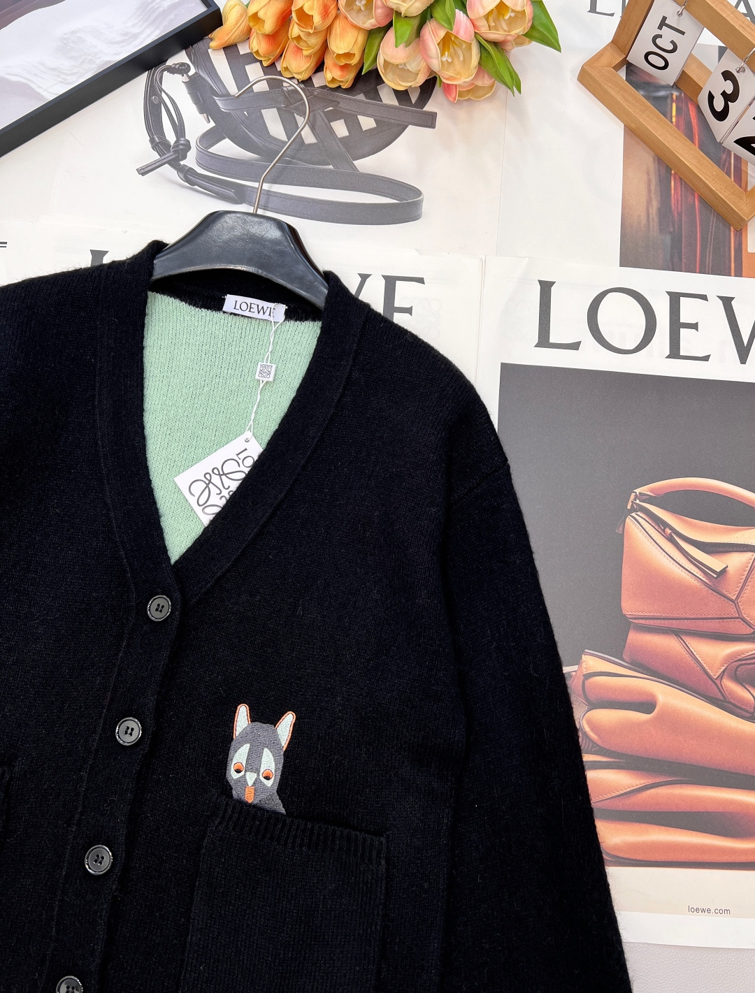 Details: New V-Neck Knitted Coat with Cat Embroidery, Custom Wool Blend, Casual and Comfortable Style, High-Quality Customization, Meticulous Workmanship