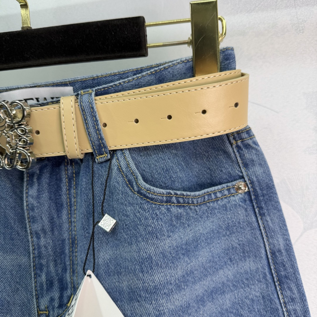 here:home > WOMENS > Loewe > Denim Loewe (W) > Loewe Slimming Denim Shorts with Embroidered Logo and Belt