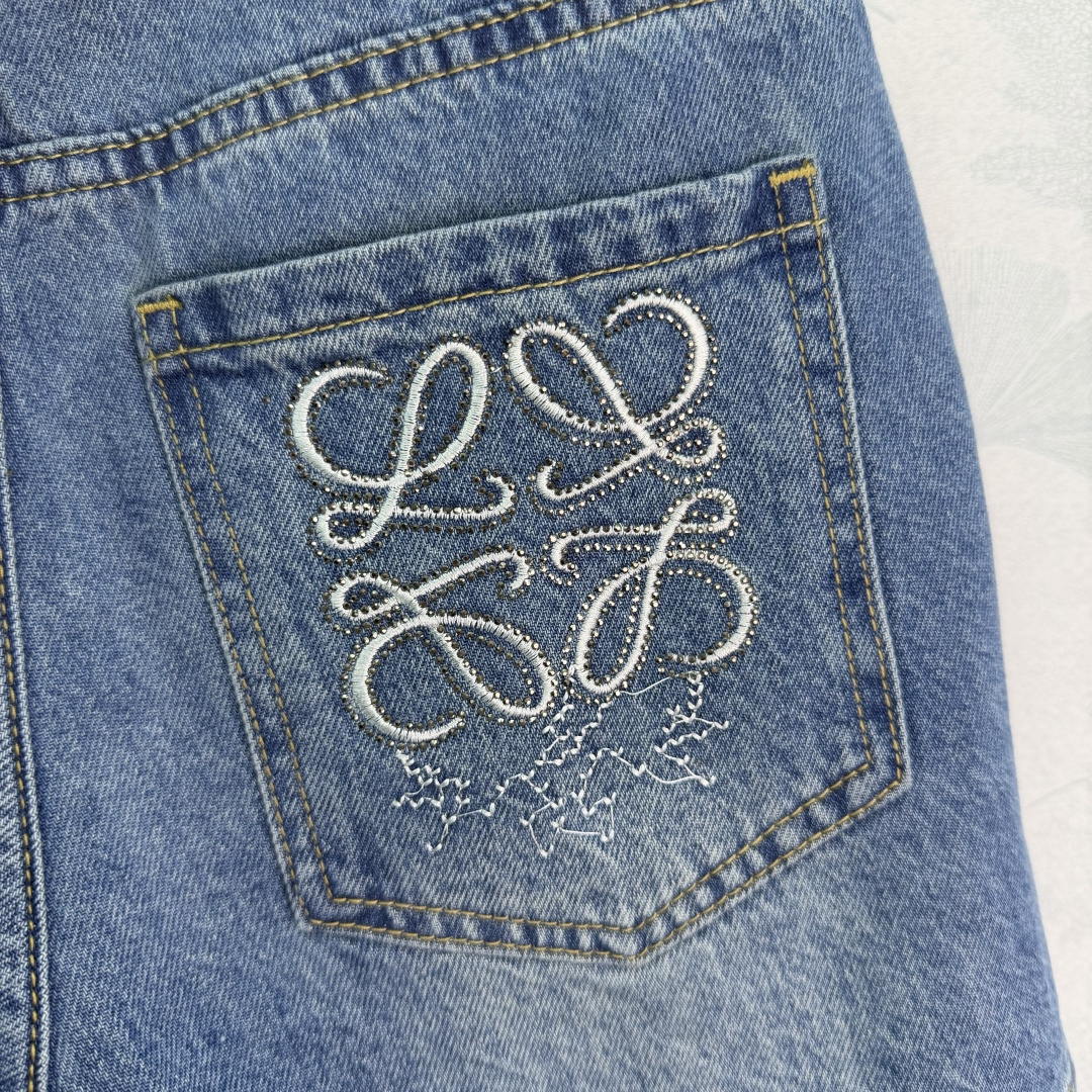 Loewe Slimming Denim Shorts with Embroidered Logo and Belt