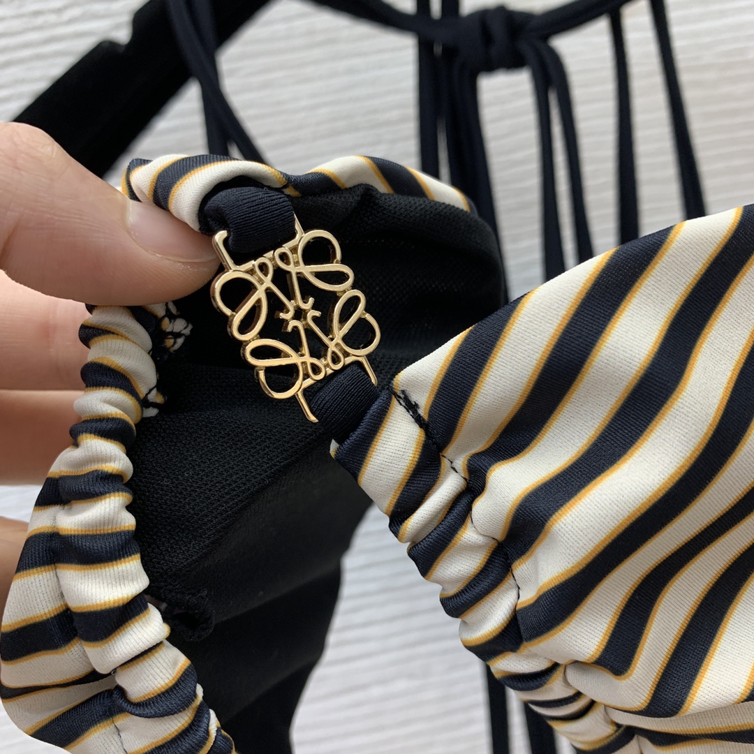 Details: New Sexy Striped Bikini Set with Original Logo Hardware, Suitable for Beach and Pool, High-end Customization, Fine Workmanship, Original Quality