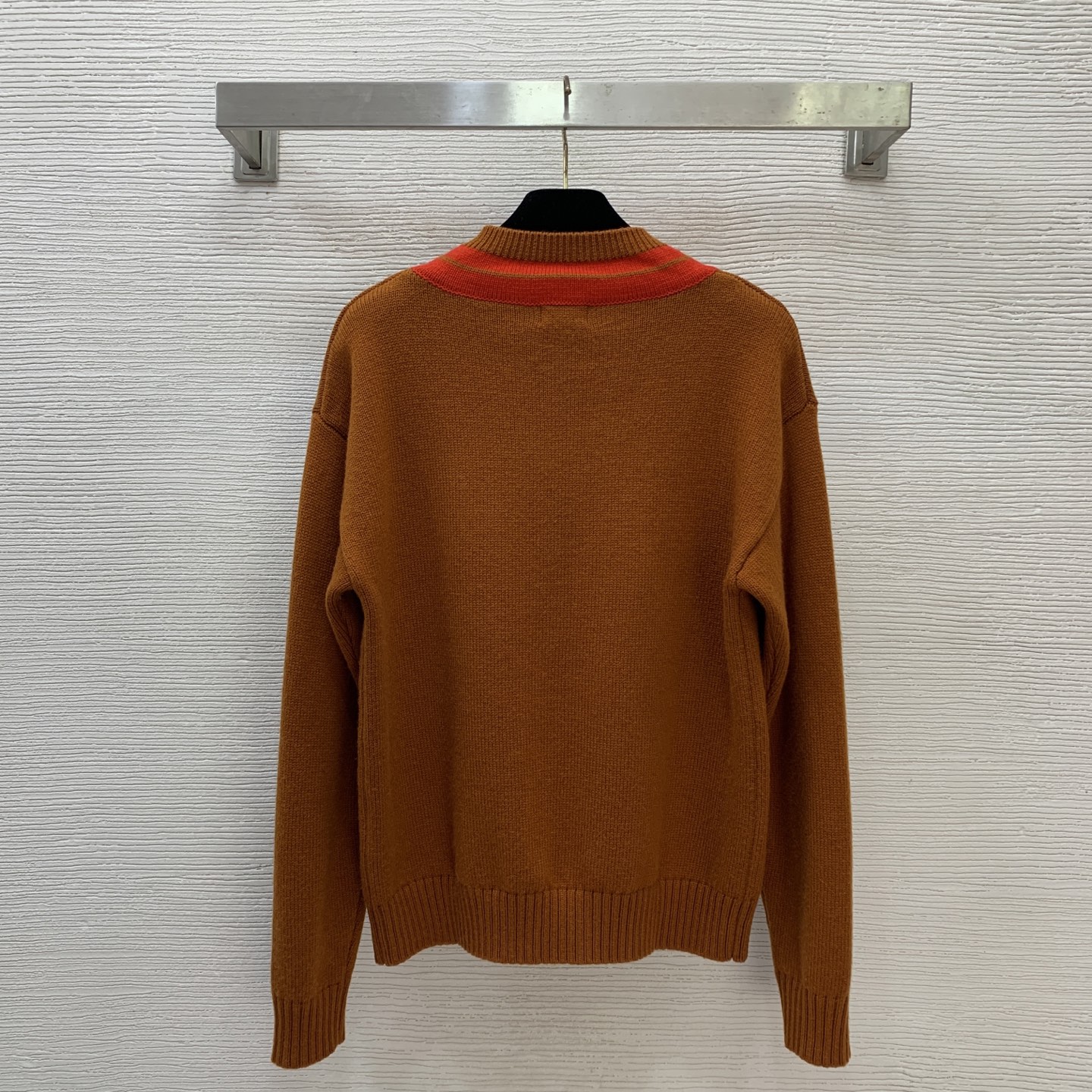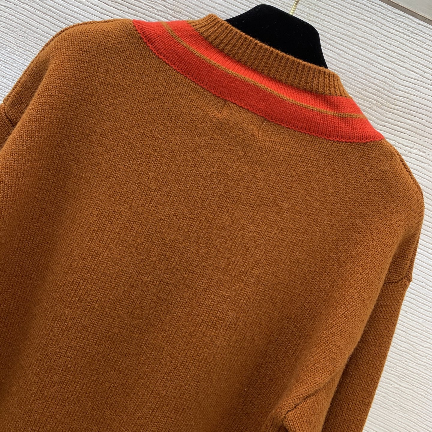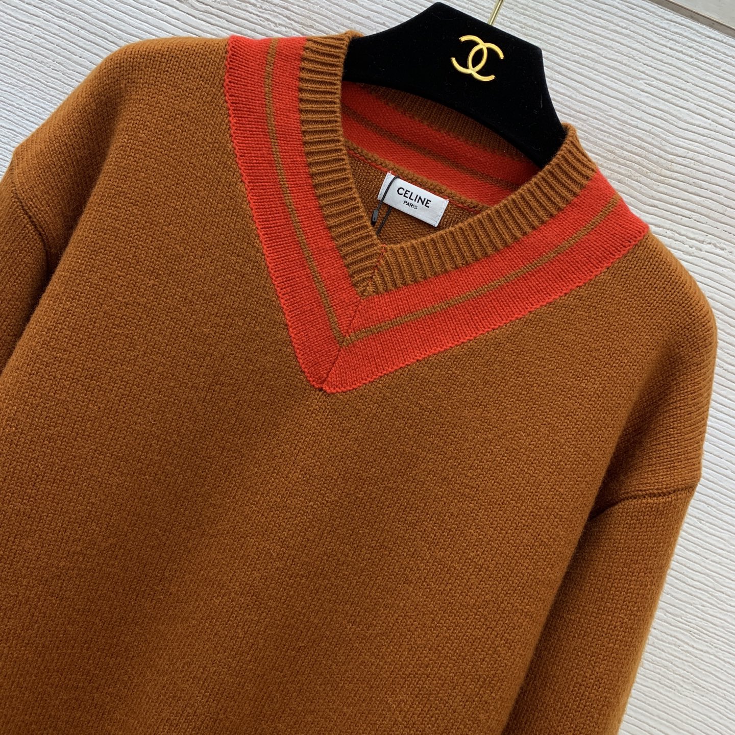 Details: New wool V - neck knitted sweater with color - blocked stripes, high - end custom