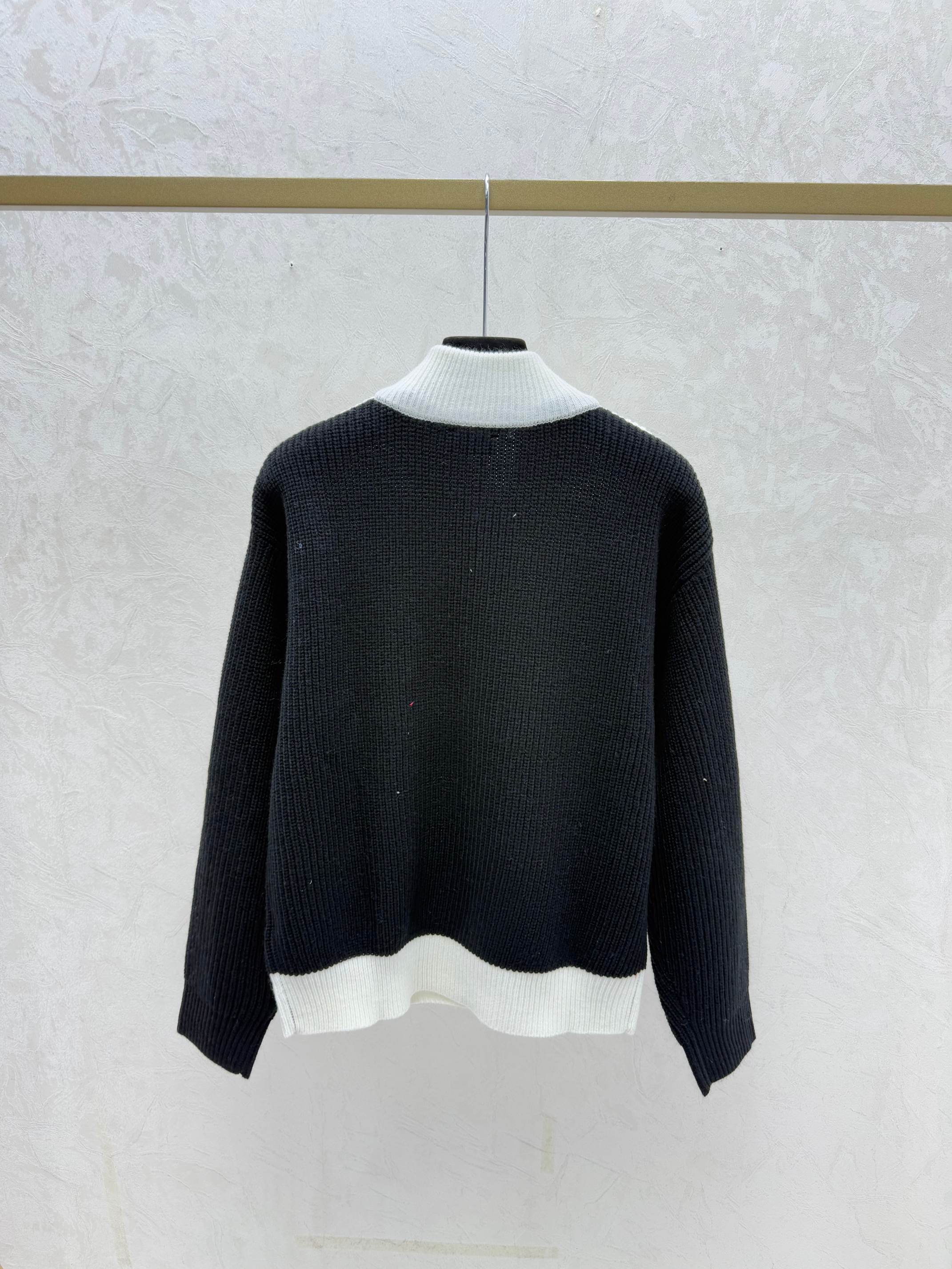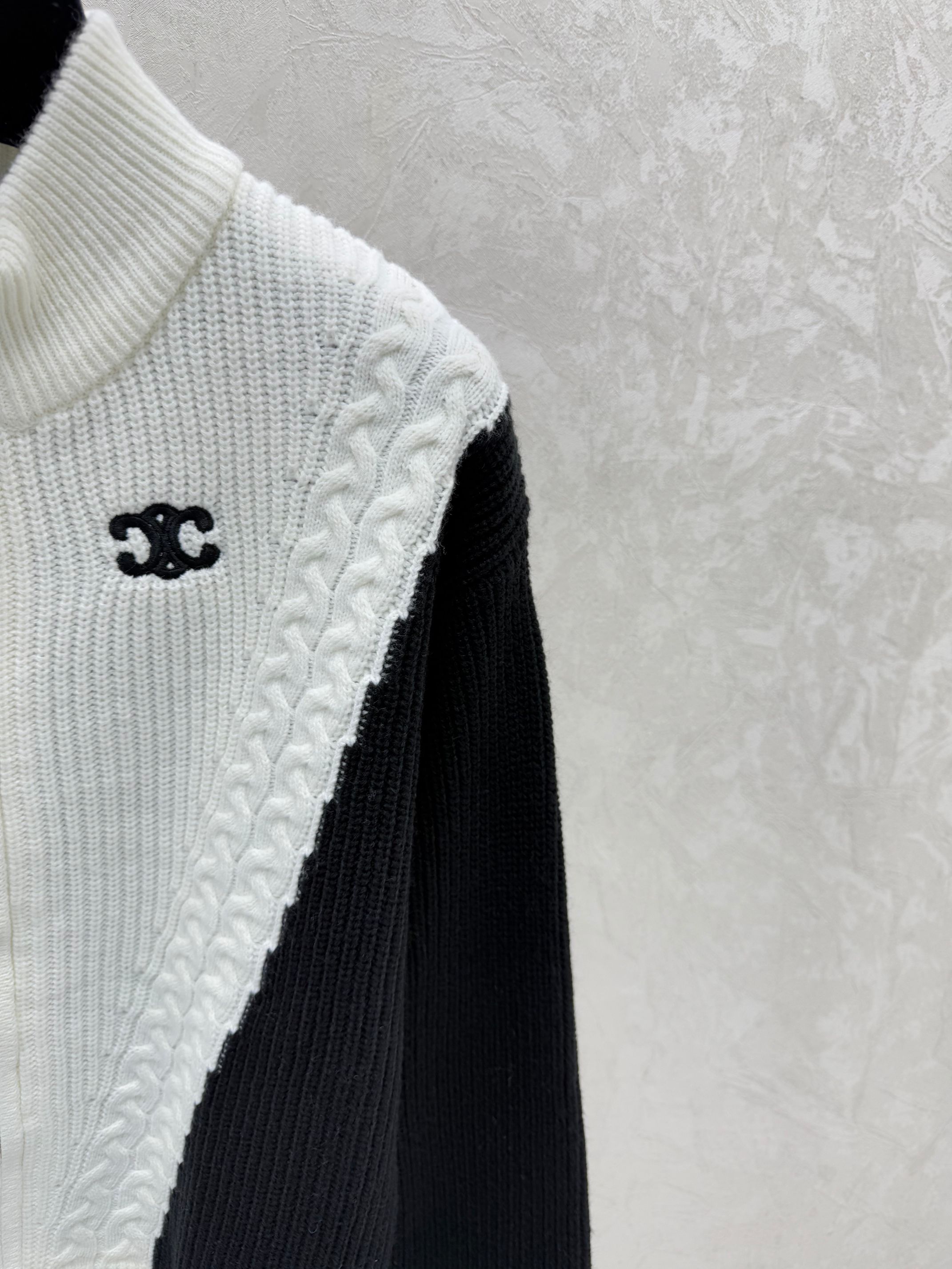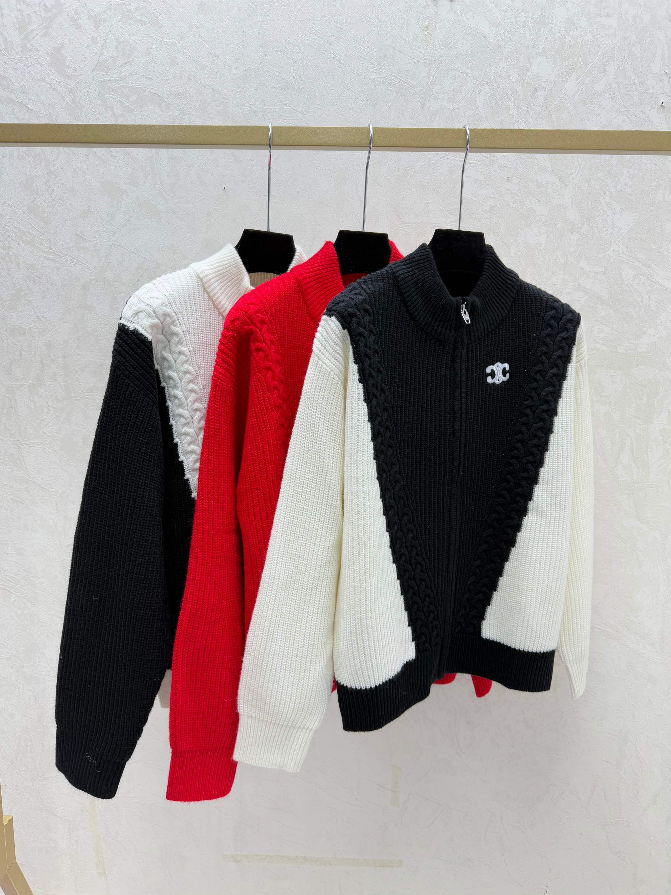 Details: Early autumn new style, color-blocked turtleneck knitted long-sleeved cardigan, colors: white, red, black, sizes: 36, 38, 40.