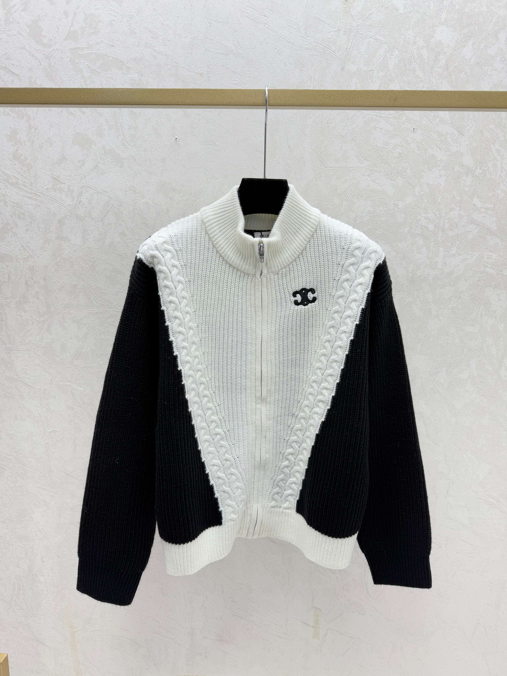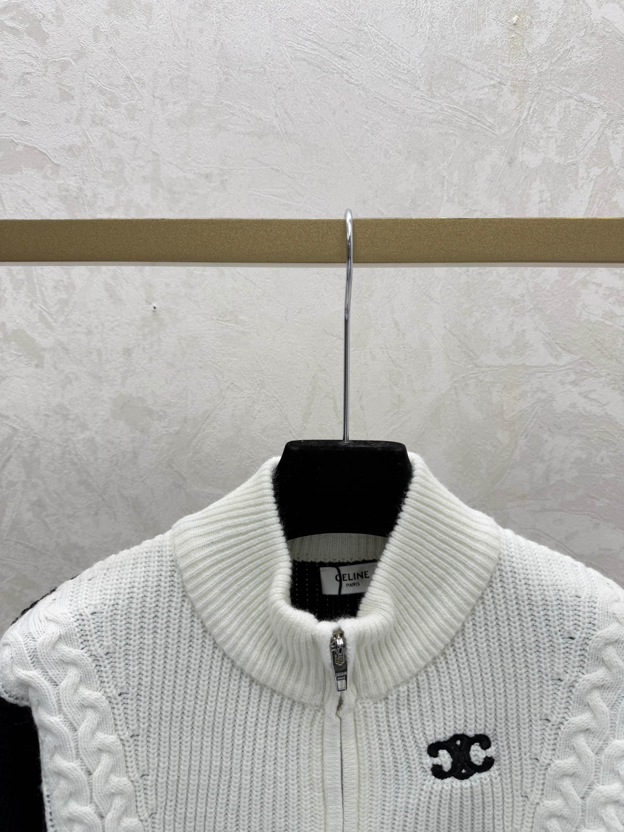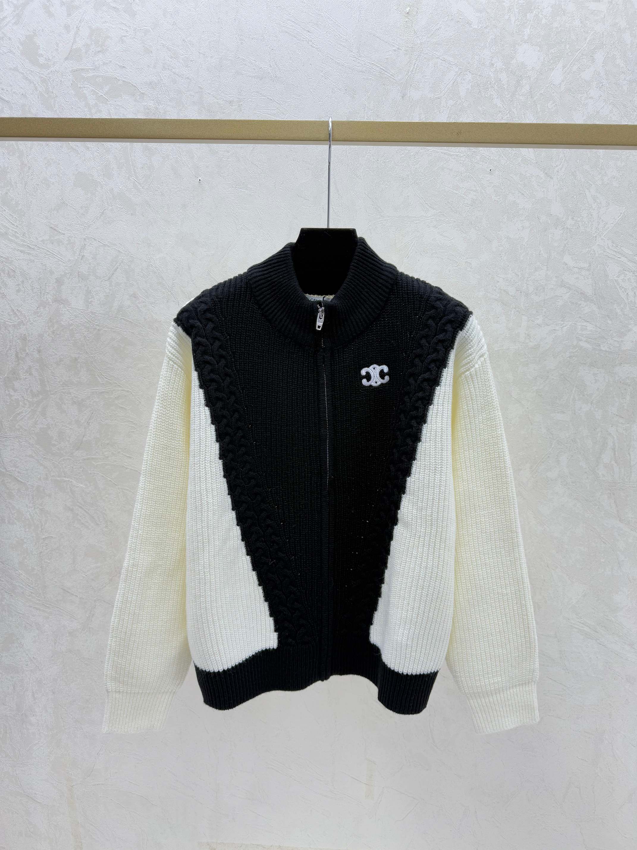 Details: Early autumn new style, color-blocked turtleneck knitted long-sleeved cardigan, colors: white, red, black, sizes: 36, 38, 40.