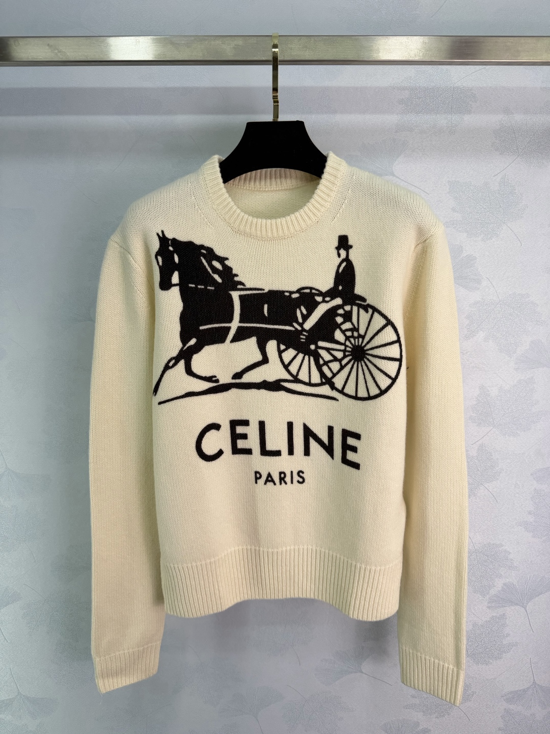 Details: Early spring cashmere wool sweater with black carriage logo, classic intarsia, suitable for various occasions.