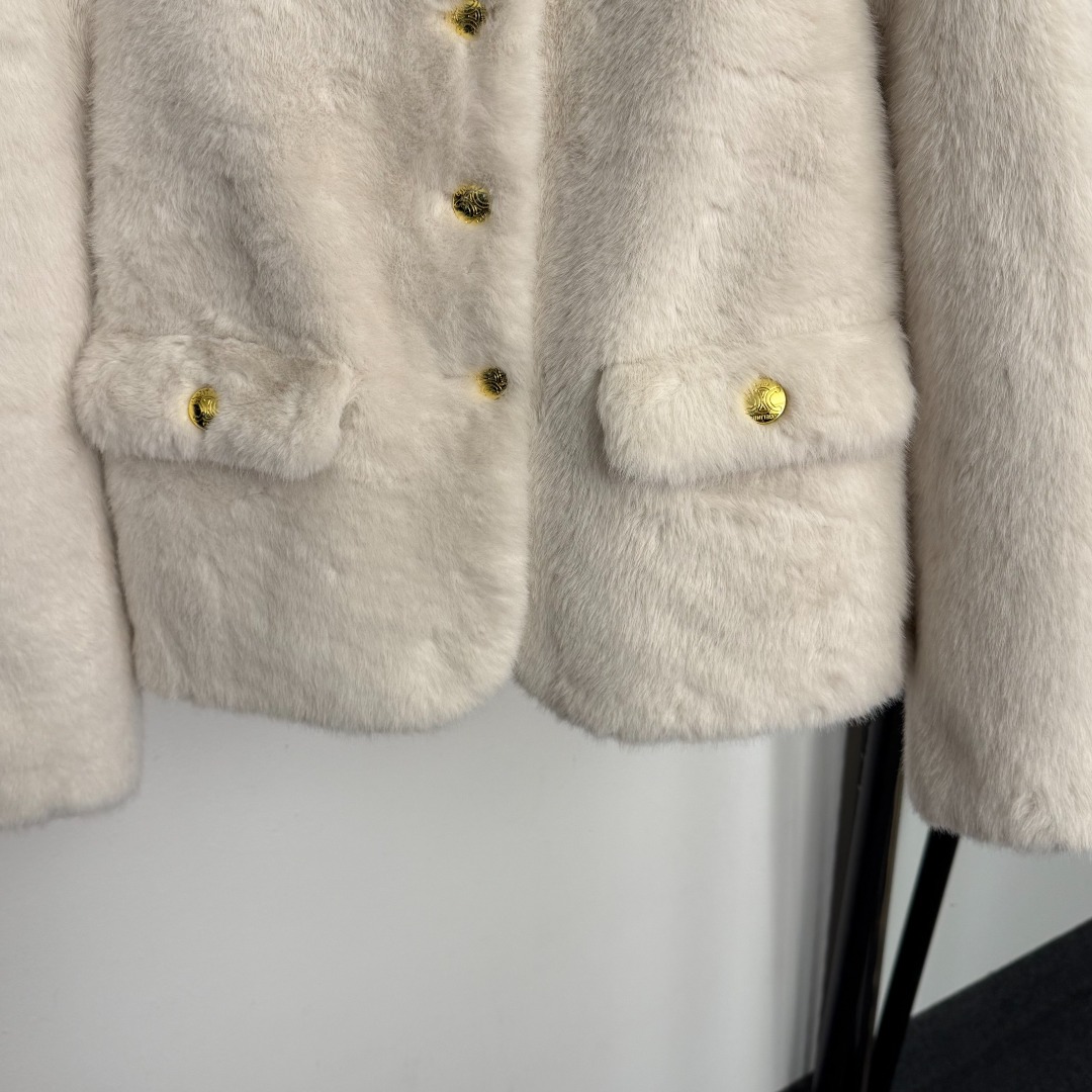 Details: New faux fox fur long-sleeved coat in beige and dark brown, one-size-fits-all.