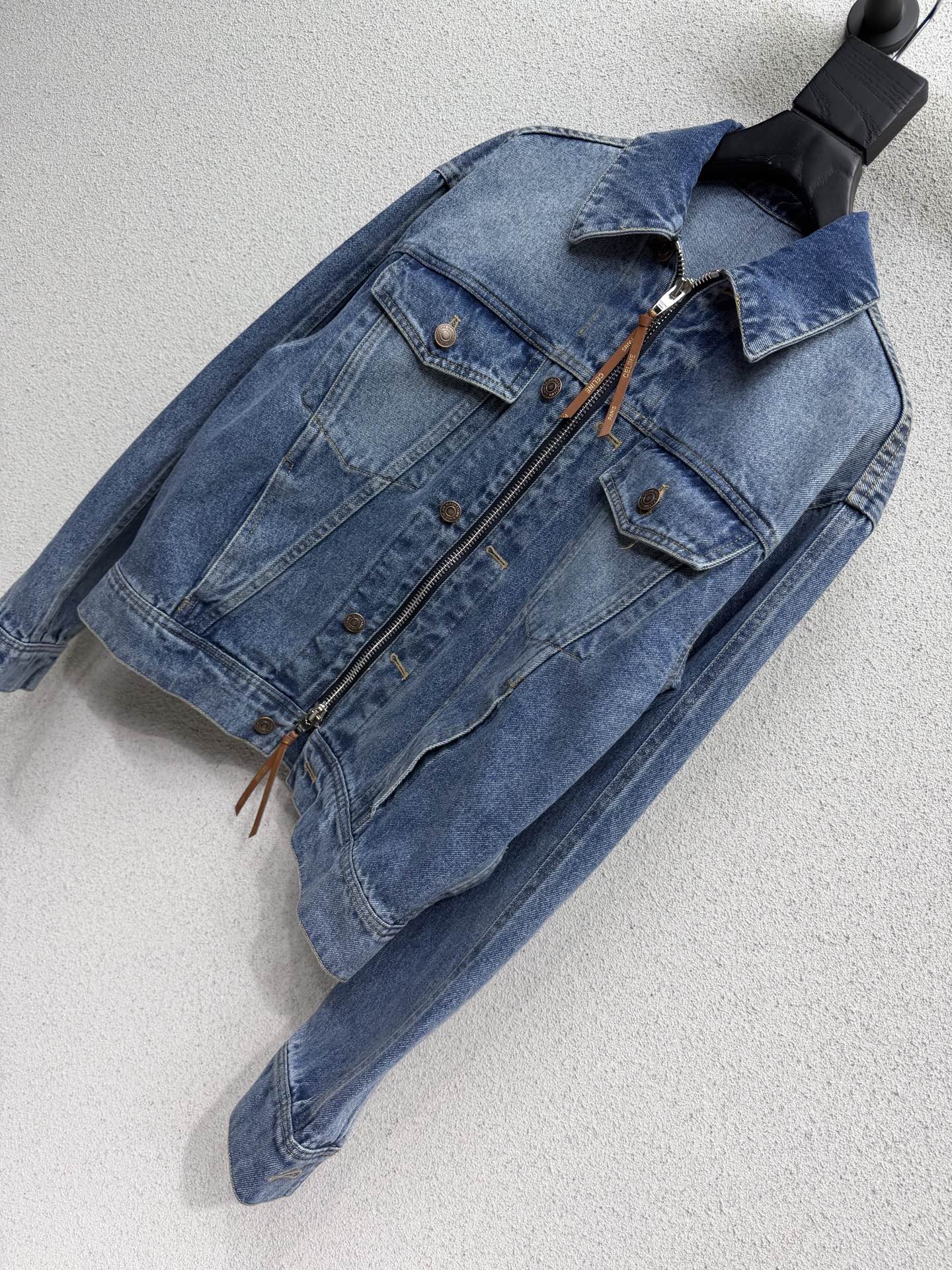 Details: Zippered denim jacket and jeans set, youthful and stylish, made from custom imported fabric, superior craftsmanship, high quality.