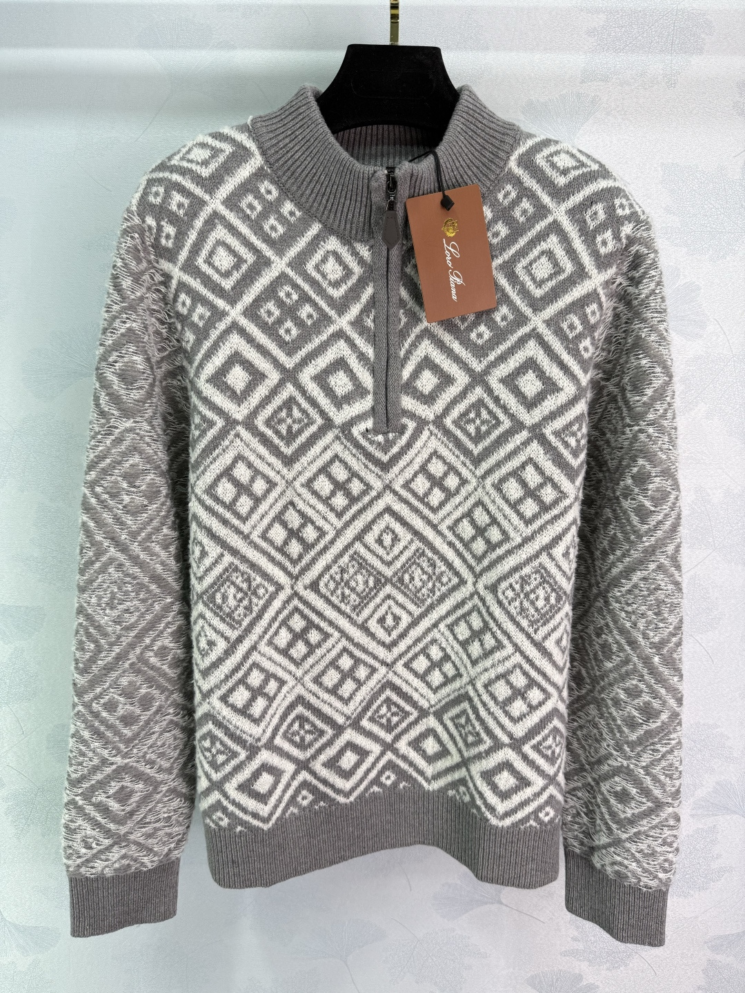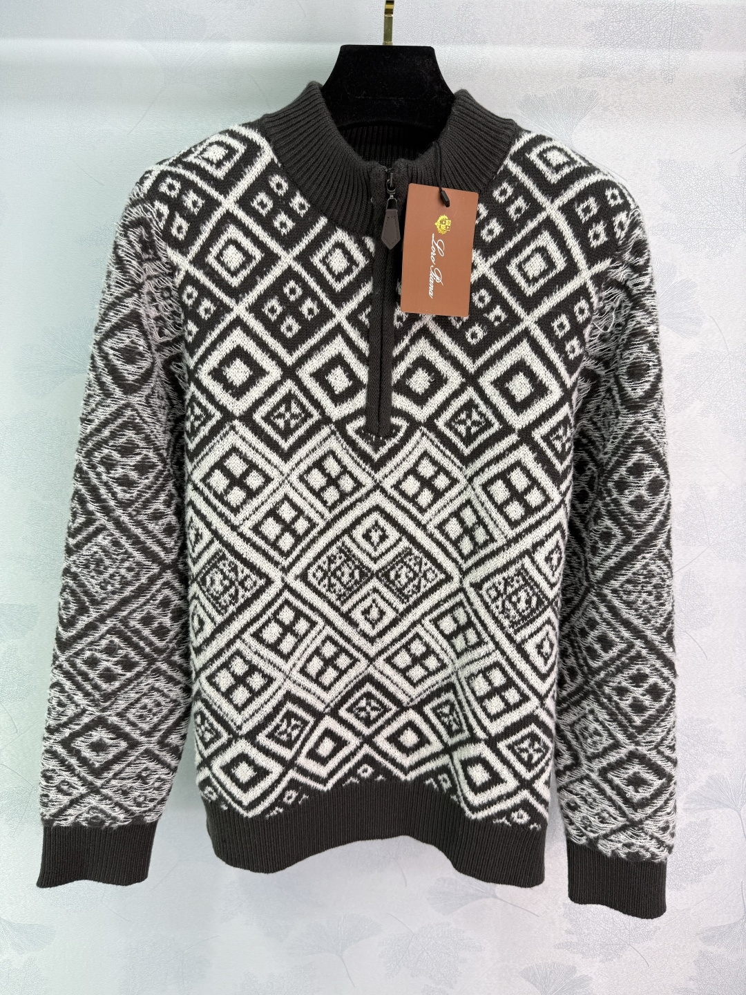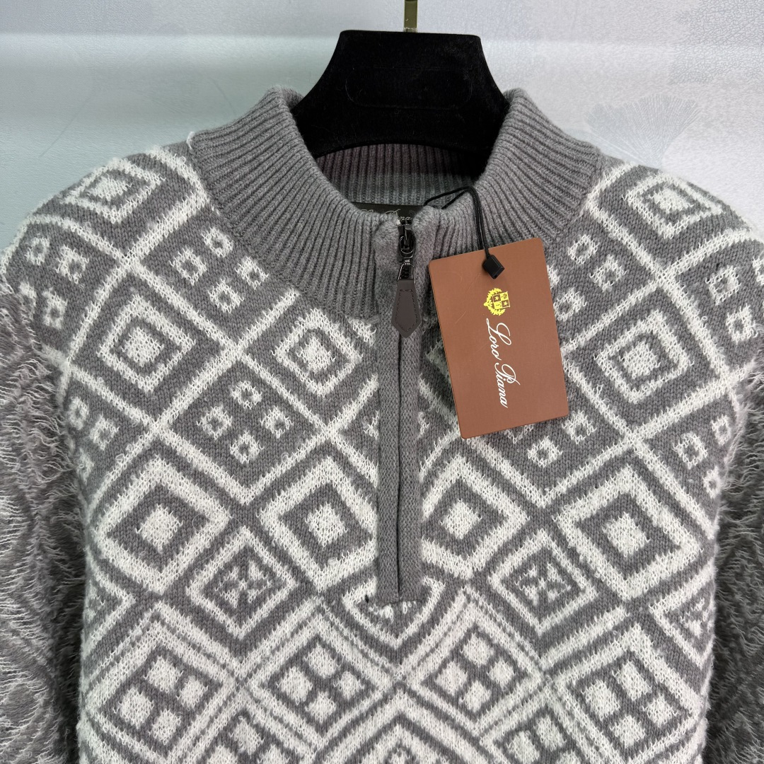 Details: Autumn & Winter Diamond Pattern Knit Top, Half-zipper Closure, Soft Fabric, Versatile Wear Option