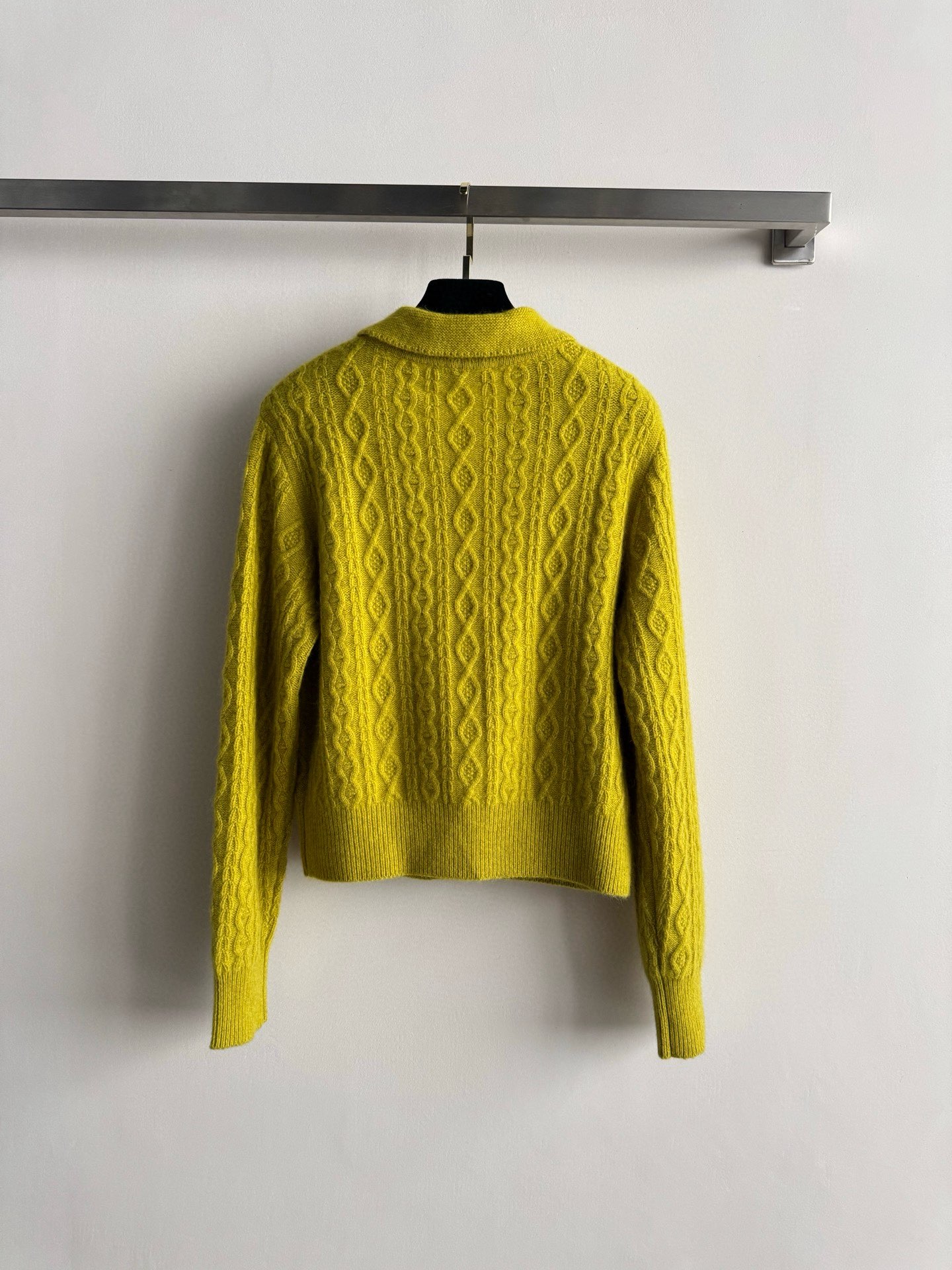 Details: Autumn-winter Polo Collar Cardigan with Cable Knit, Suitable for Layering