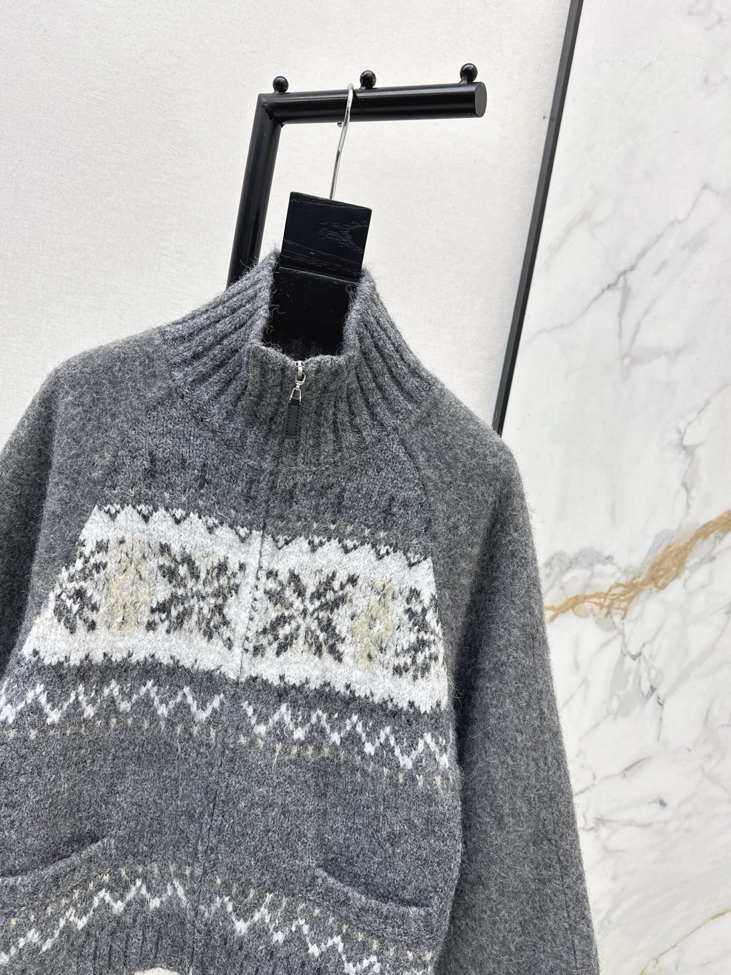 Details: Autumn - winter Fair Isle double - faced collar coat, hand - made, imported wool - alpaca fabric, H - shaped, stylish, high - end customization, fine workmanship