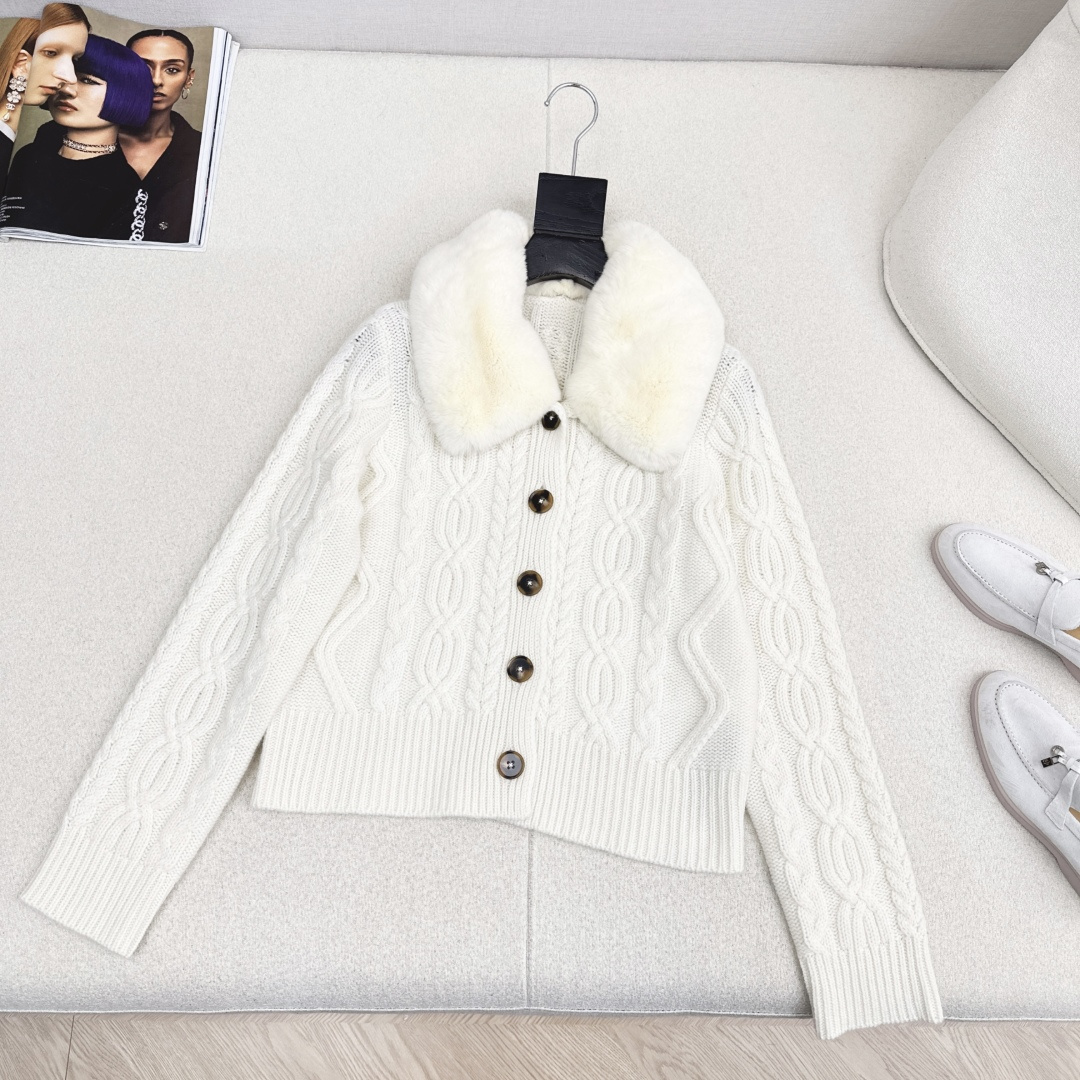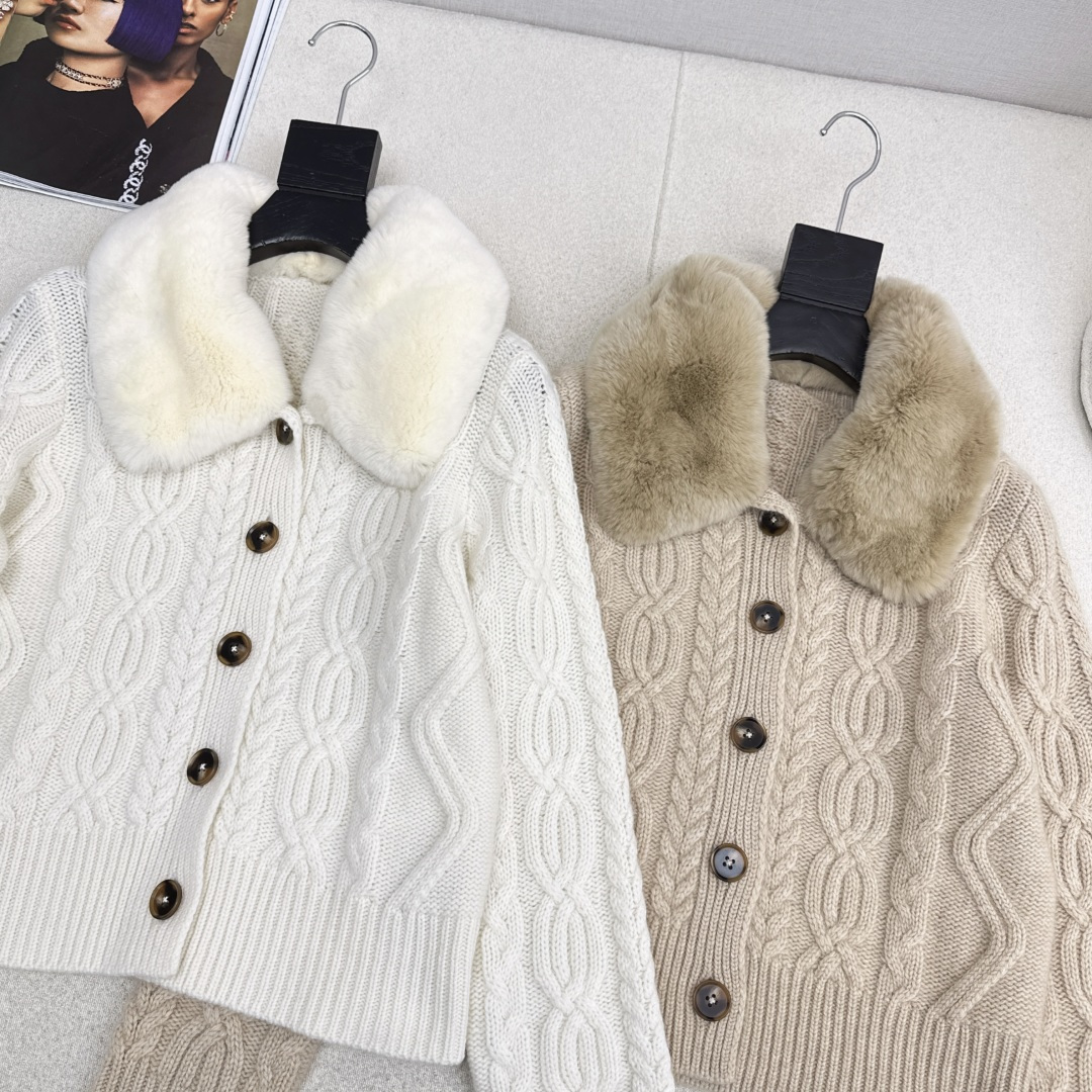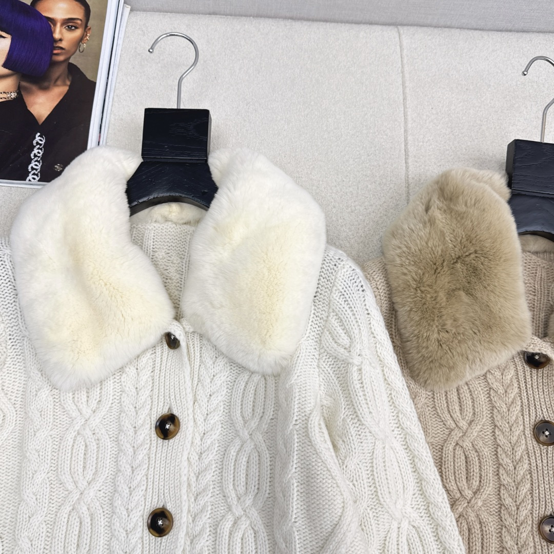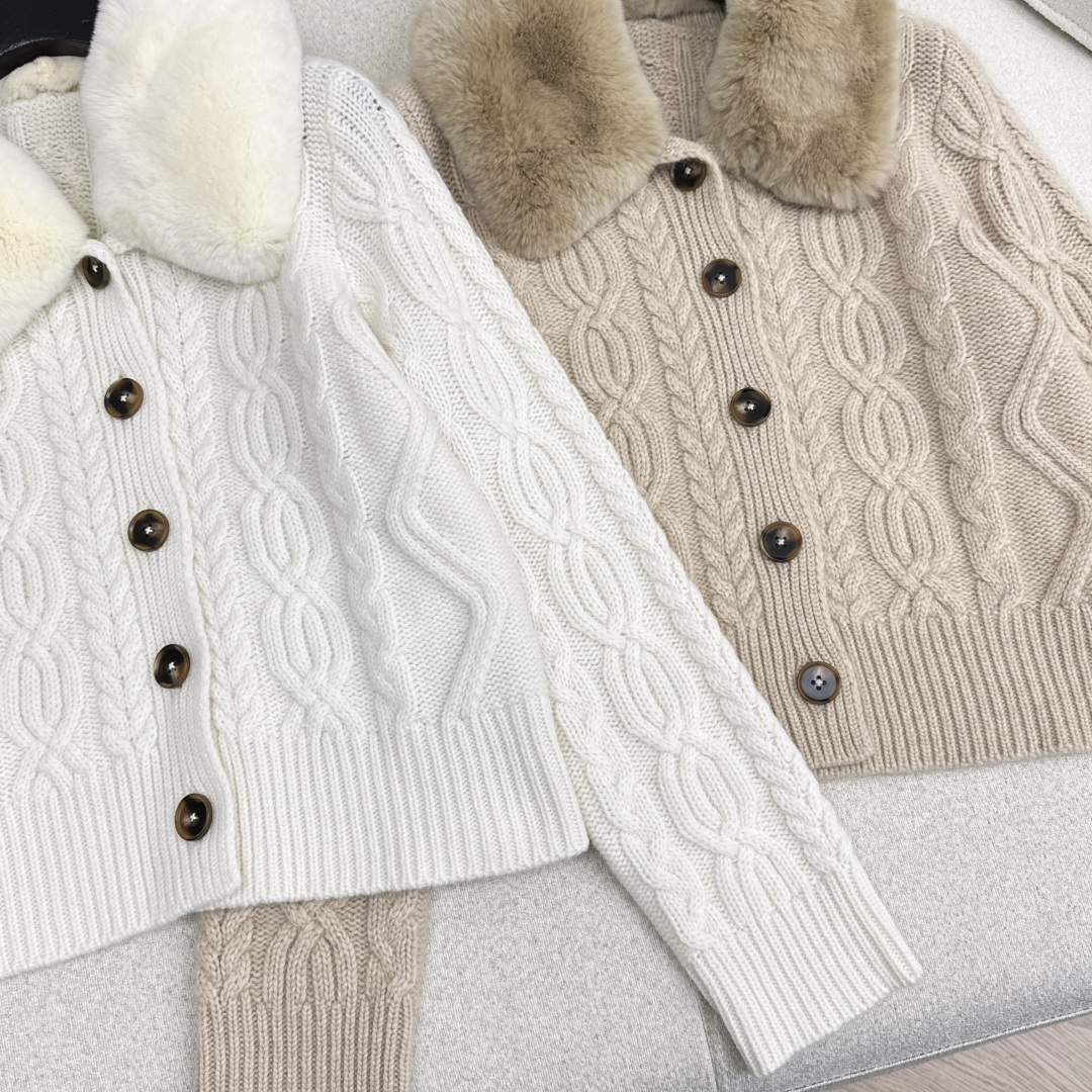 Details: Autumn and winter detachable fox fur collar cashmere cardigan, 100% cashmere, elegant and versatile, two colors available
