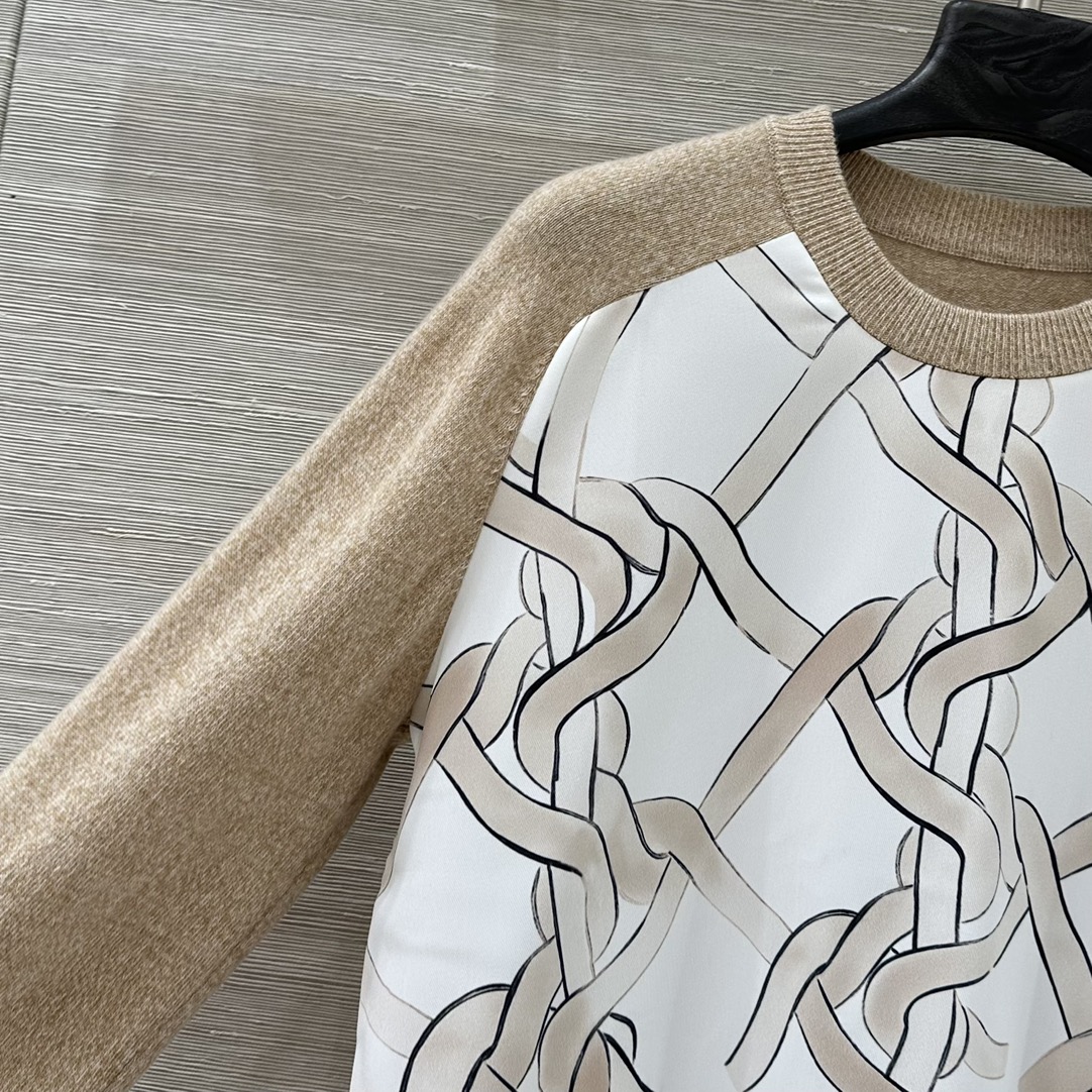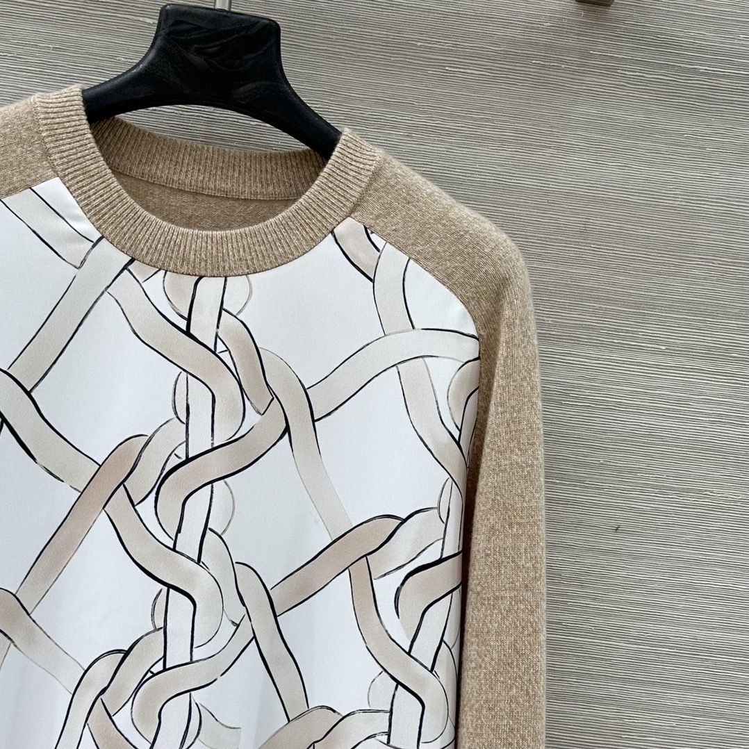 Details: Exclusive high-end cashmere knitted sweater with chain print, classic style, two color options. fine craftsmanship