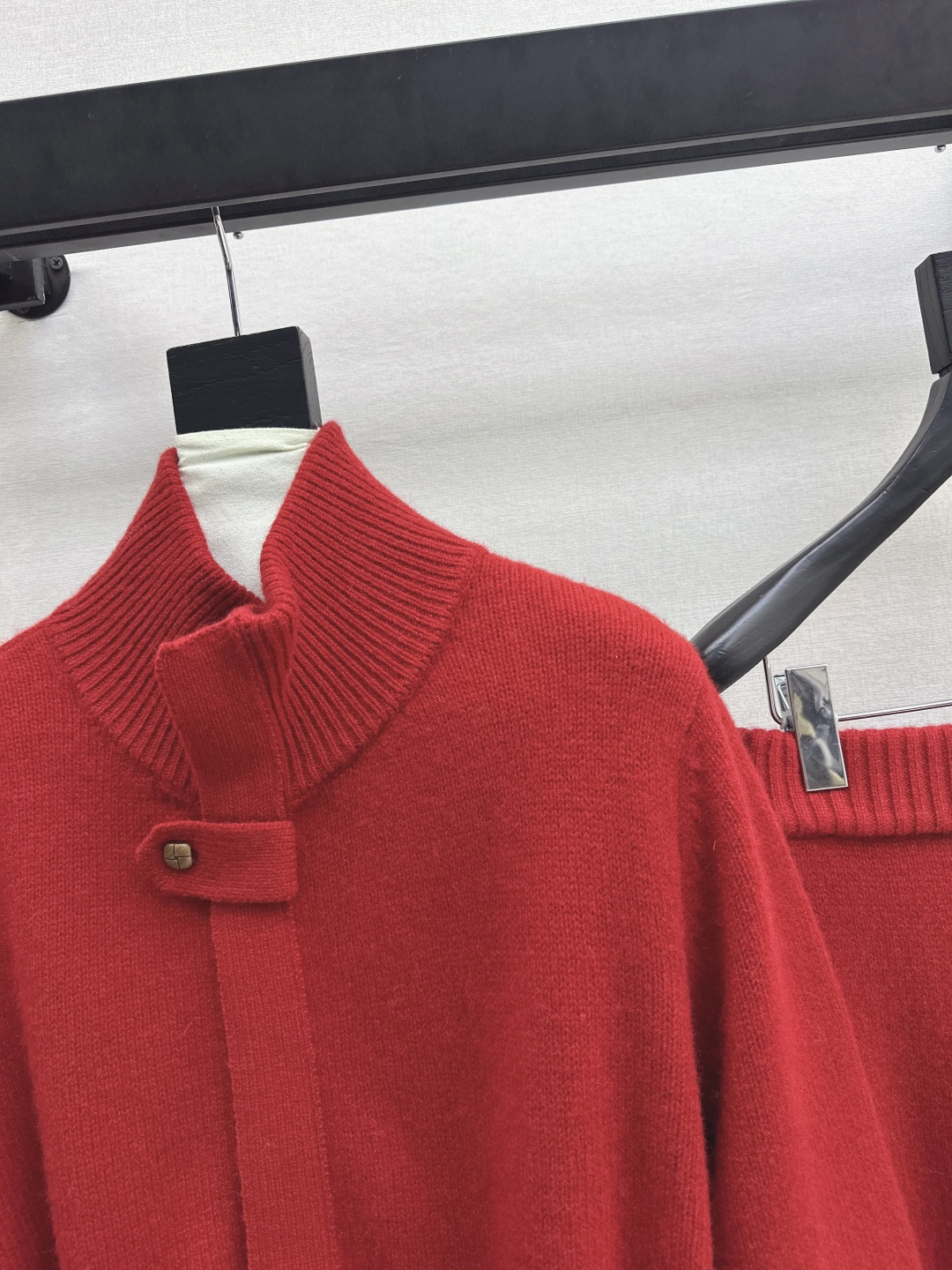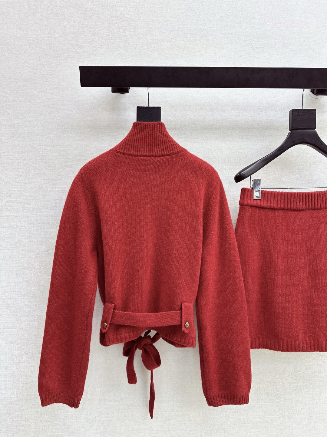 Details: Old-money style wool suit with high-neck zipper sweater and skirt, suitable for holidays, available in two colors in sizes S, M, L.