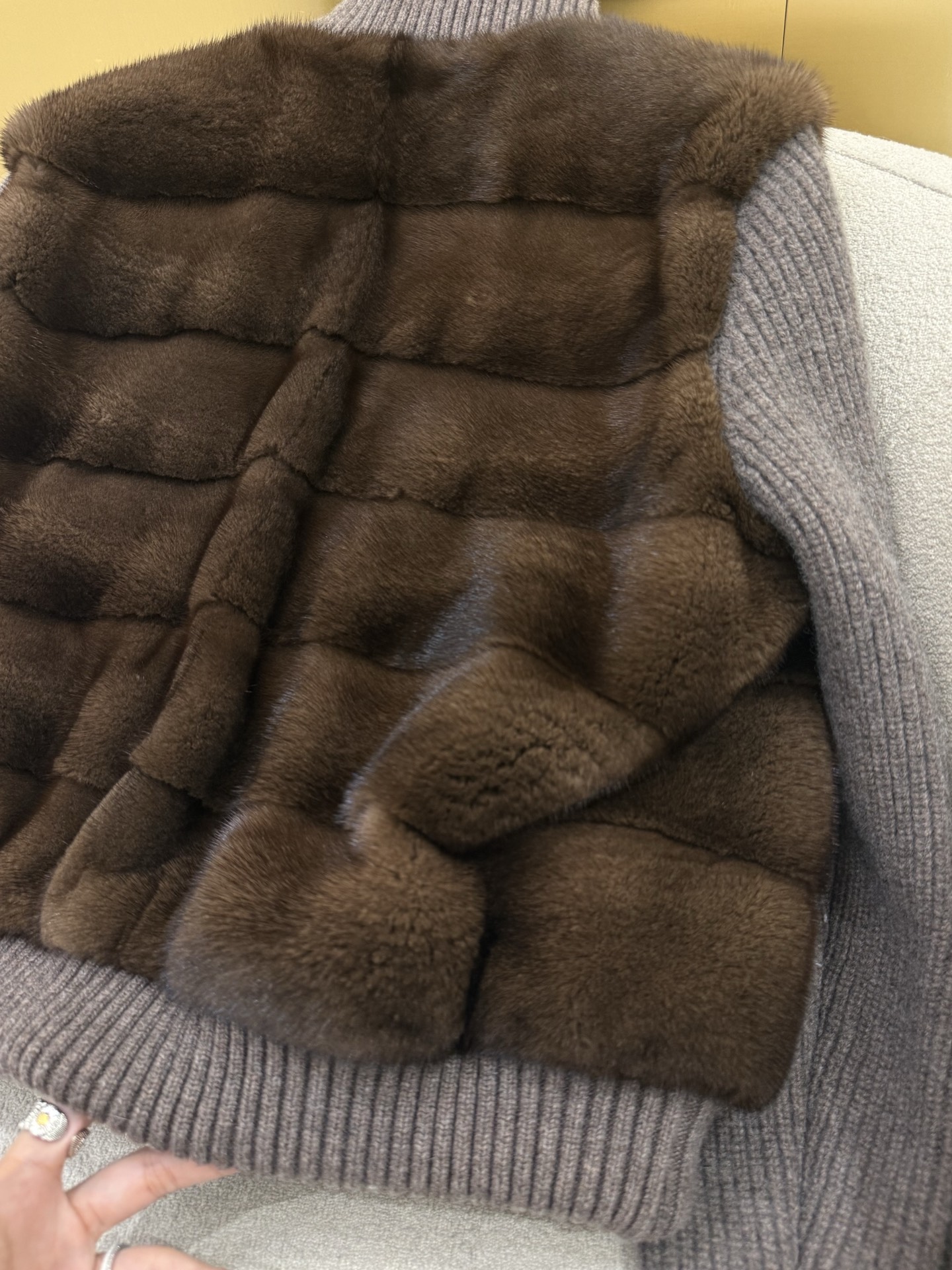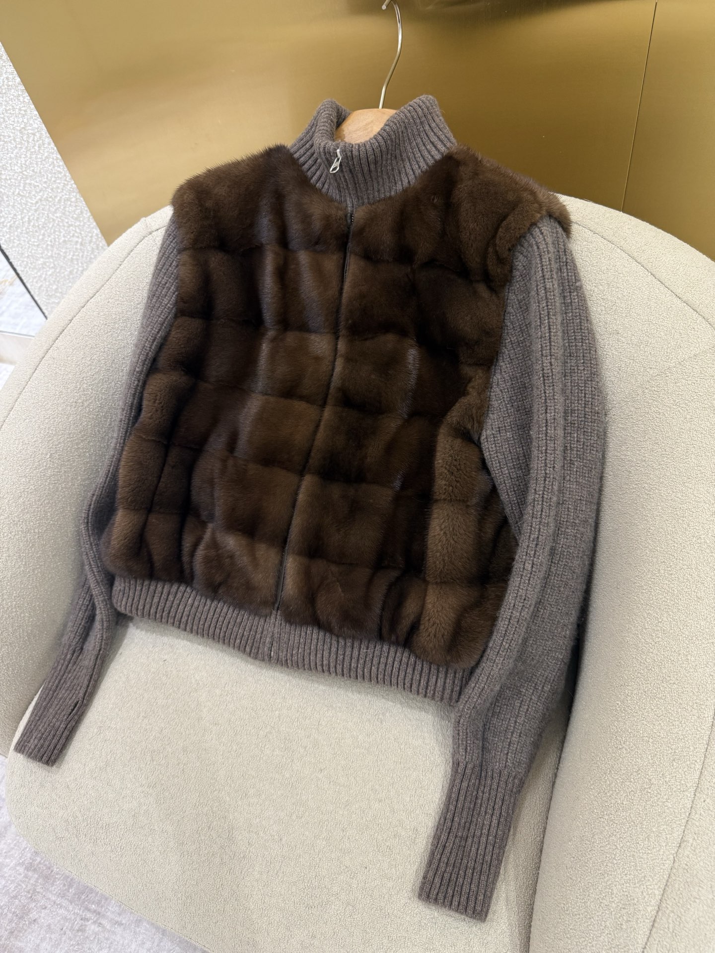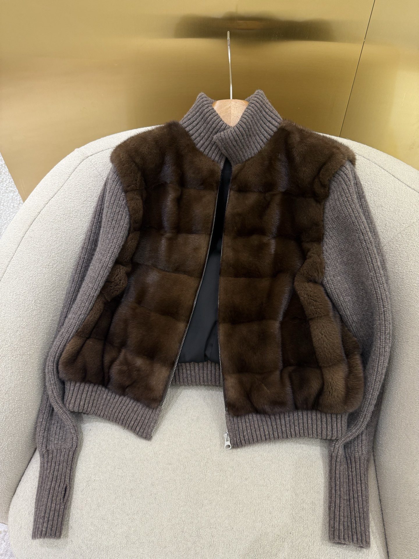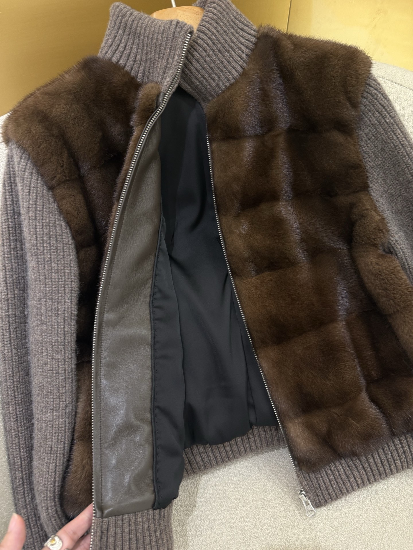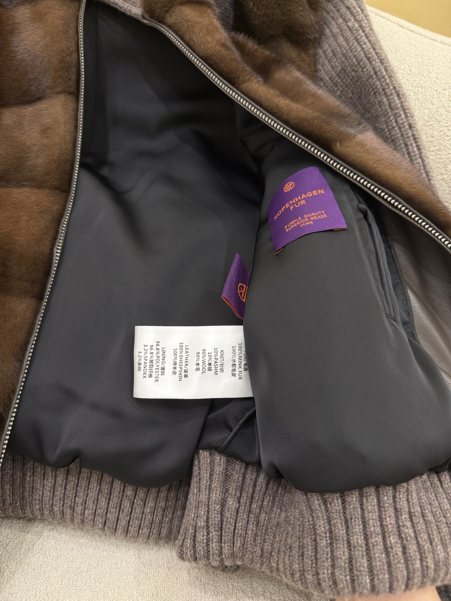 Details: A mix of 10% cashmere and 90% wool combined with Copenhagen mink and thick down. High - end customization, fine workmanship