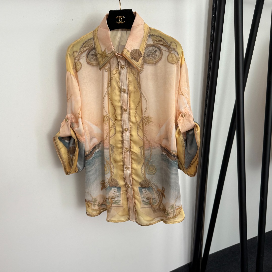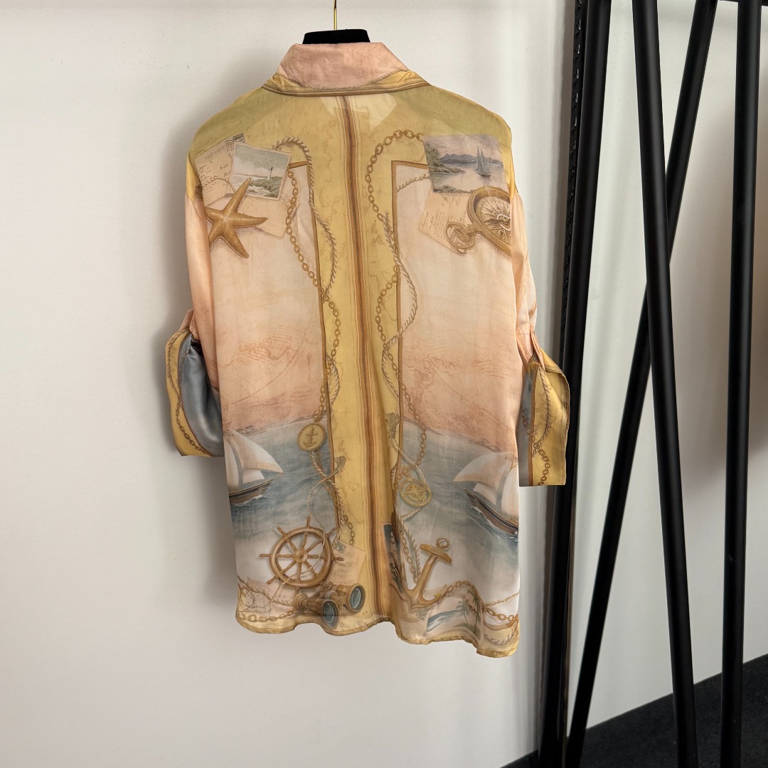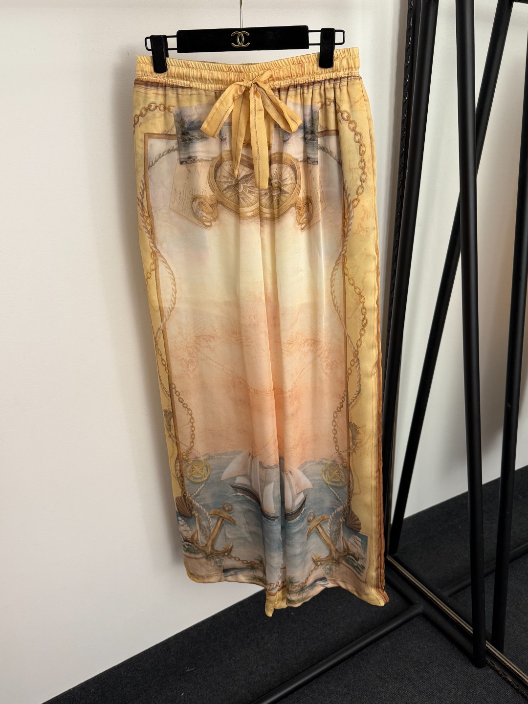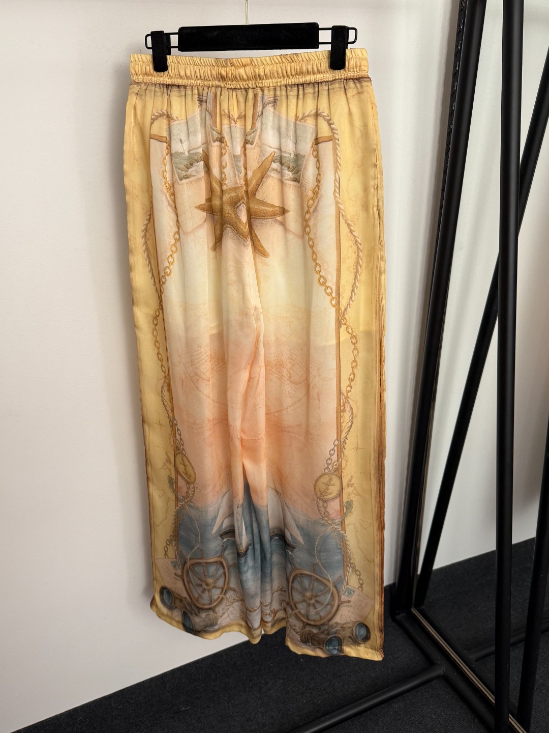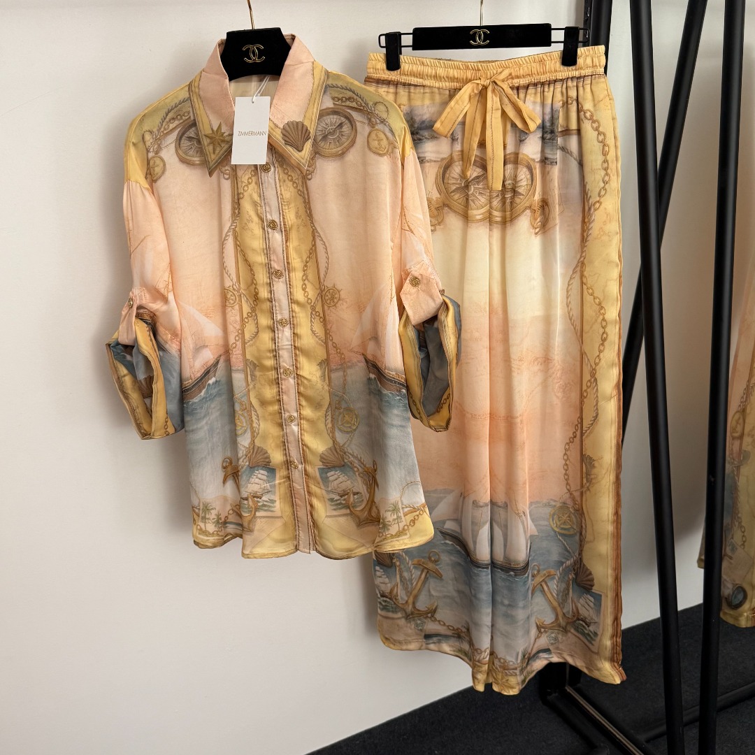 Details: New sailboat print suit: short-sleeved shirt and wide-leg trousers, multiple sizes