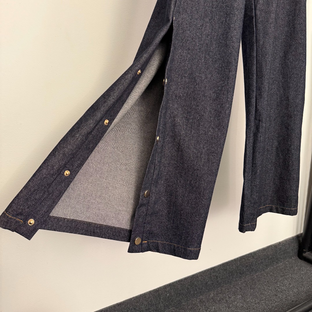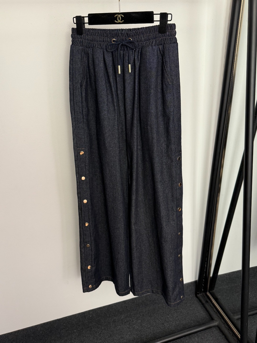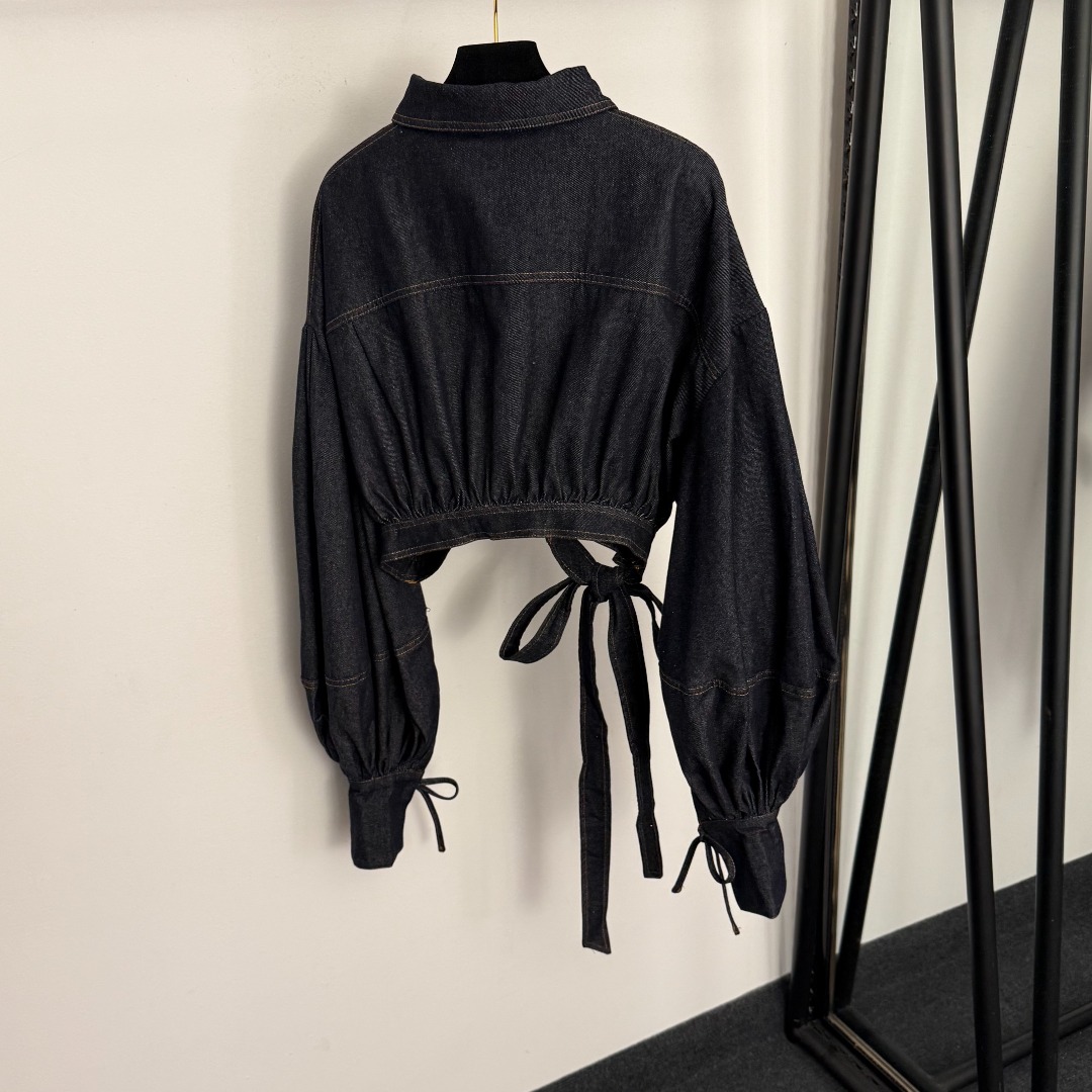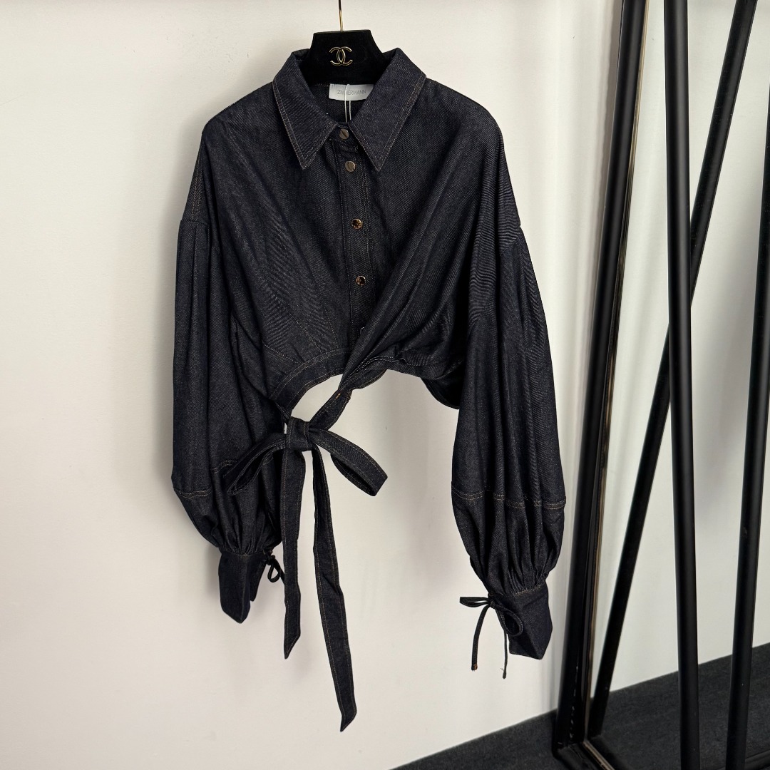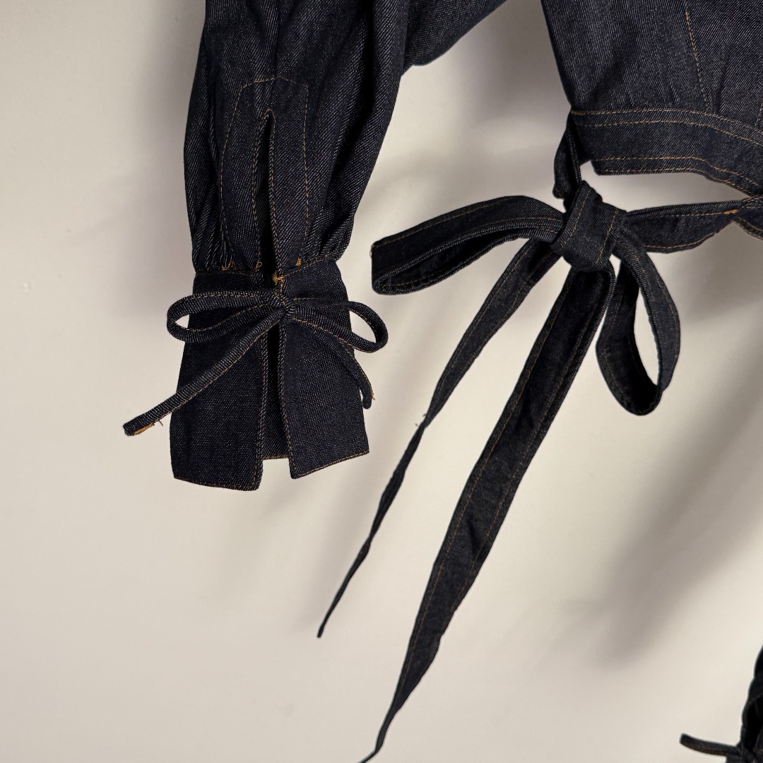 Details: New Bow Tie Waist Cowboy Shirt and Pants Set, Navy & Light Blue, S, XL, M Sizes. High-end Customization, Fine Workmanship