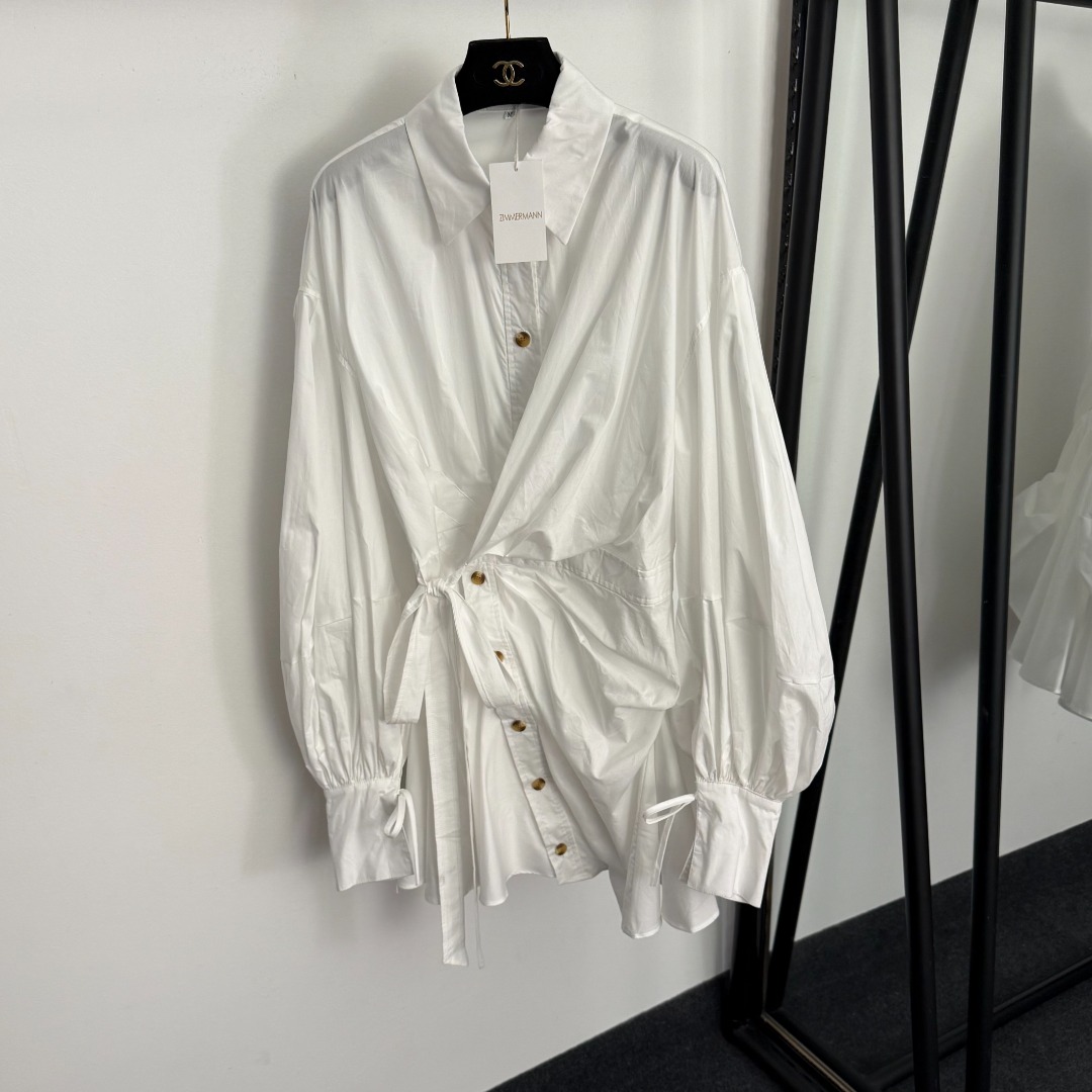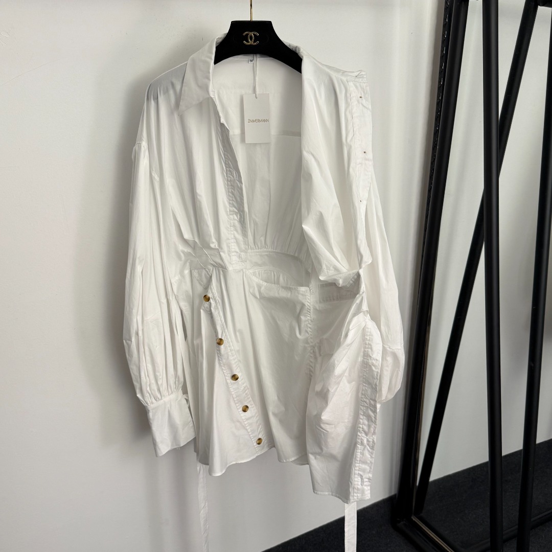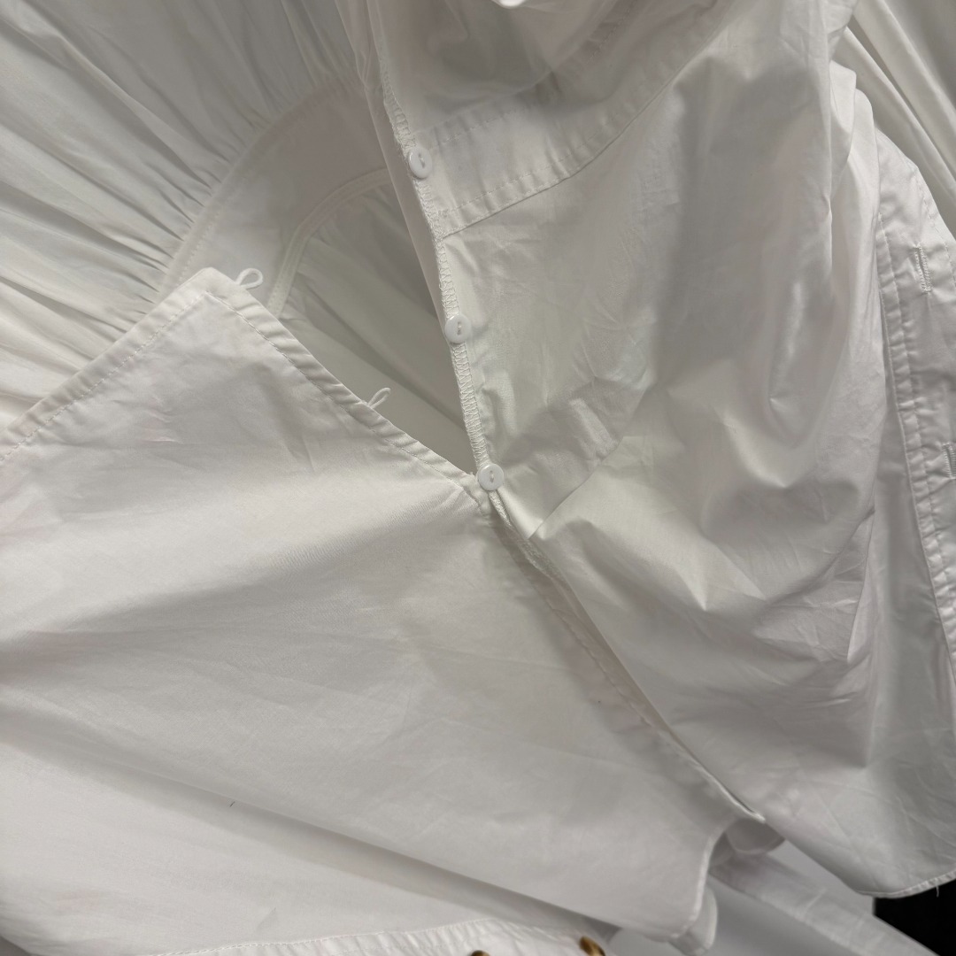 Details: New side-laced waist irregular single-breasted lantern sleeve shirt dress in white, available in S XL M sizes.