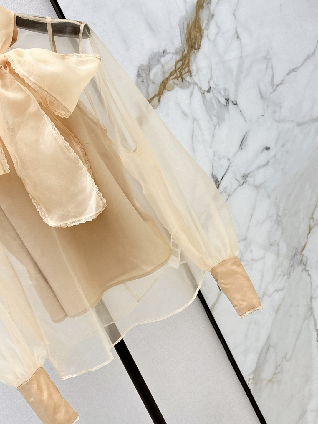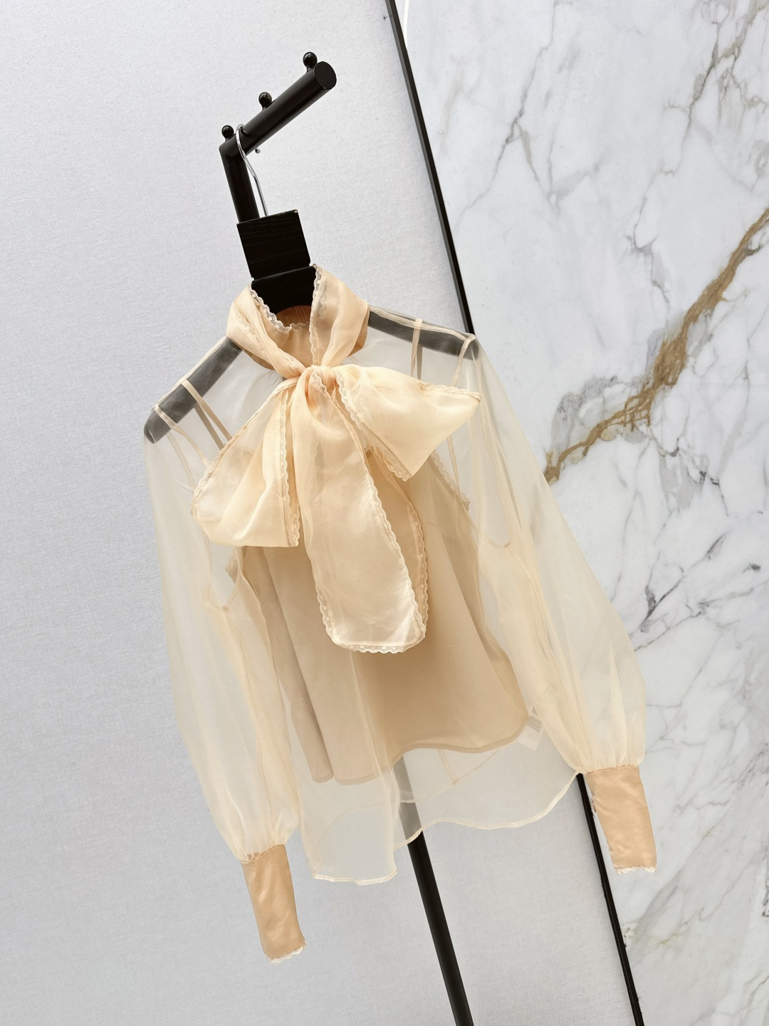 Details: Early spring holiday-style bow-tie shirt made of poplin cotton, offering an elegant and refreshing appearance.