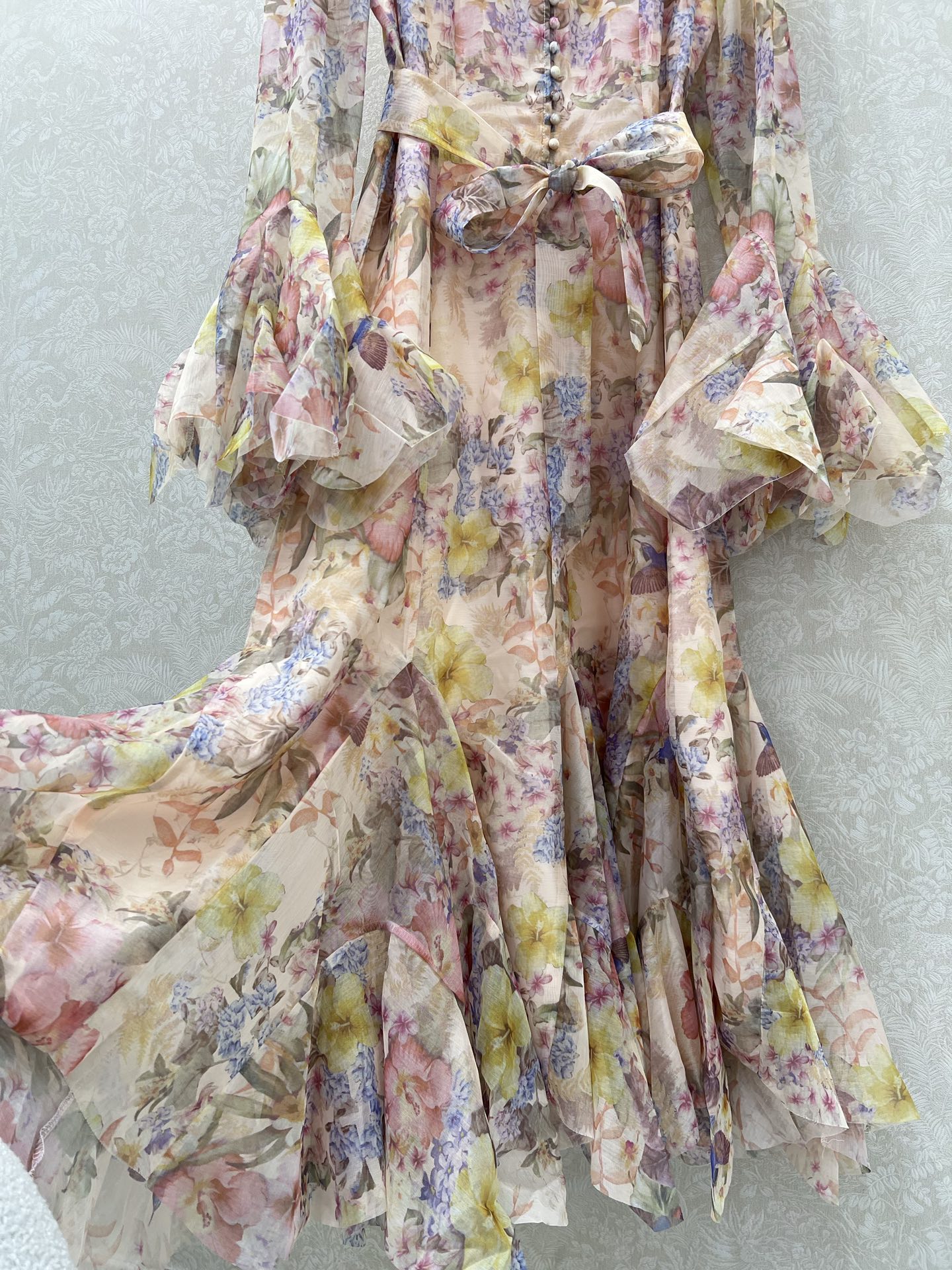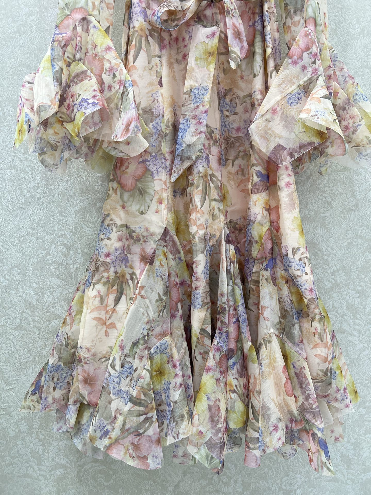 Details: New Irregular Floral Dress with Soft Colors, Ideal for Vacation, Premium Custom, Fine Workmanship