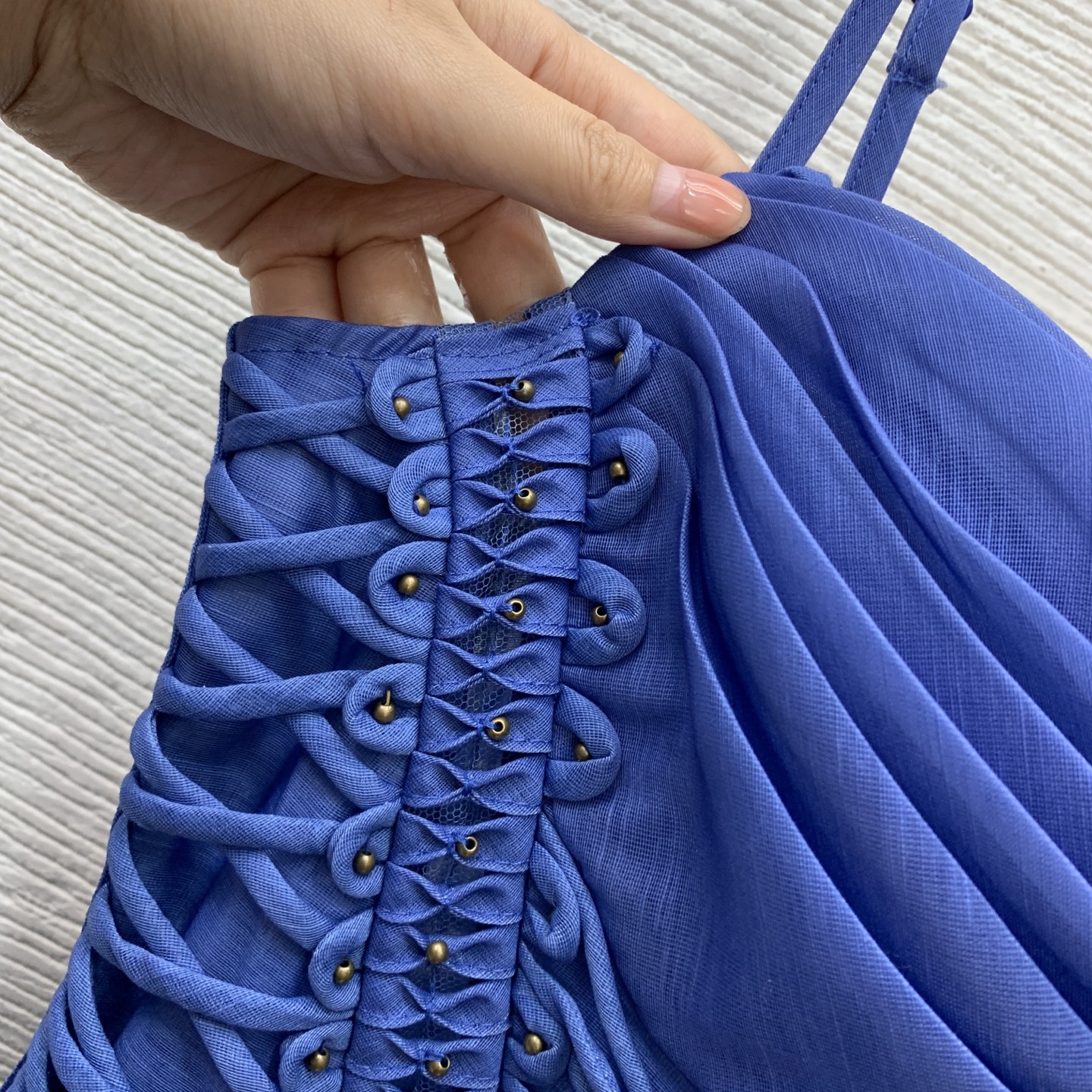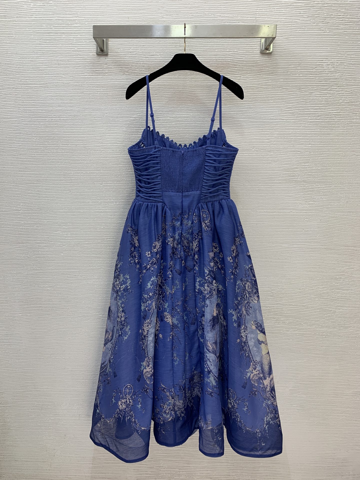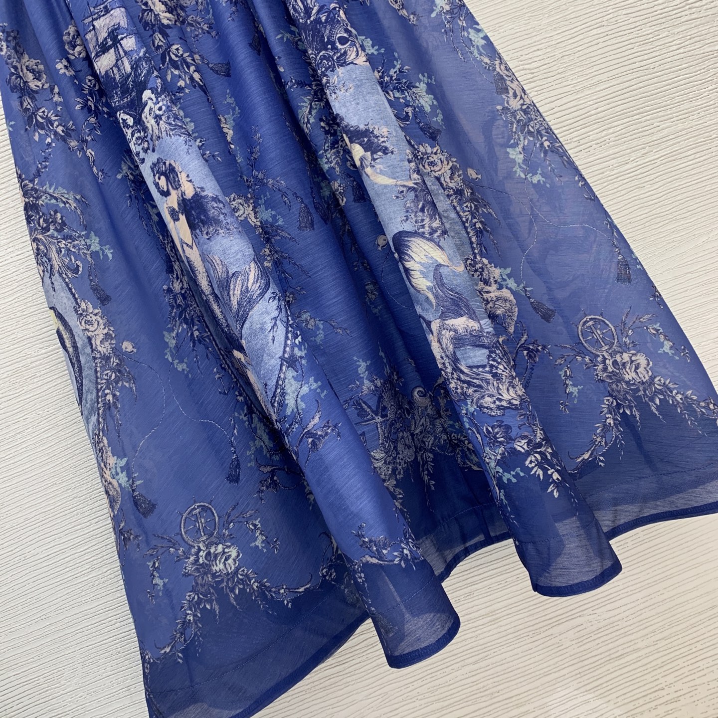 Details: Resort-style halter dress with a mermaid print in blue, size 2. Exquisitely crafted for high-end quality, offering an original 1:1 replica.