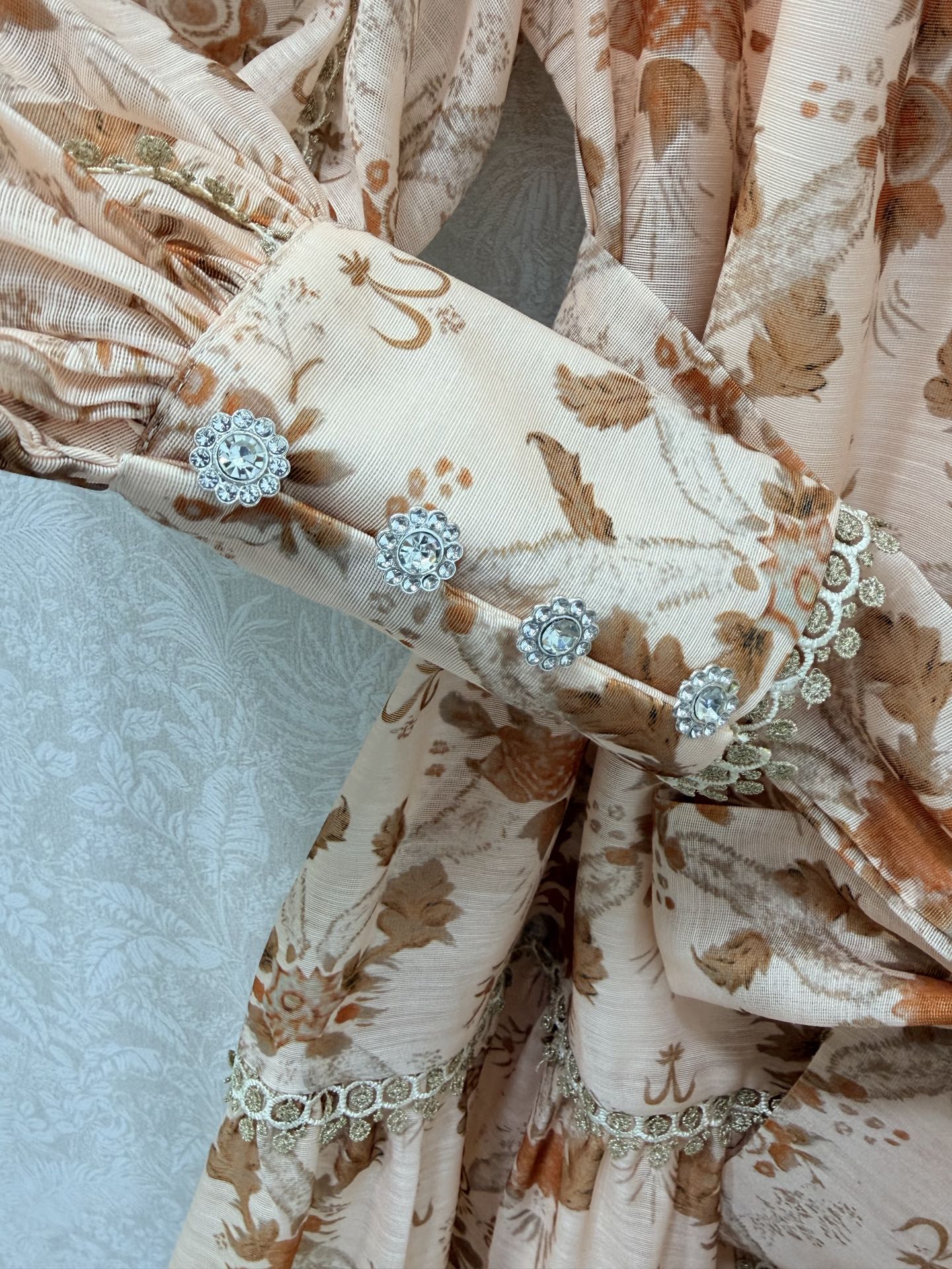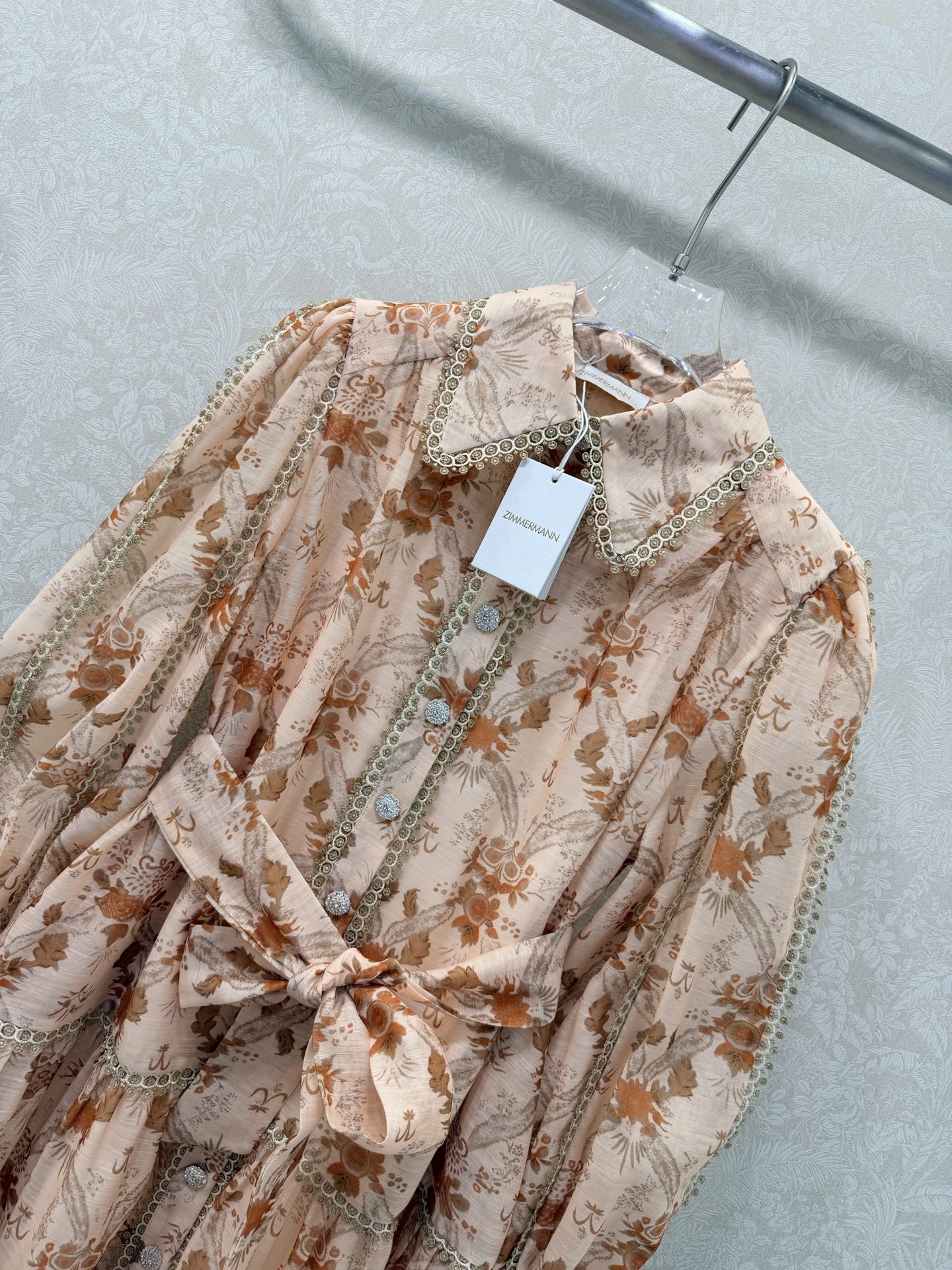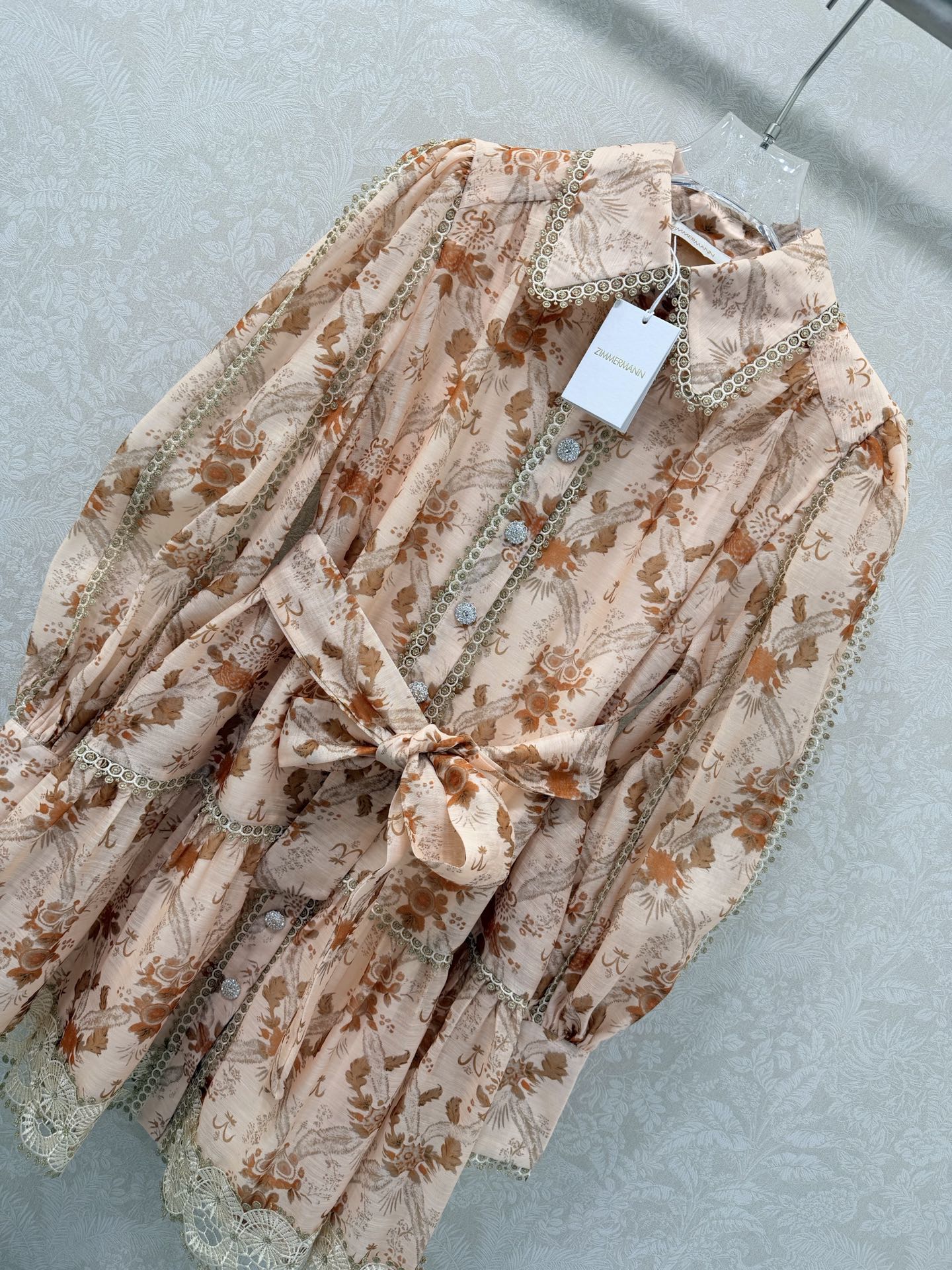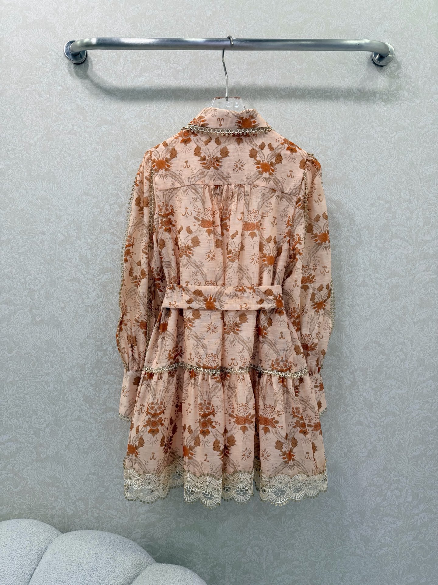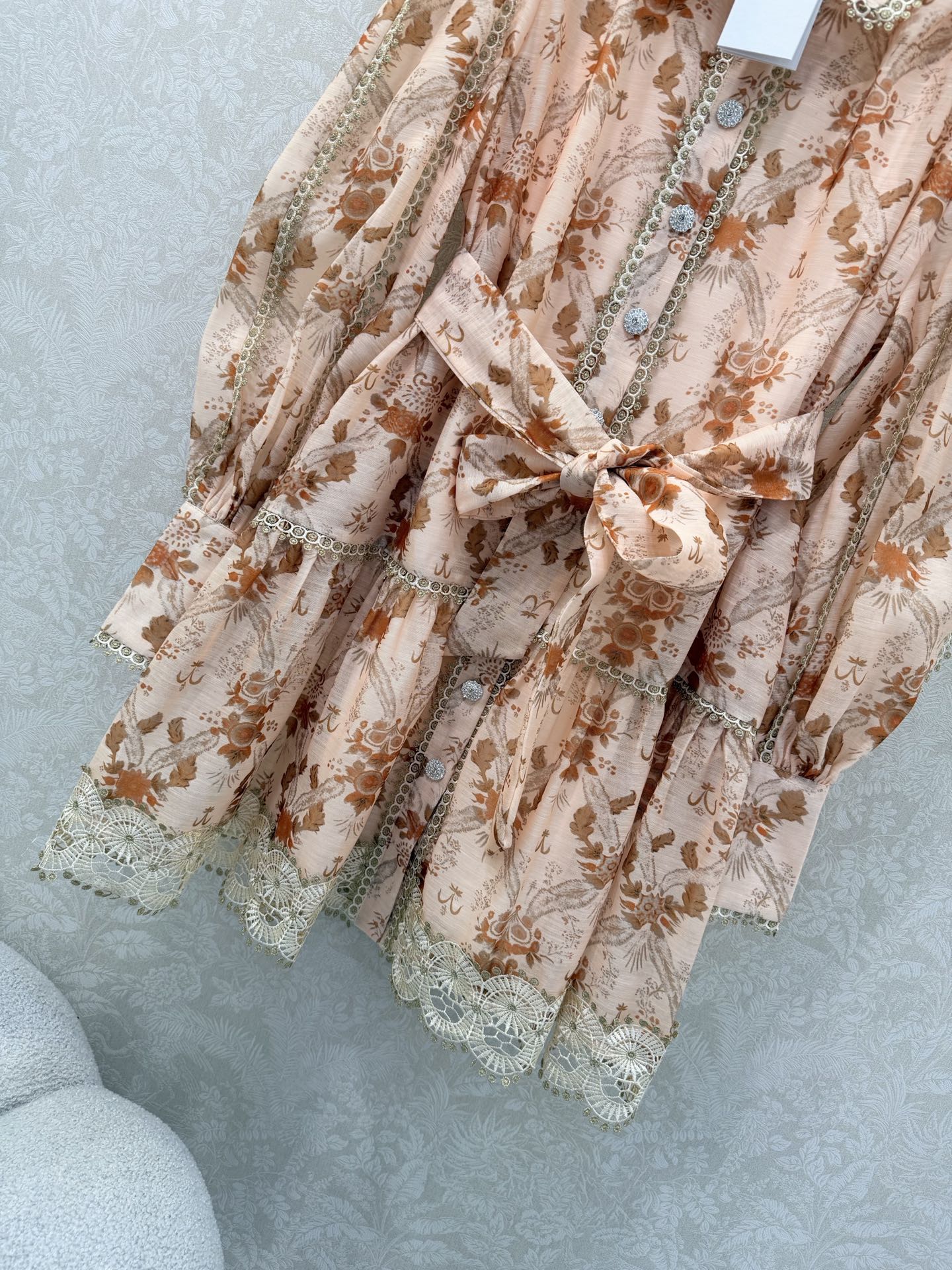 Details: Early spring lace dress with puffed sleeves and button-down front, includes matching belt, ultra-feminine style, high-end customization, exquisite craftsmanship